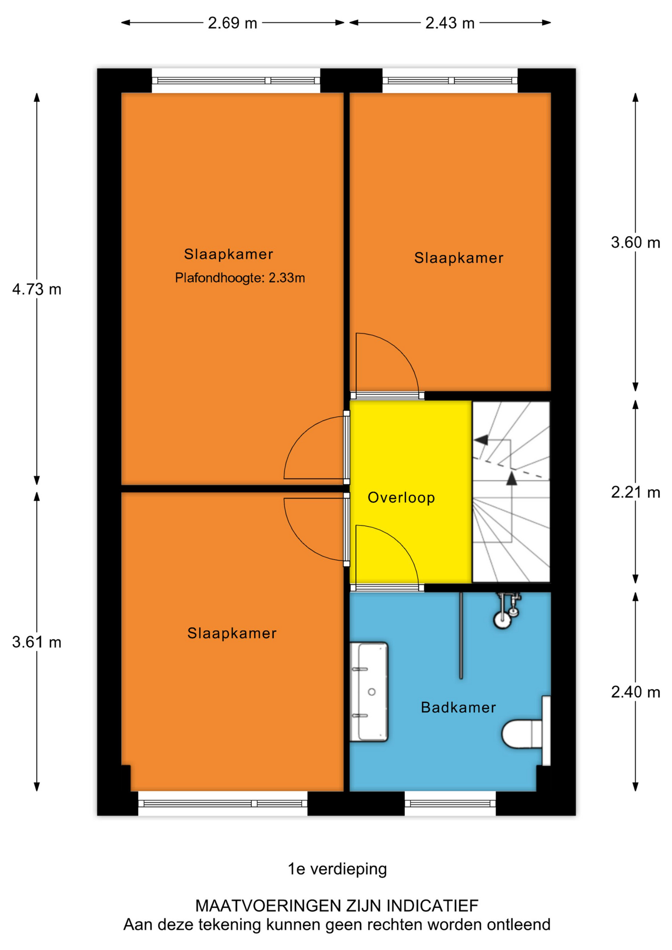 - Slaapkamer 1, gelegen aan de achterzijde (2.69 m x 4.73 m);