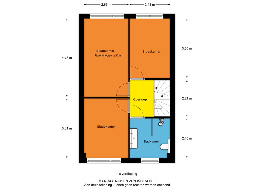 - Slaapkamer 3, gelegen aan de voorzijde (2.69 m x 3.61 m);