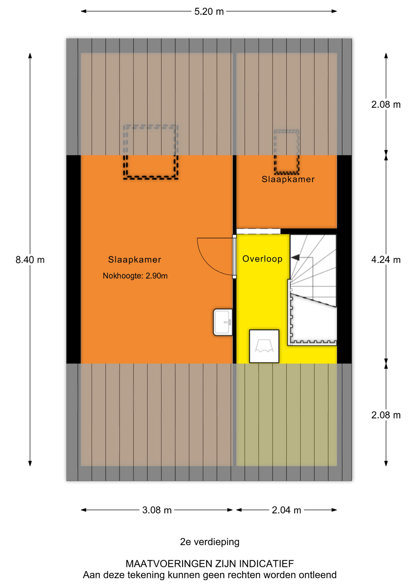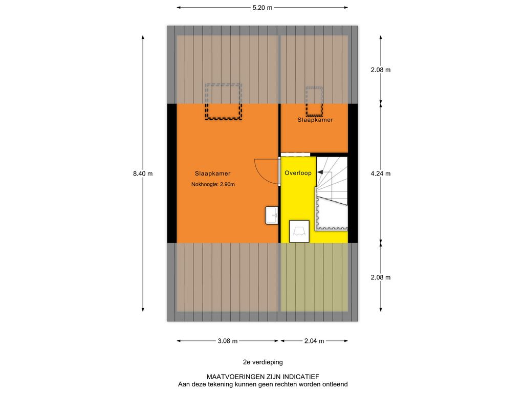 - Tweede verdieping: Vloerafwerking met laminaat. Wanden voorzien van gipsplaat wandafwerking.