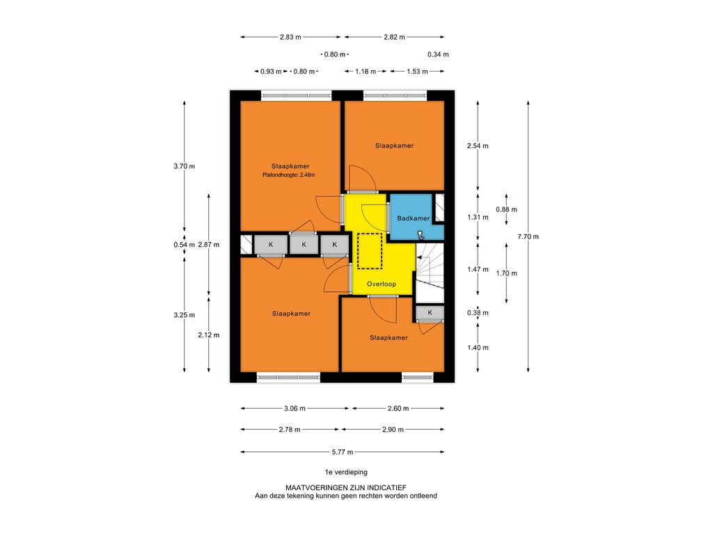 - Slaapkamer 3, gelegen aan de achterzijde, voorzien van inbouwkast;