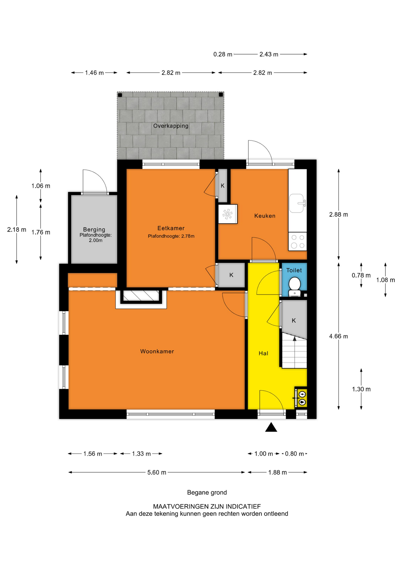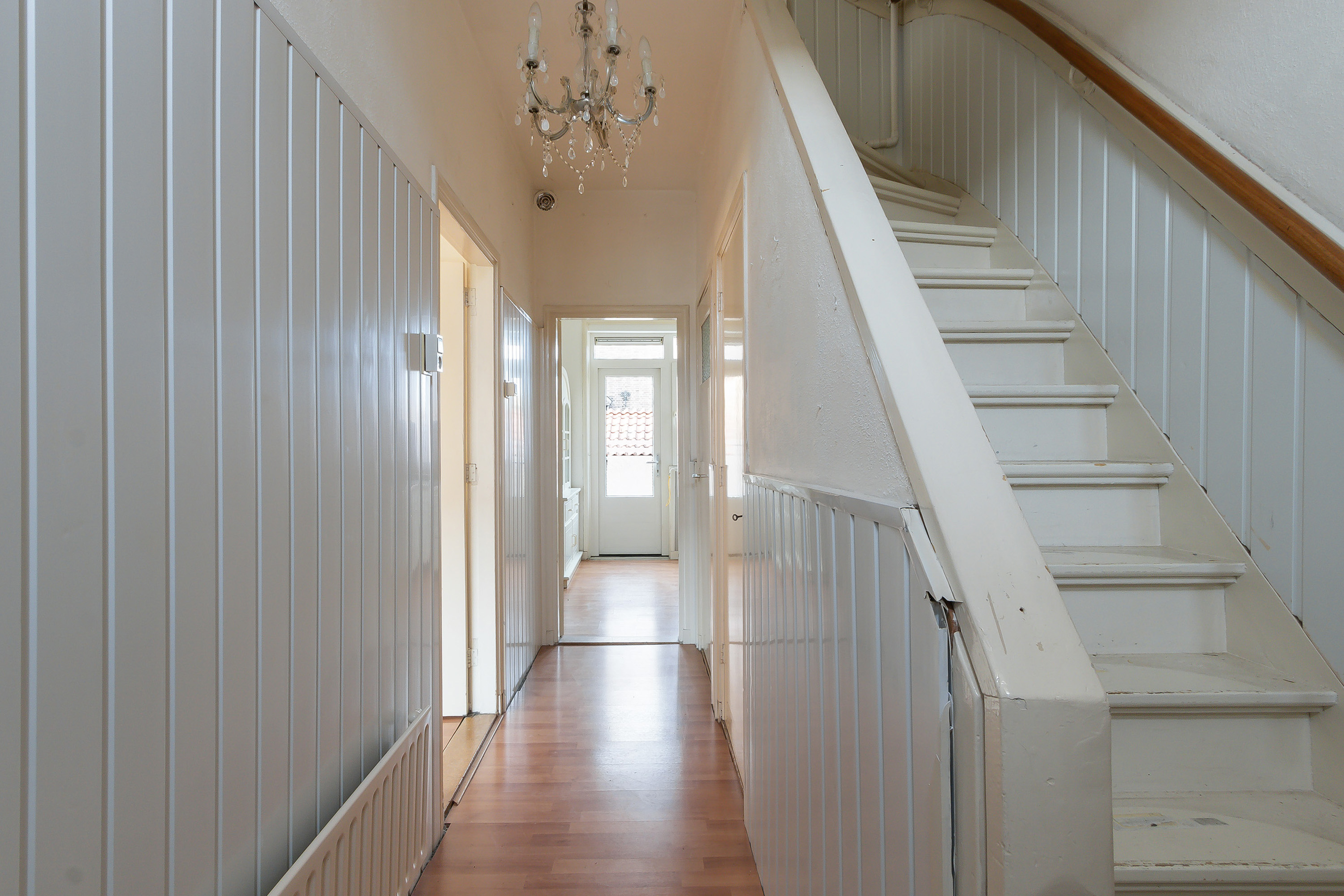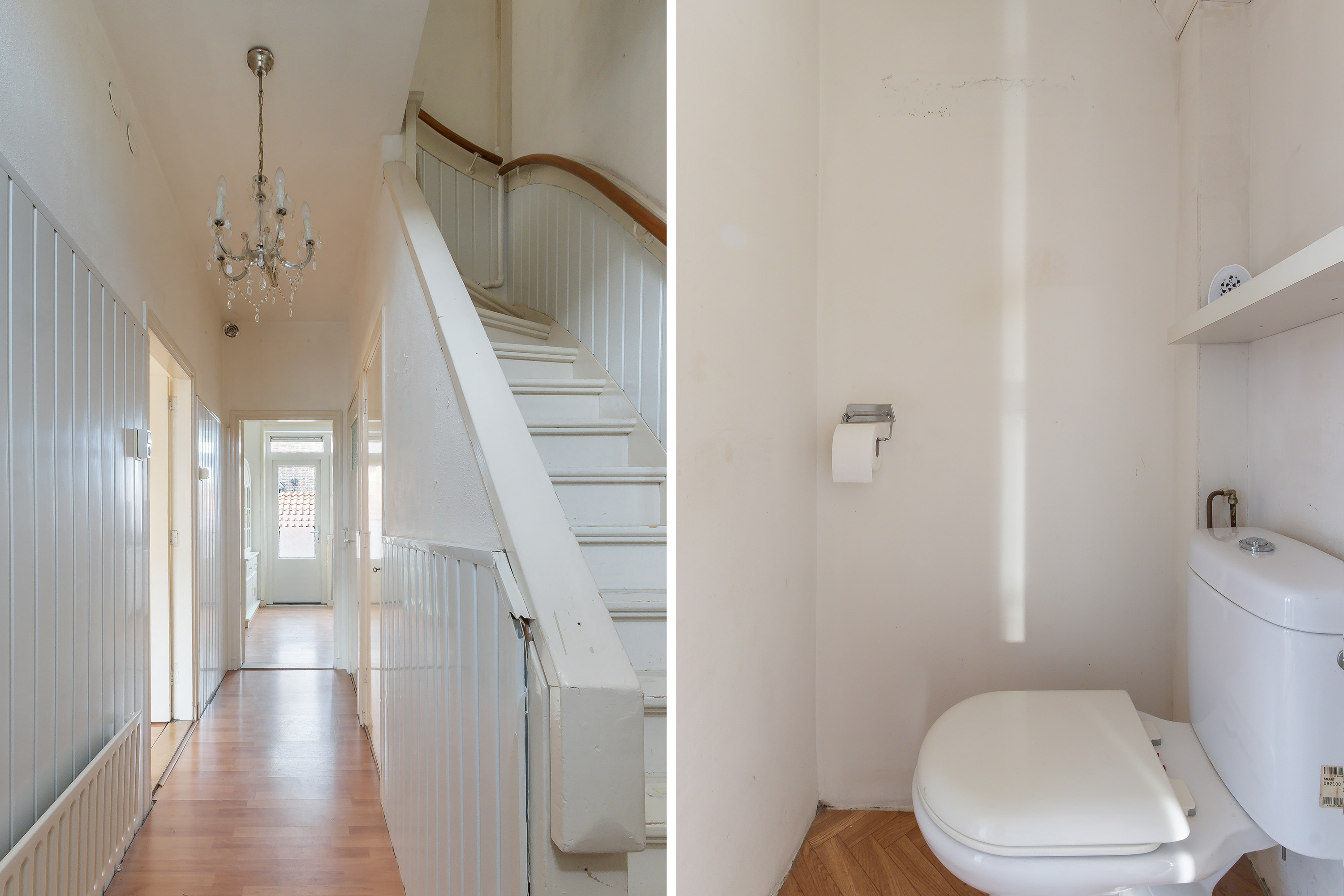 - Entree, hal, meterkast, trapopgang, trapkast en toilet;