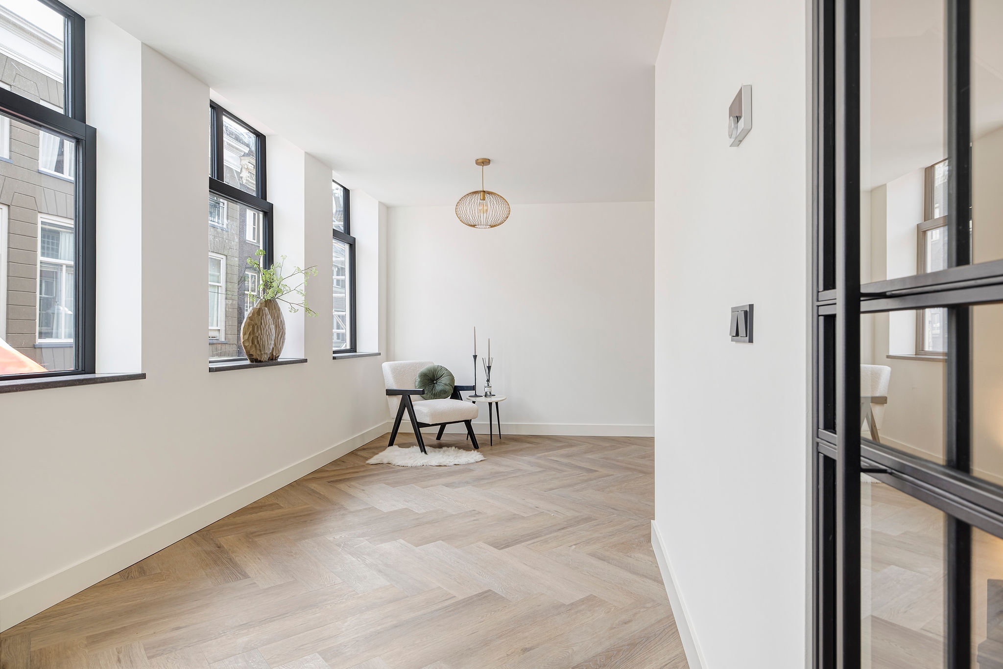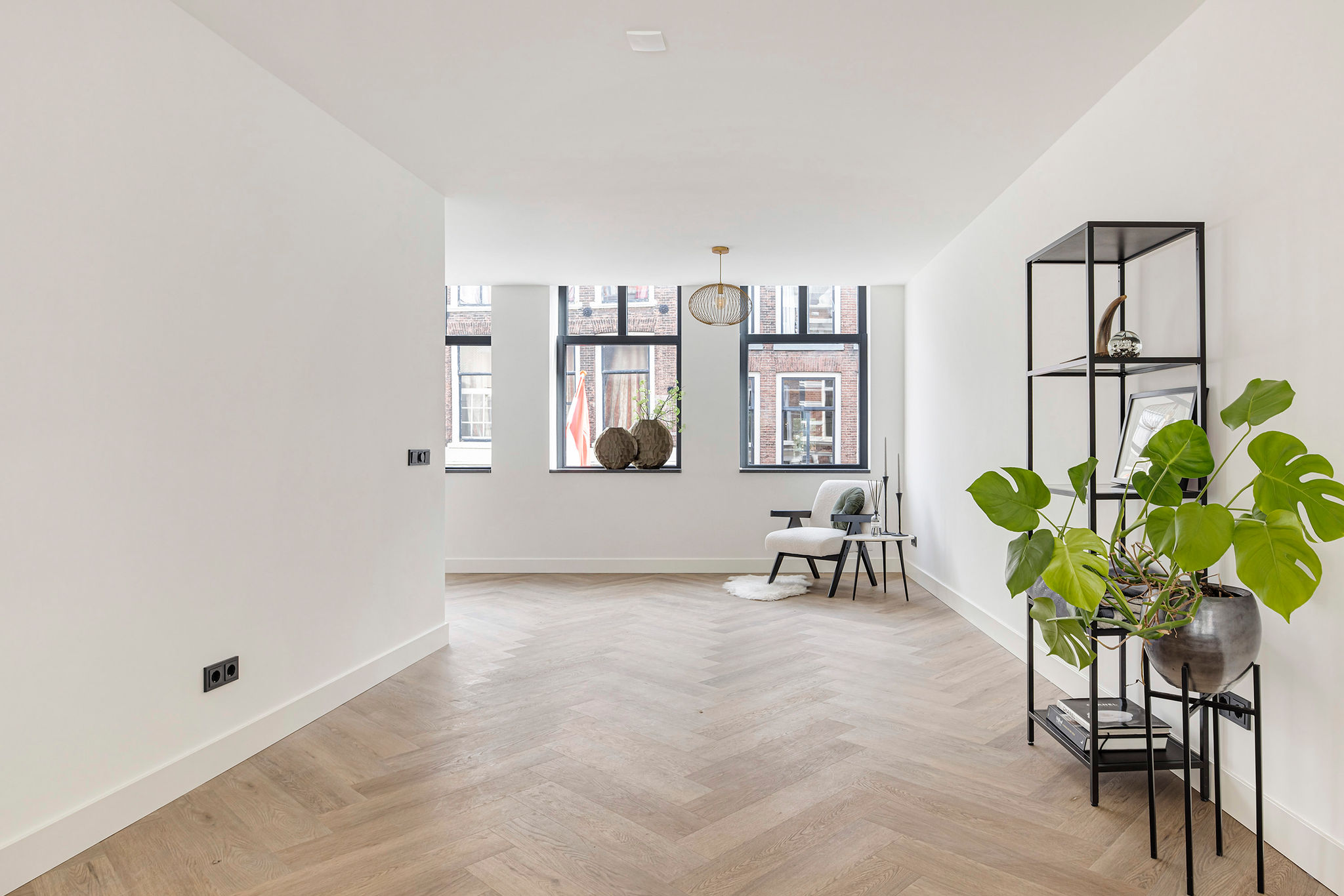 - Tweede verdieping: glad gestucte en gesausde wanden. Pvc visgraat vloerafwerking.