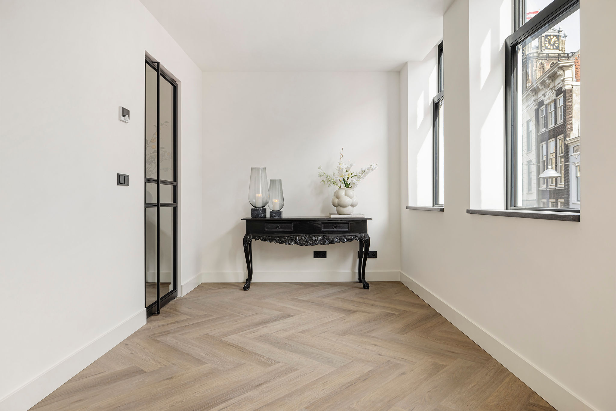- Luxe tegelvloer vloer begane grond en pvc visgraat motief vloerafwerking 1e en 2e verdieping;