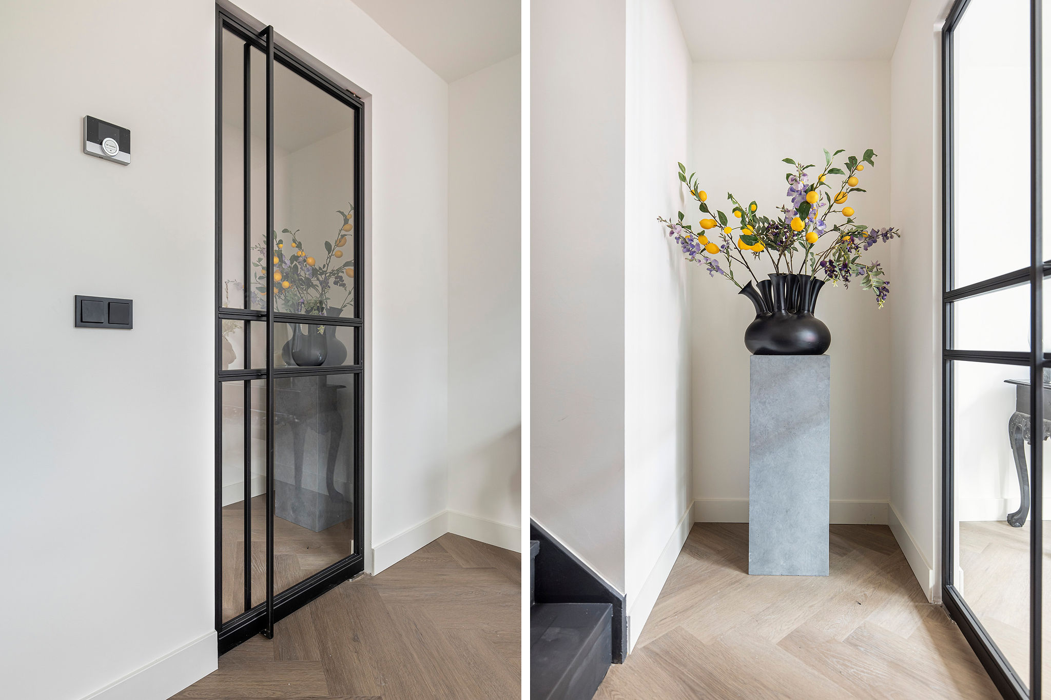 - Entree, hal, meterkast, moderne taatsdeur naar centrale hal;