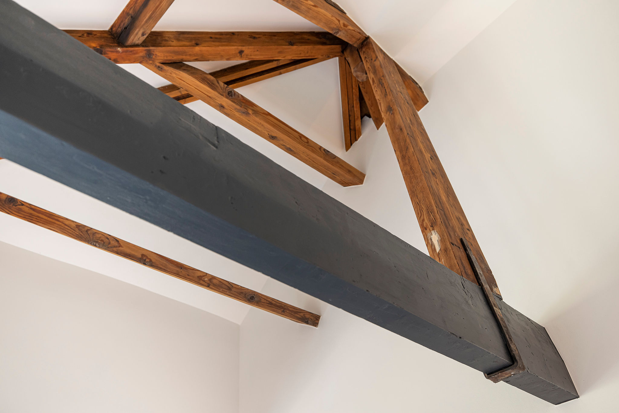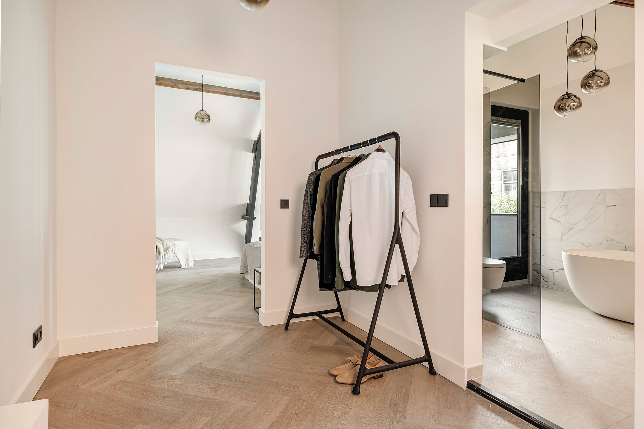 - Overloop met 2 houten spantconstructies in het zicht en een dakvenster voor de perfecte lichtinval, een waskast, technische ruimte, deuren naar badkamer 2 en 3 slaapkamers;