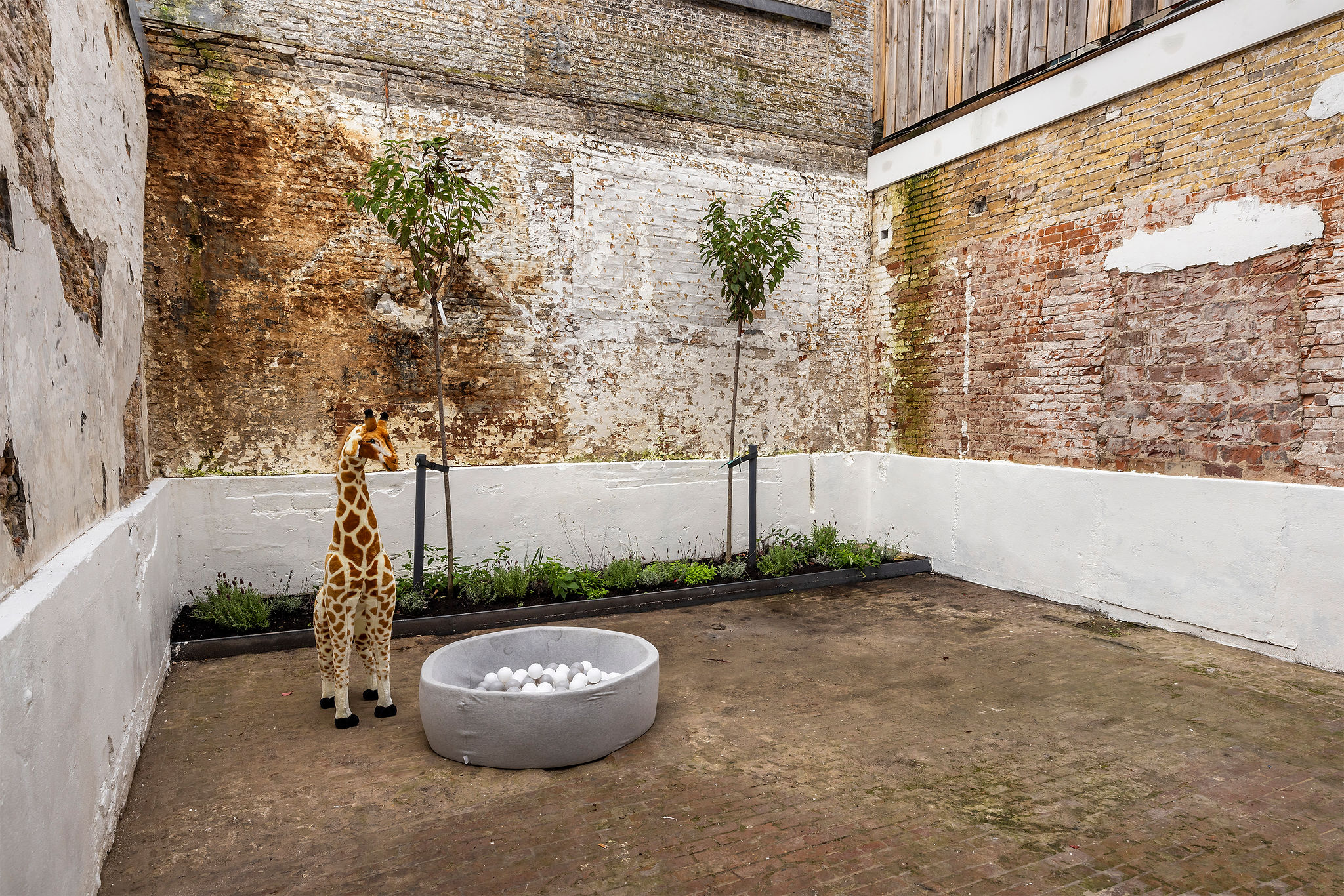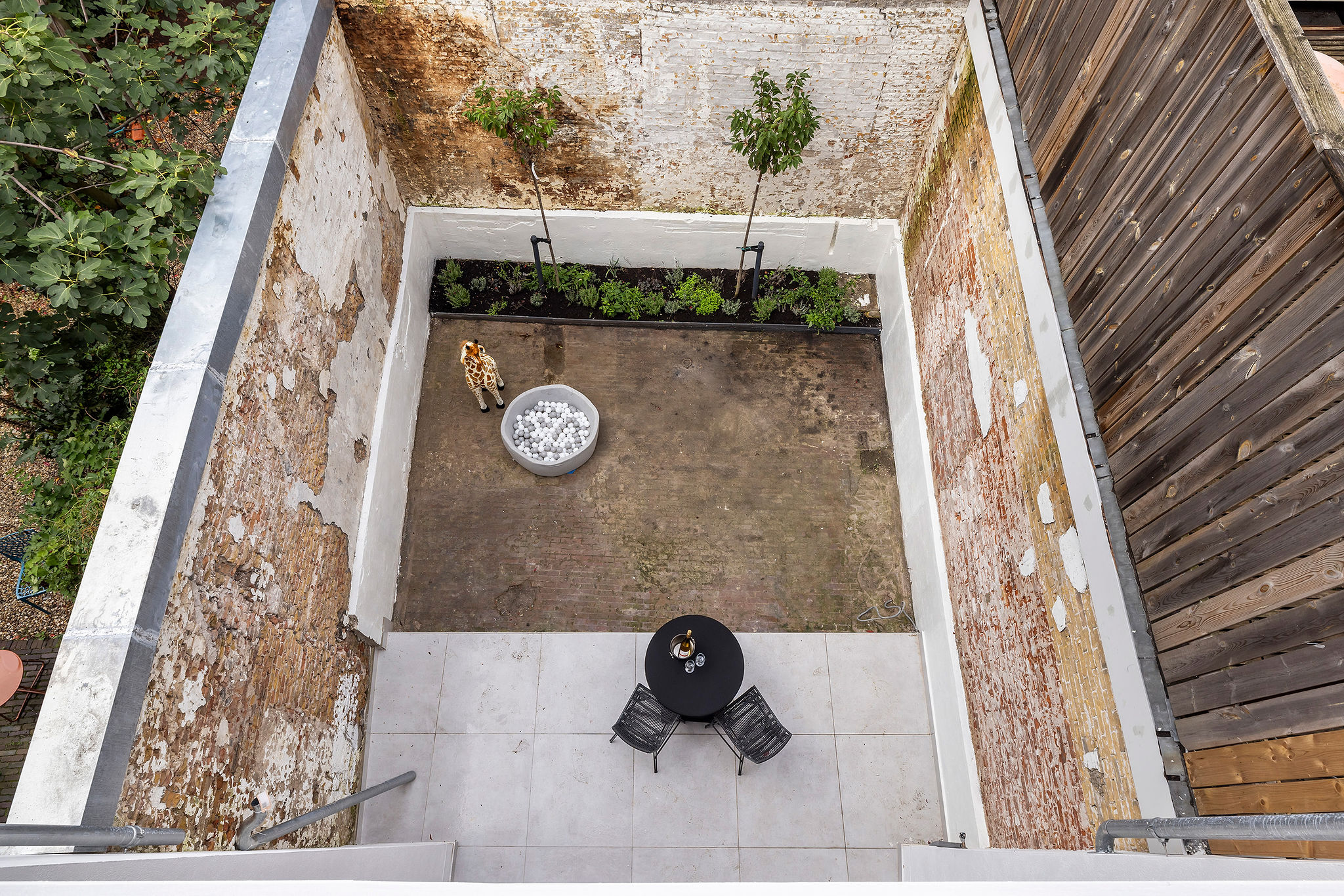 - Besloten ommuurde stadstuin, gesitueerd op het westen. Aangelegd met een betegeld terras (90x90 cm), gebakken klinkers en een plantenborder. Buitenkraan en stroompunt.