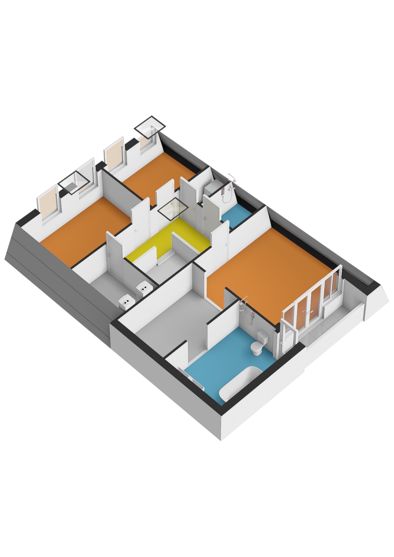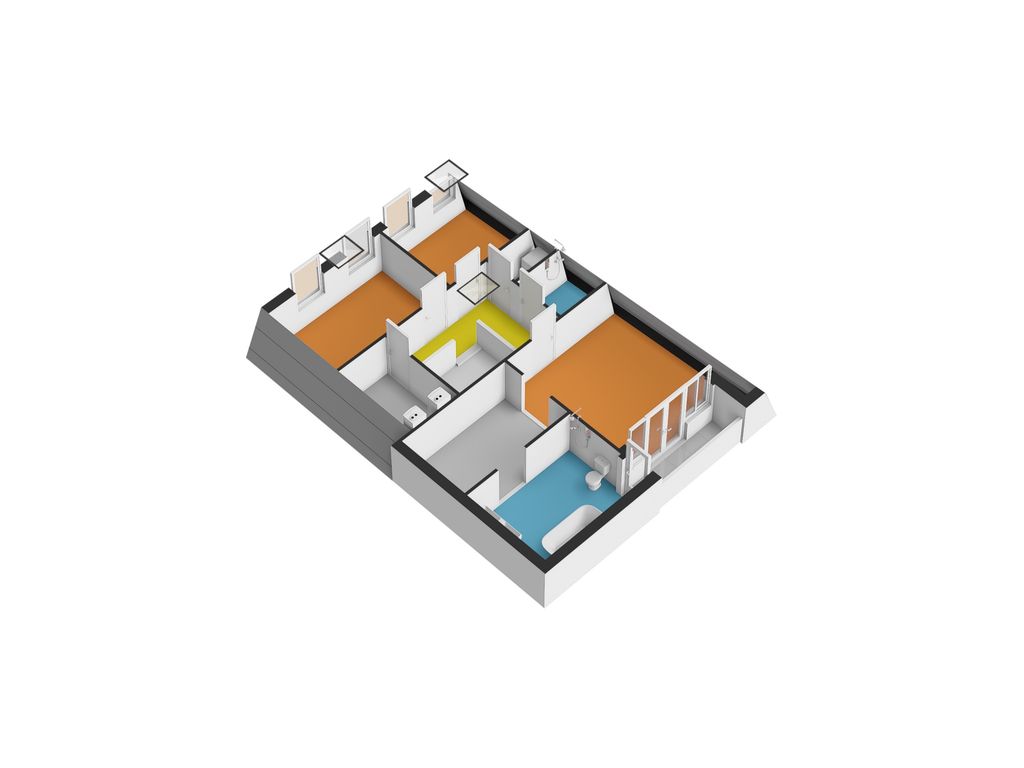 - Walk-in closet (dak is hier uitgebouwd) met een doorloop naar badkamer 1;