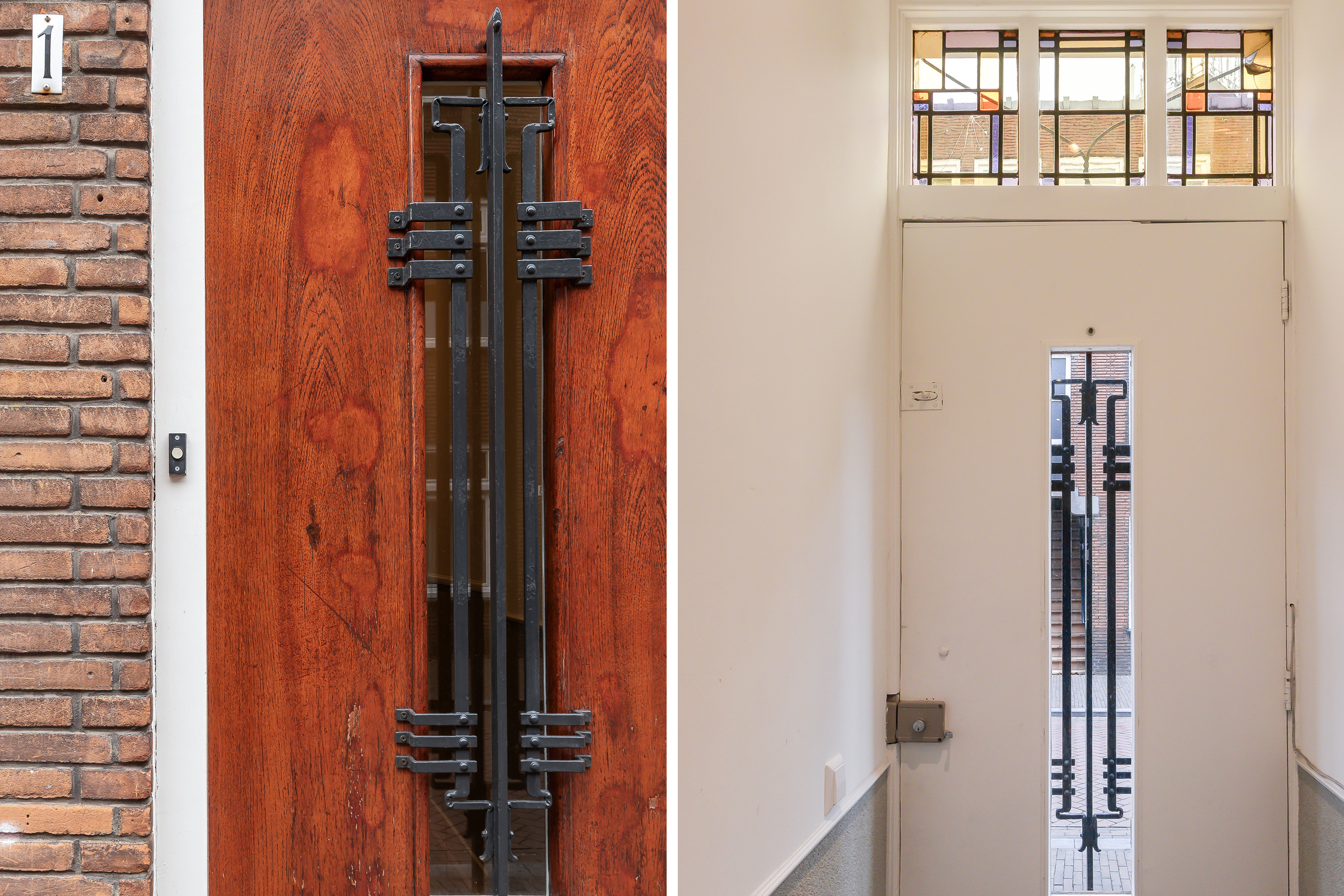 - Hardhouten kozijnen voorzien van HR ++ beglazing en glas-in-lood ramen voorzien van voorzetramen;