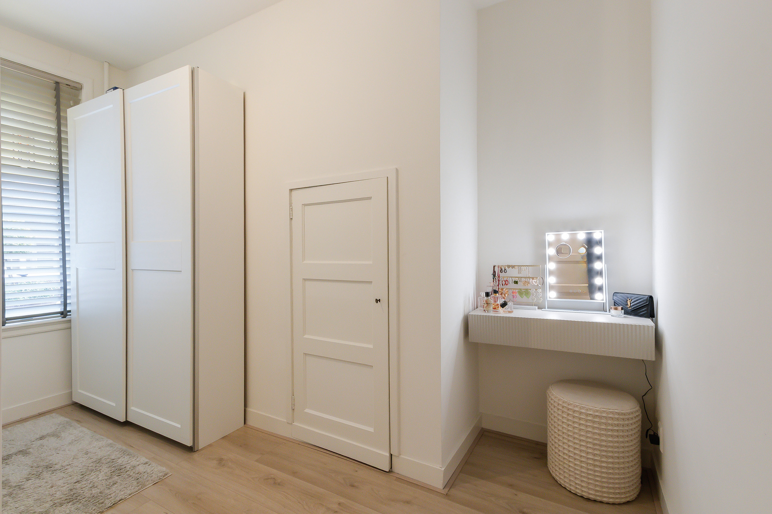 - Slaapkamer 2 (ca. 7 m²), gelegen aan de voorzijde, voorzien van handige trapkast en airco;