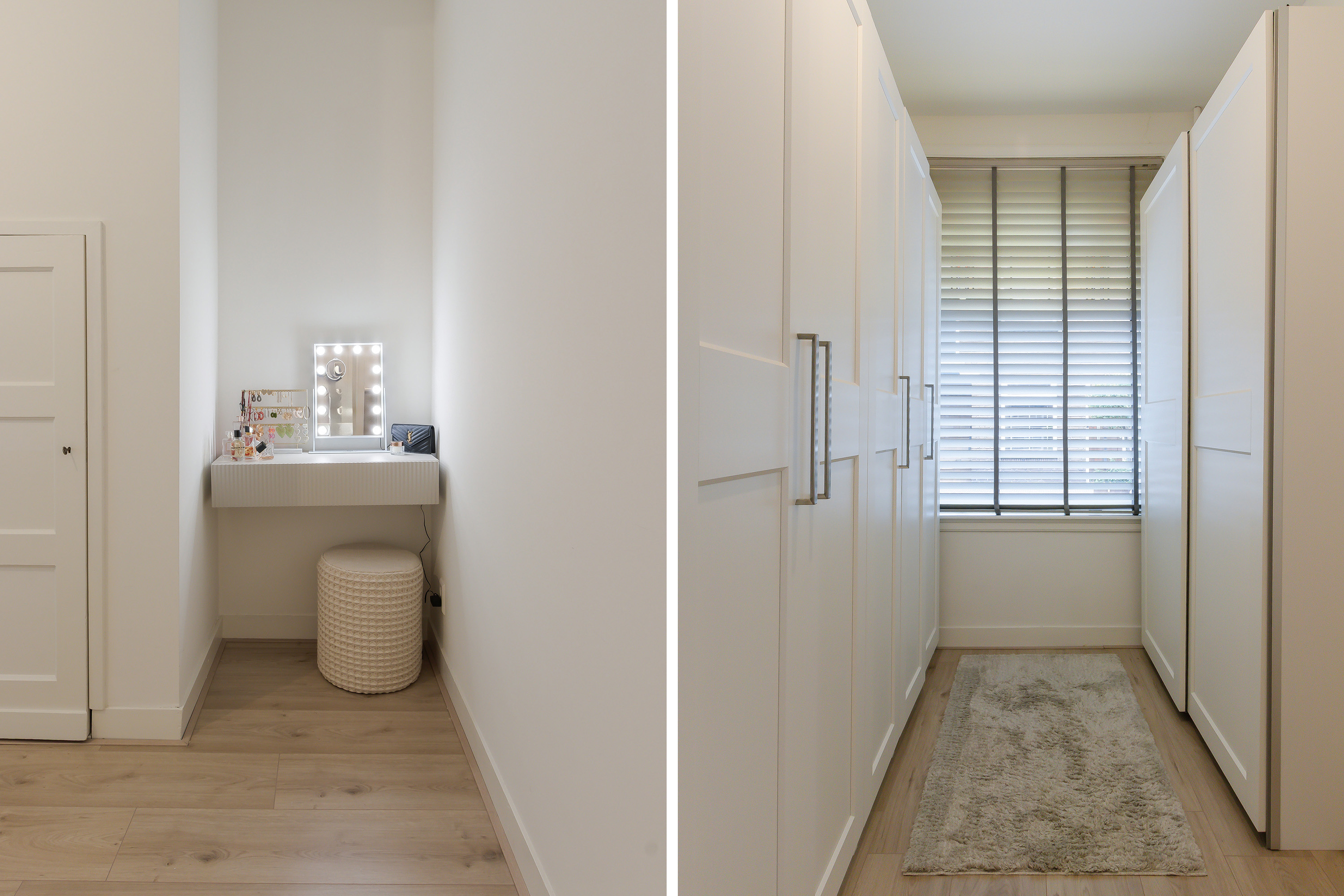 - Glad gestucte wanden en plafonds. Vloerafwerking; mooie brede laminaatvloer met strakke plinten.