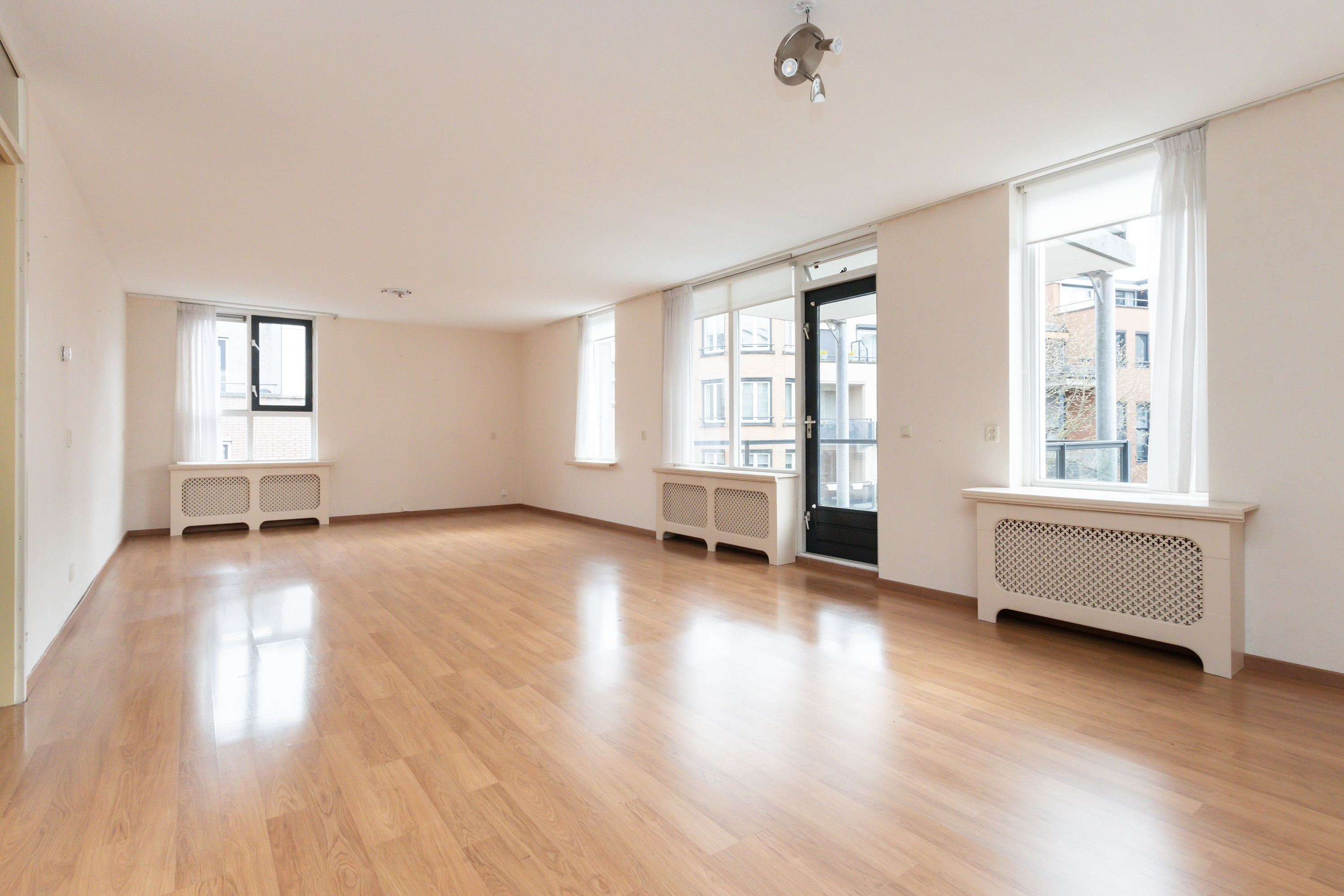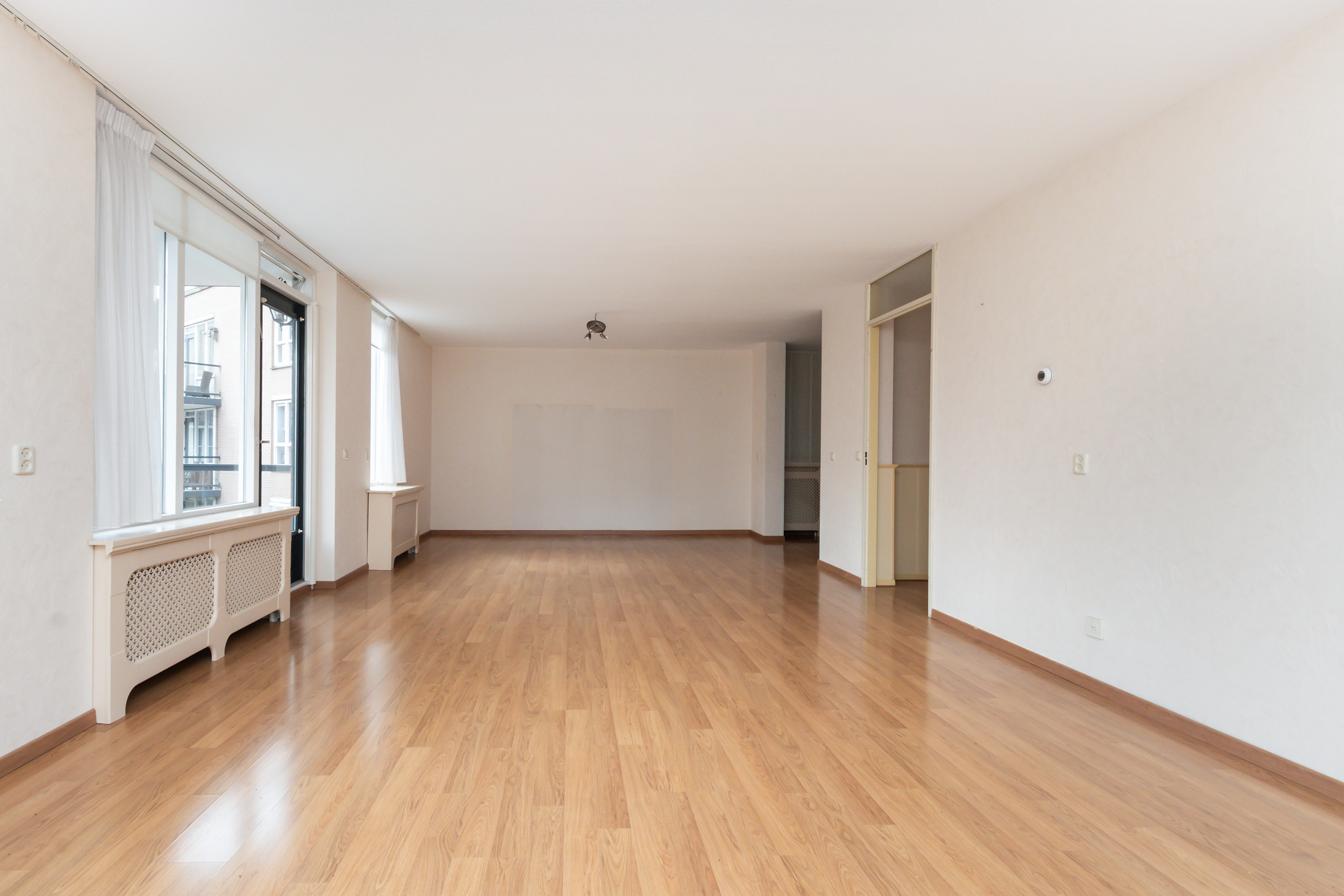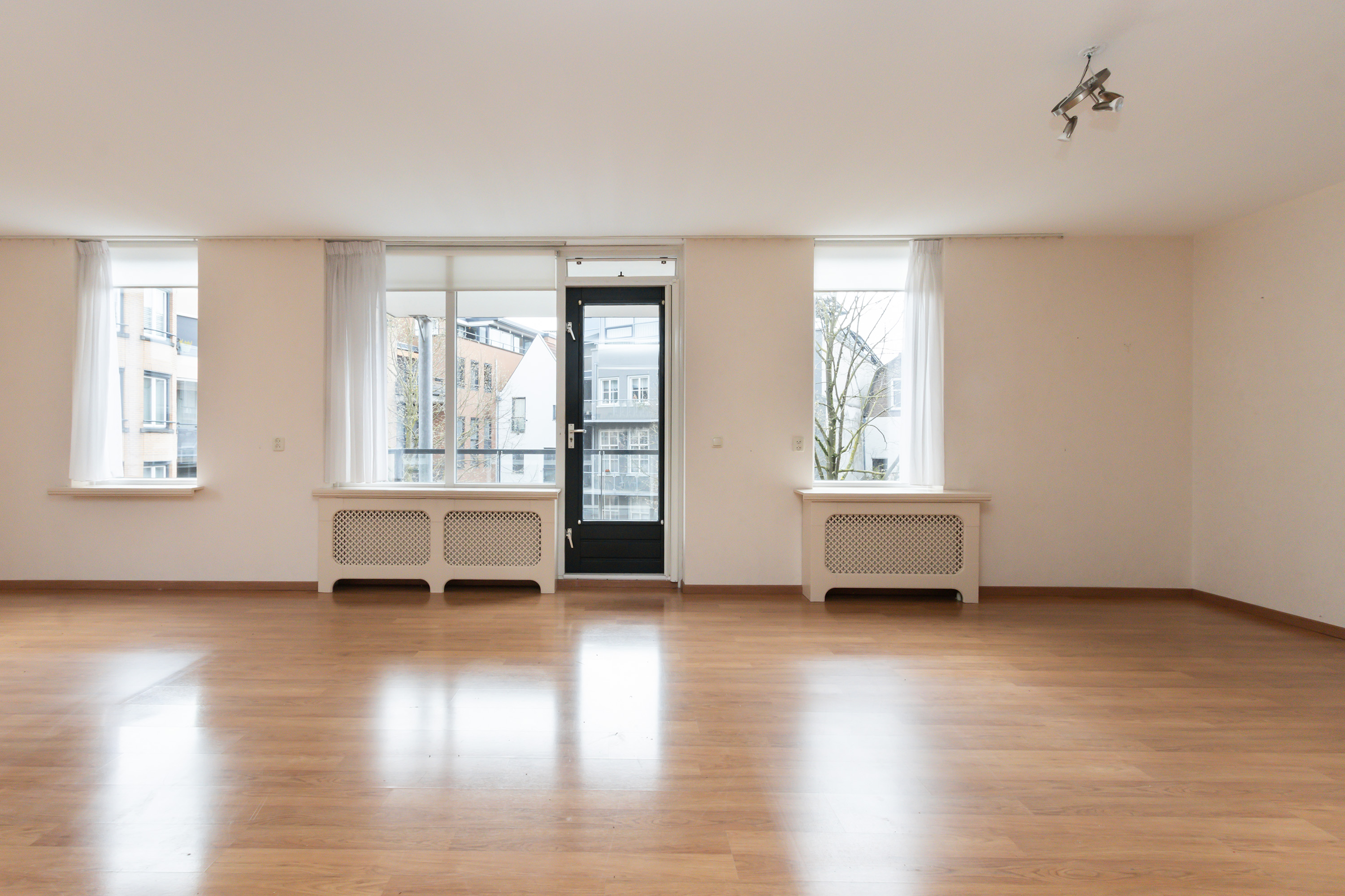- Fijne en lichte woonkamer uitkijkend op het Sint Jacobsplein en toegang tot het balkon (zuiden);