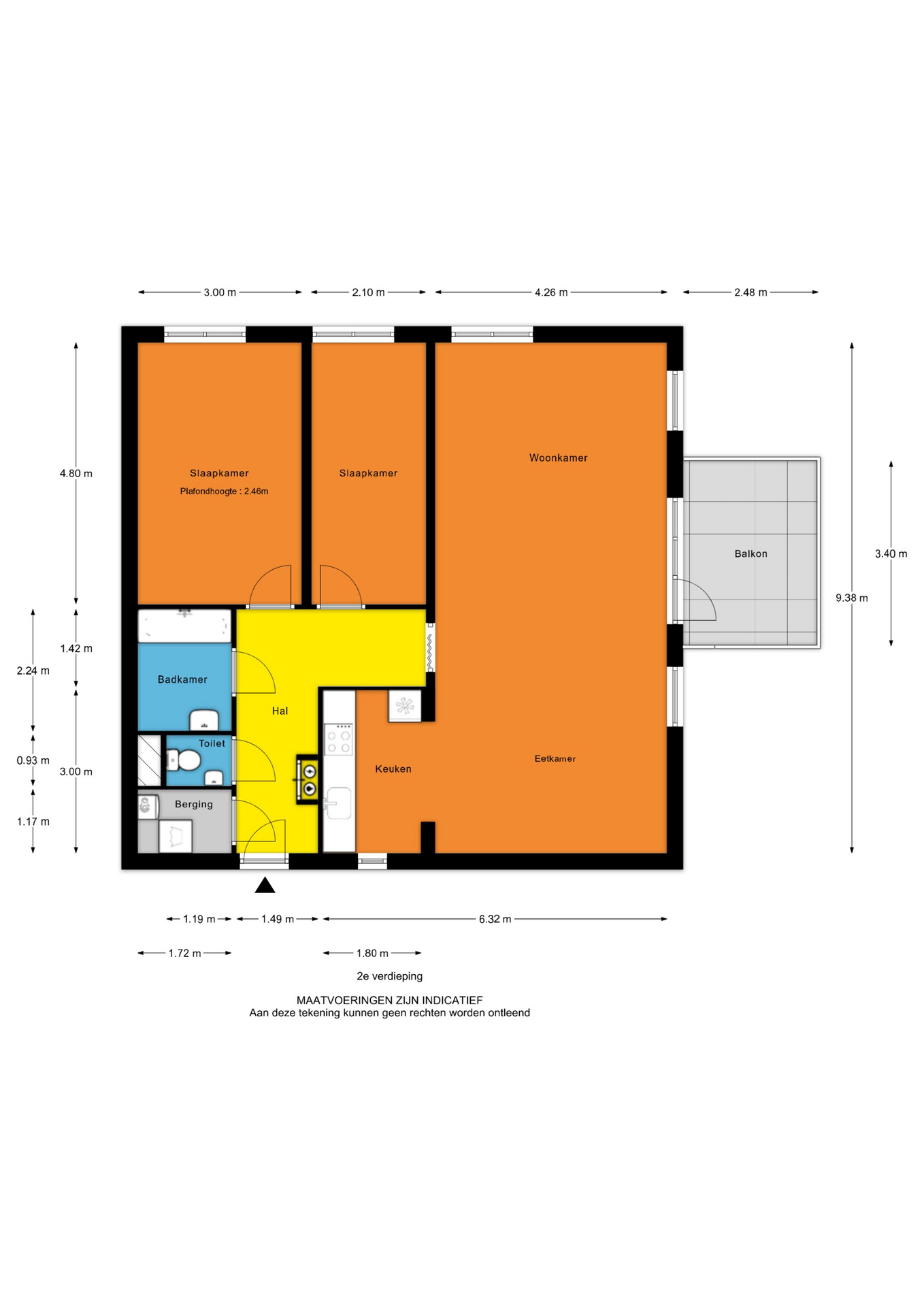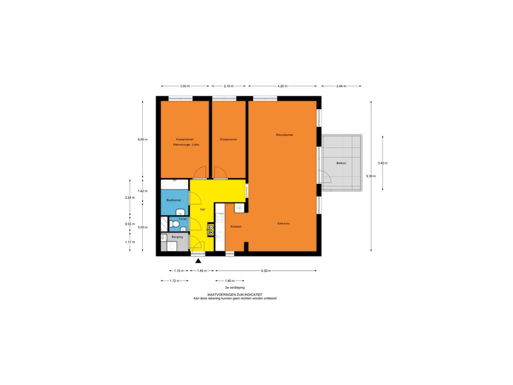 - Slaapkamer 2, gesitueerd aan de oost-/zijzijde;