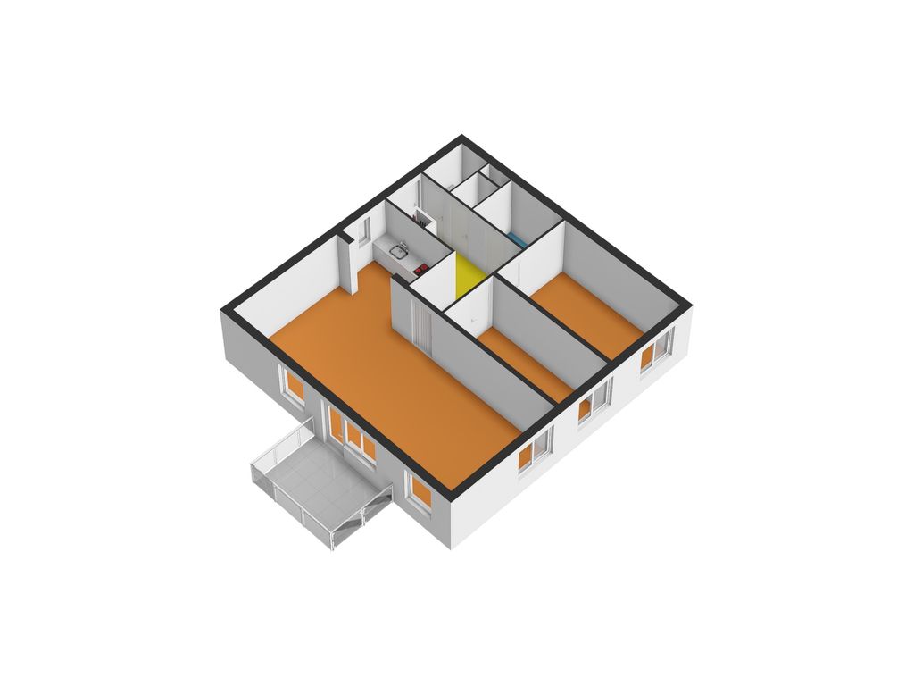 - Entree, hal, meterkast, inpandige was-/cv ruimte, toilet en verder toegang tot de badkamer, twee slaapkamers en de woonkamer;