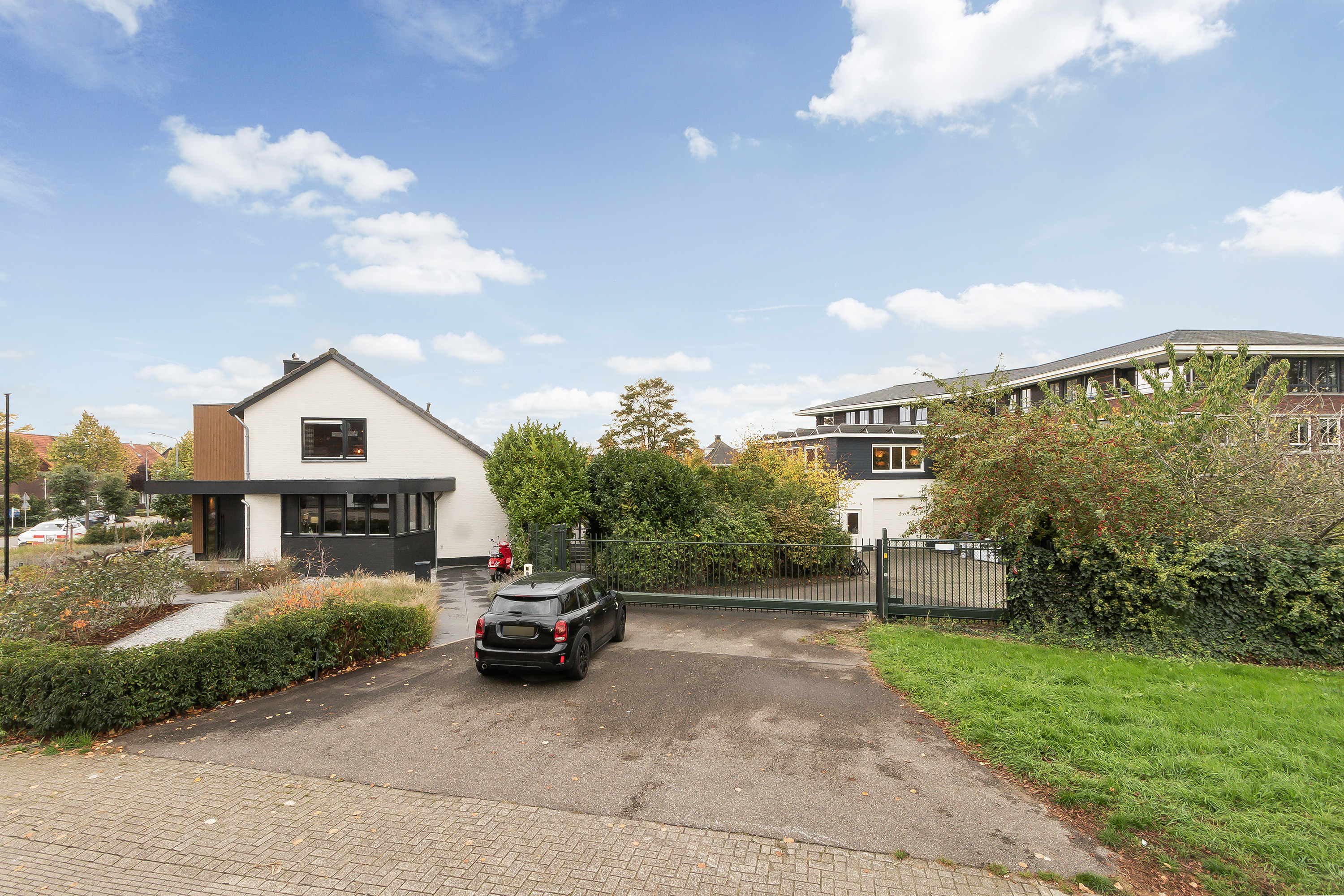 - Parkeergelegenheid voor 3 auto’s aan de voorzijde van de woning. Desgewenst is er aan de noordzijde van het perceel een goede extra parking te realiseren binnen de erfafscheidingen.
