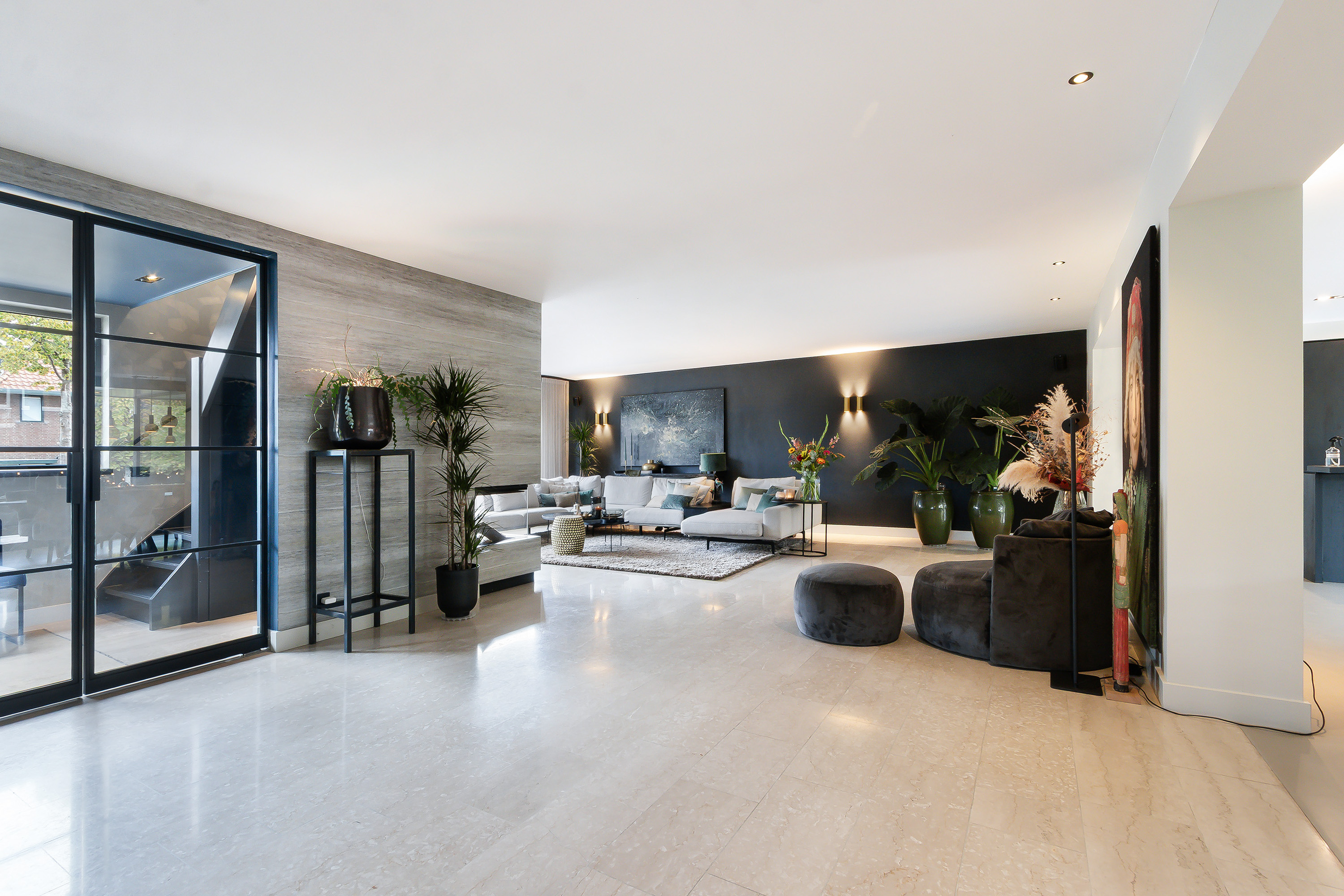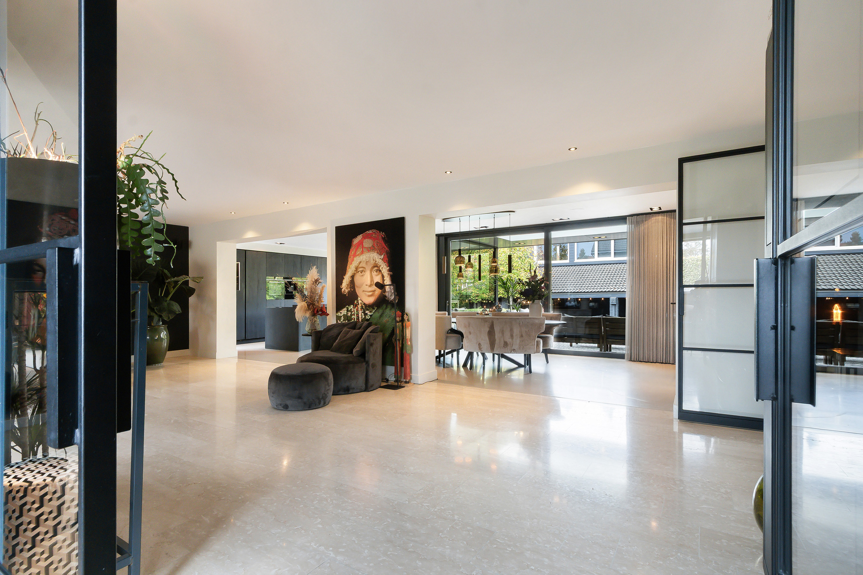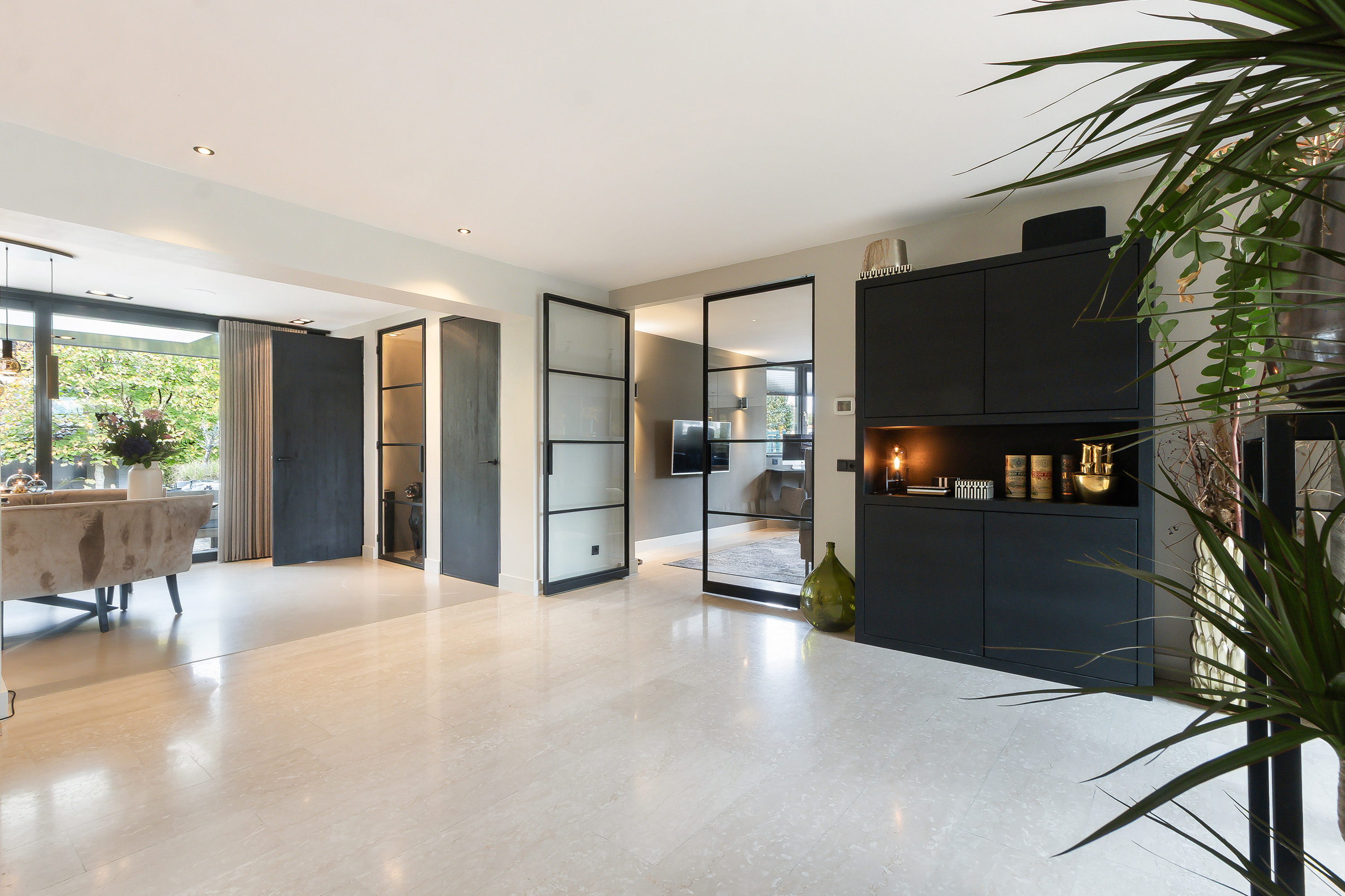 - Entree, royale hal, garderobe, modern toilet, dubbele deur naar de woonkamer;