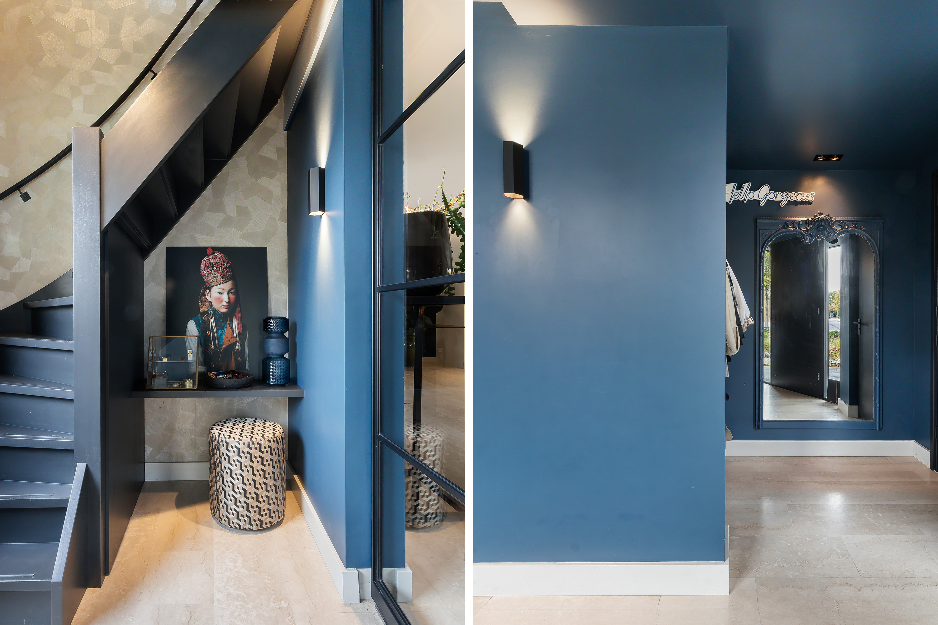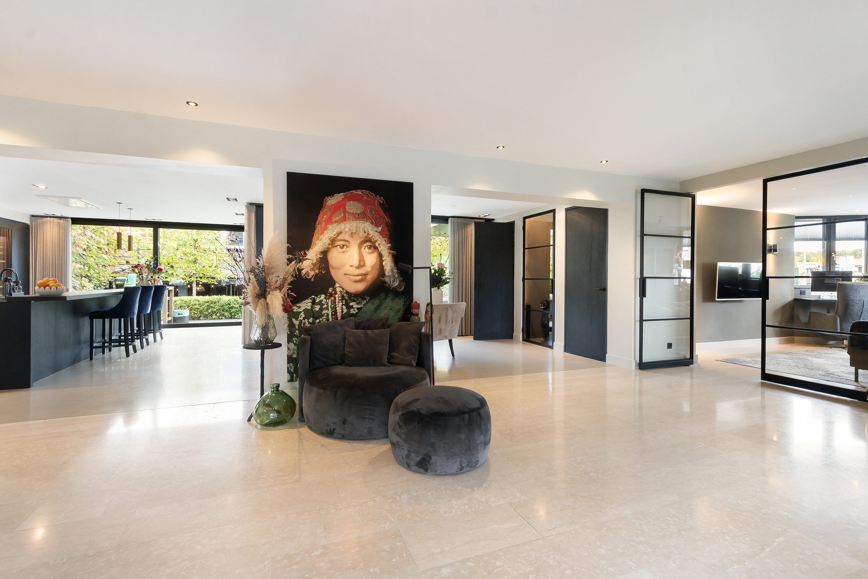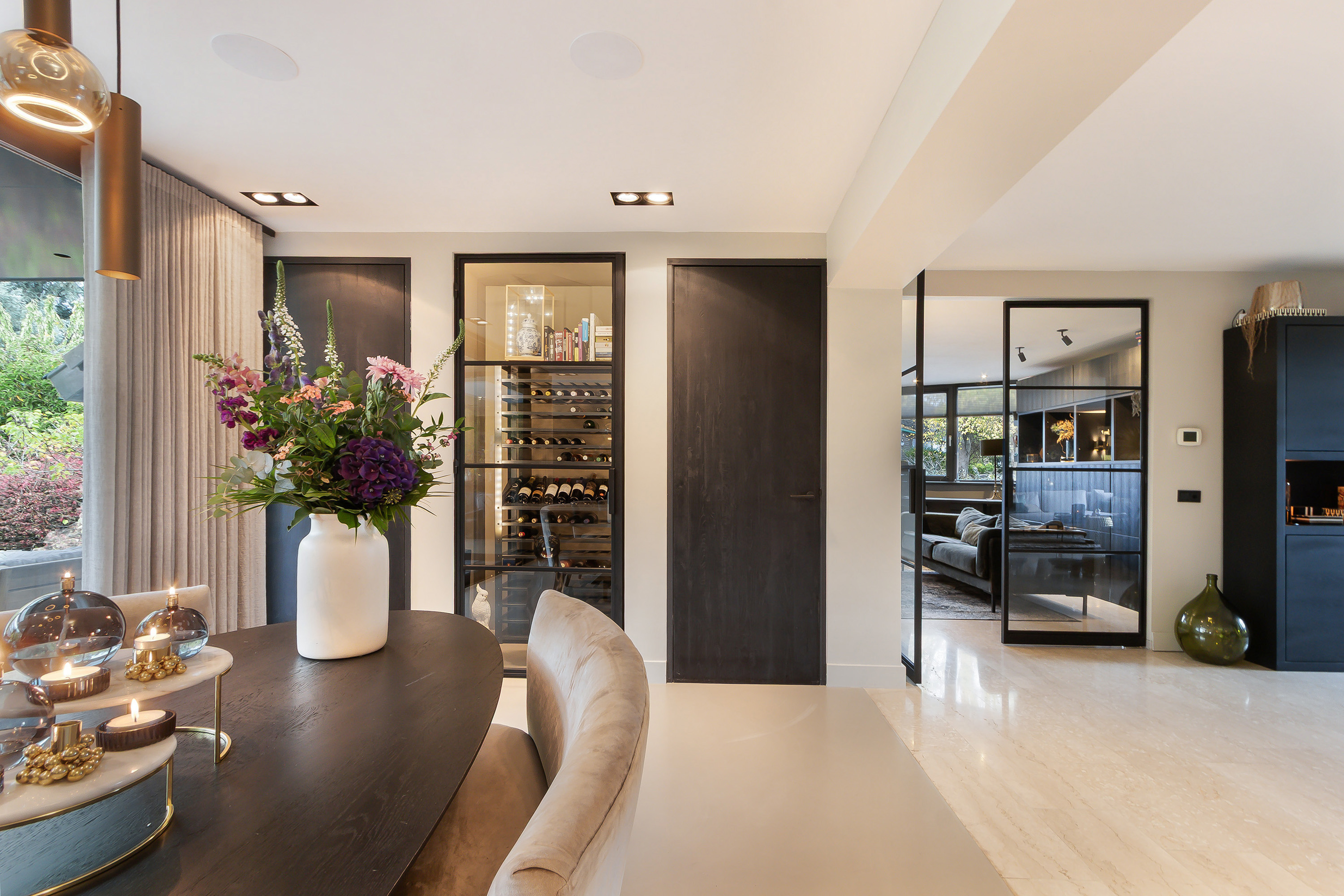 - Entree, royale hal, garderobe, modern toilet, dubbele deur naar de woonkamer;