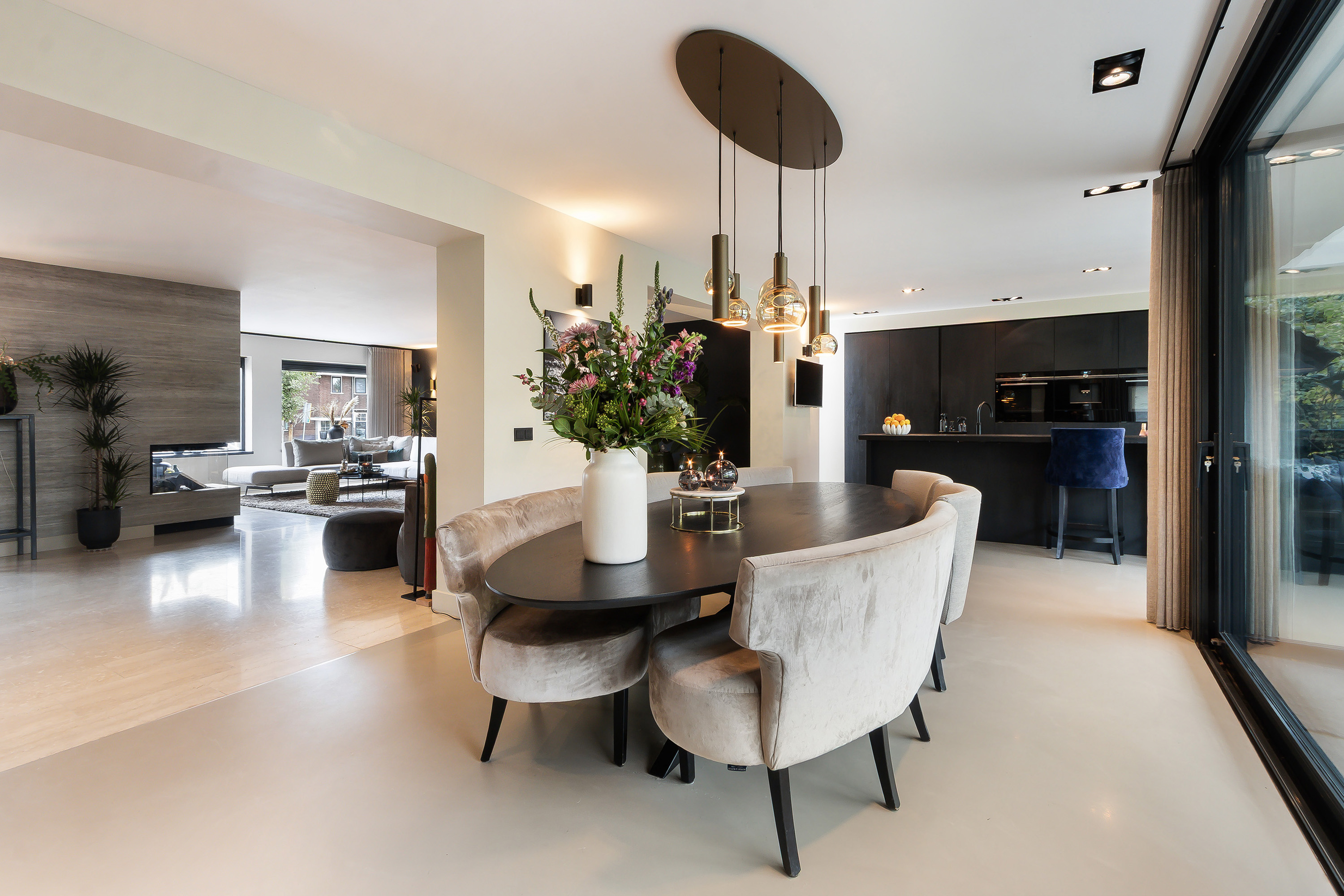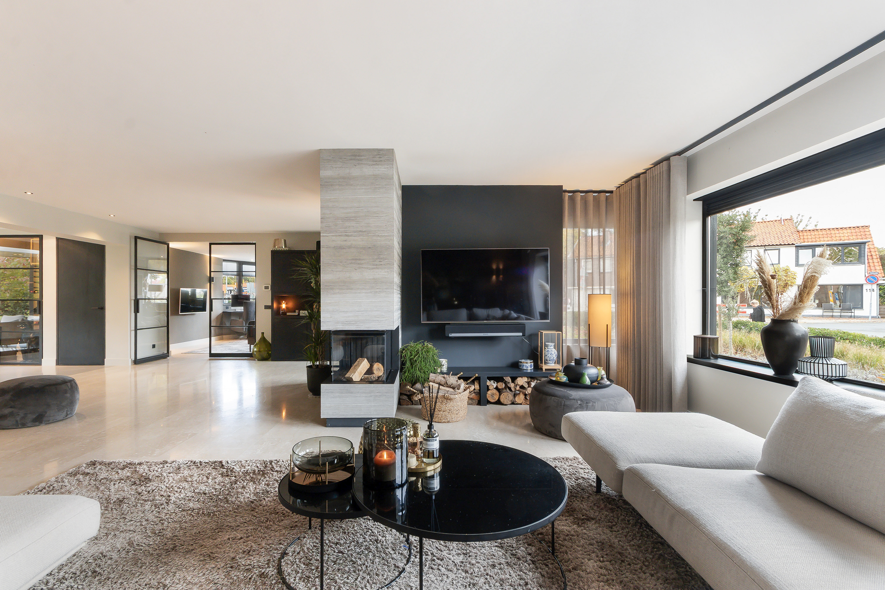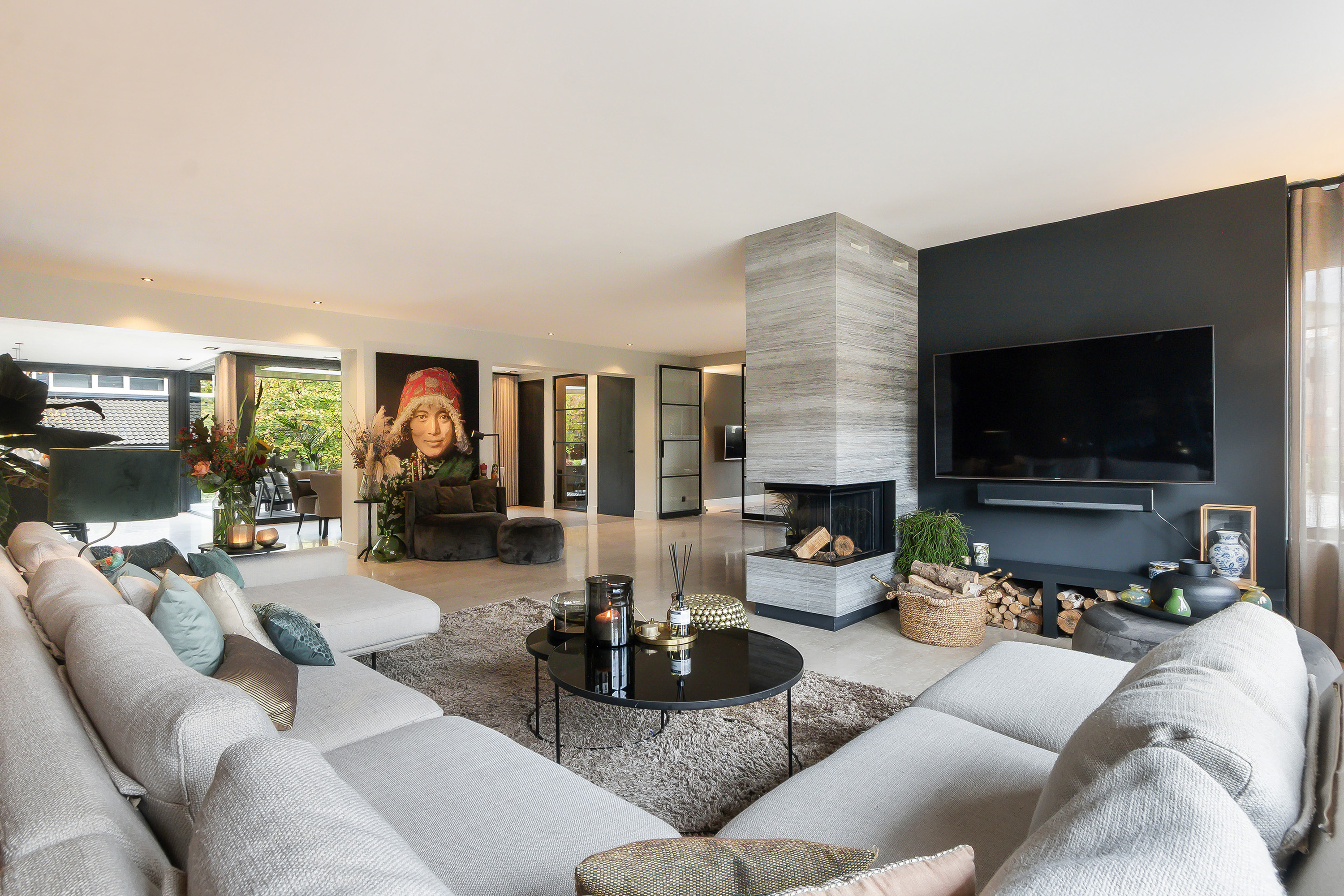 - Fantastische woonkamer in combinatie met een heerlijke leefkeuken, de woonkamer voorziet in een sfeervolle openhaard en in een dubbele deur naar de werkkamer;