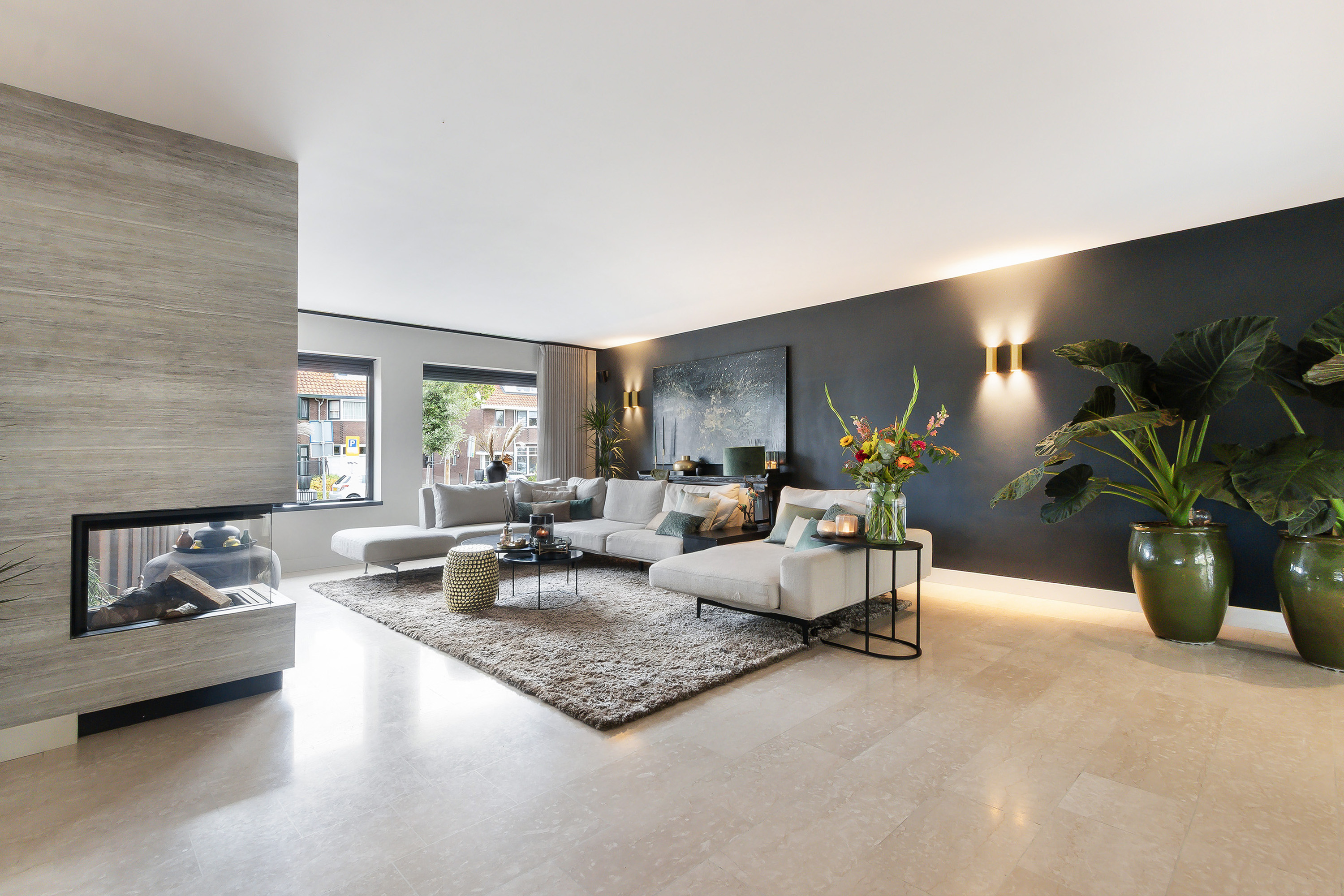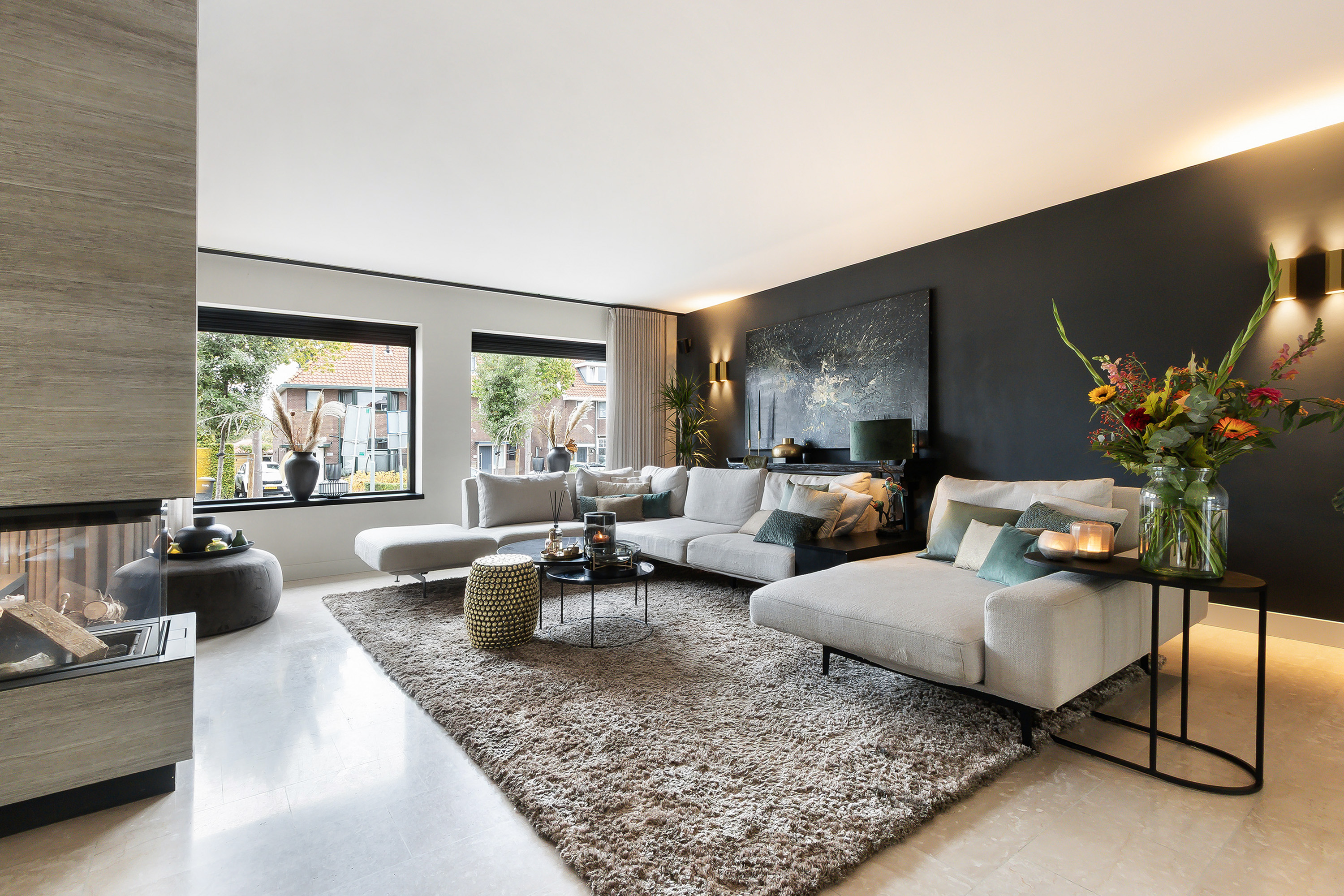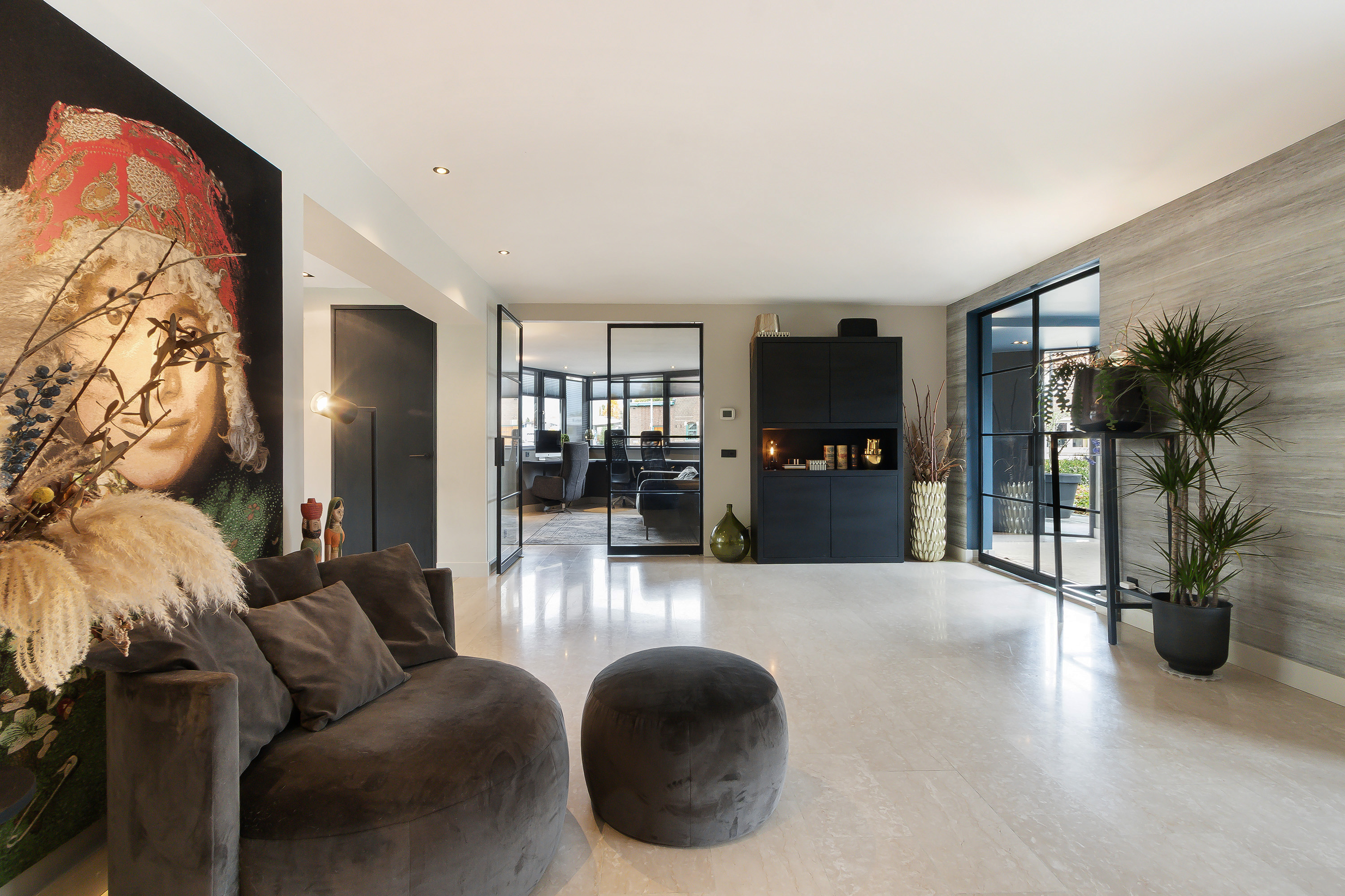 - Fantastische woonkamer in combinatie met een heerlijke leefkeuken, de woonkamer voorziet in een sfeervolle openhaard en in een dubbele deur naar de werkkamer;