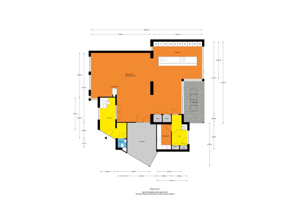 De vermelde afmetingen/ oppervlakten in deze informatie zijn gemeten op basis van de BBMI (Branche Brede Meetinstructie). De meetinstructie is bedoeld om een meer eenduidige manier van meten toe te passen voor het geven van een indicatie van de gebruiksoppervlakte. De meetinstructie sluit verschillen in meetuitkomsten niet volledig uit, door bijvoorbeeld interpretatieverschillen, afrondingen of beperkingen bij het uitvoer en van de meting.