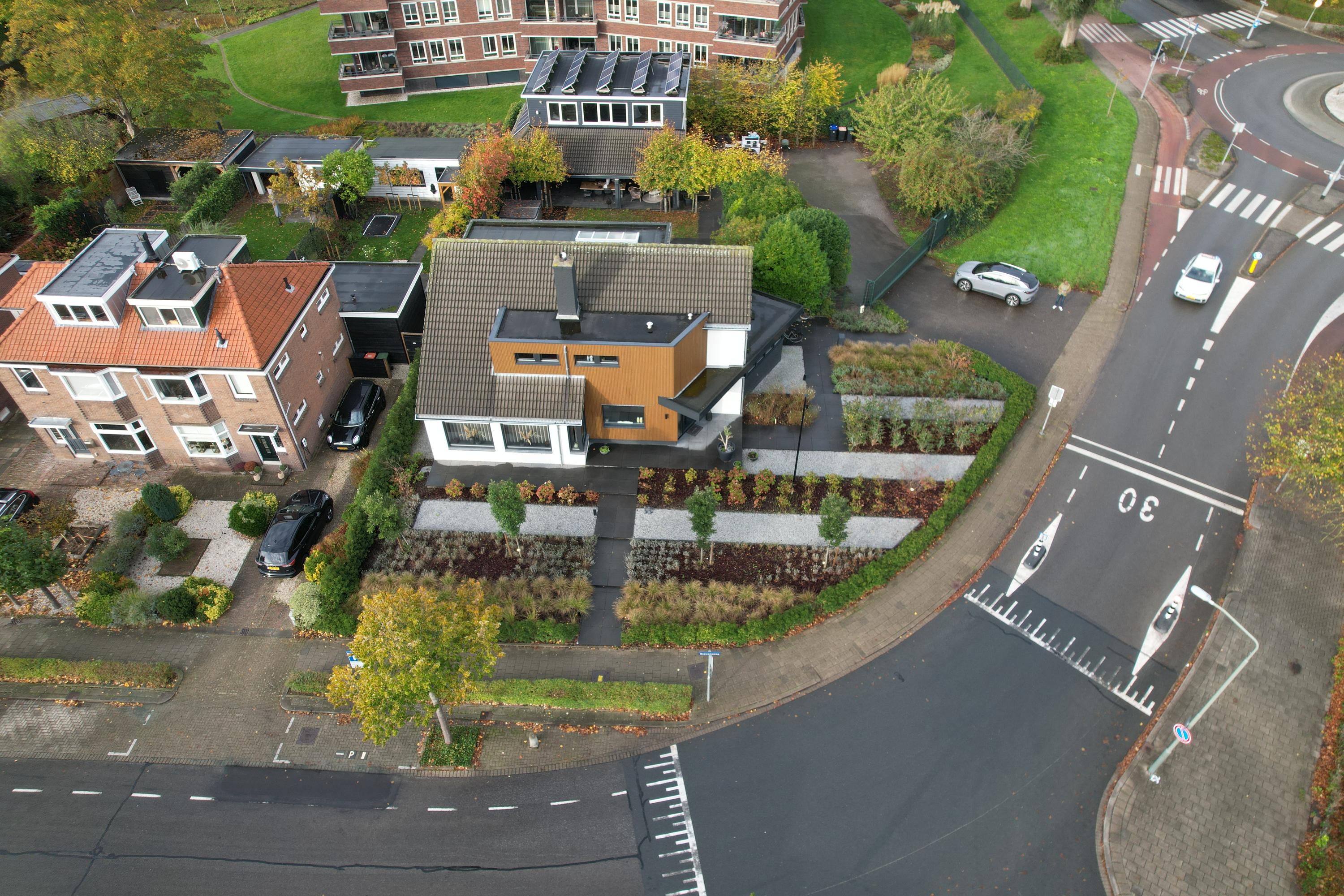 - Een perceel grond van 1.081 m² in combinatie met een groot perceel adoptiegrond/ tuin van de gemeente Dordrecht aan de voorzijde, in 2021 onder architectuur aangelegd, welke zorgt voor een mooi aanzicht van de woning;
