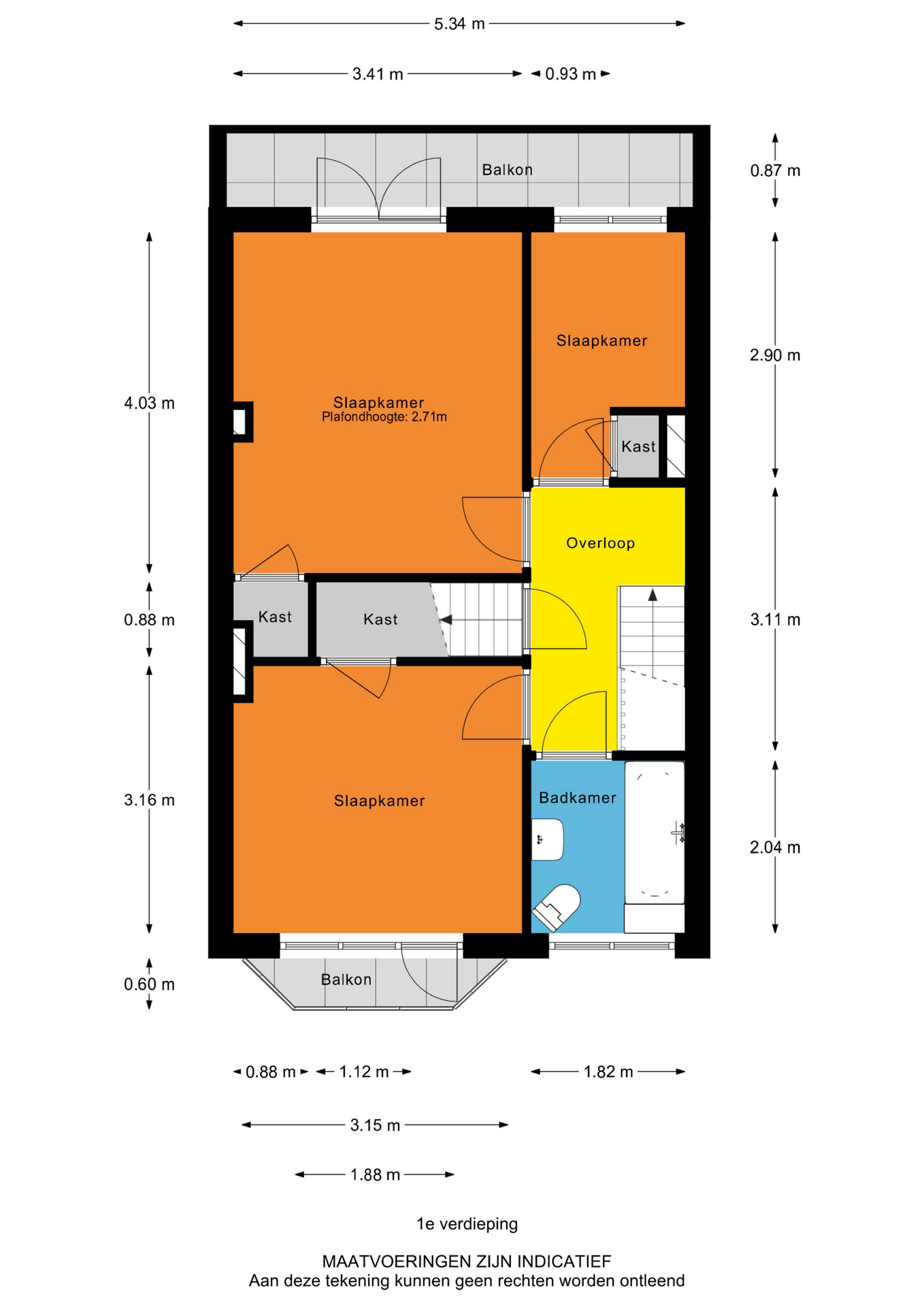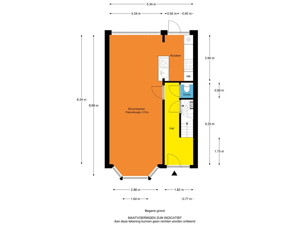 De vermelde afmetingen/ oppervlakten in deze informatie zijn gemeten op basis van de BBMI (Branche Brede Meetinstructie). De meetinstructie is bedoeld om een meer eenduidige manier van meten toe te passen voor het geven van een indicatie van de gebruiksoppervlakte. De meetinstructie sluit verschillen in meetuitkomsten niet volledig uit, door bijvoorbeeld interpretatieverschillen, afrondingen of beperkingen bij het uitvoer en van de meting.