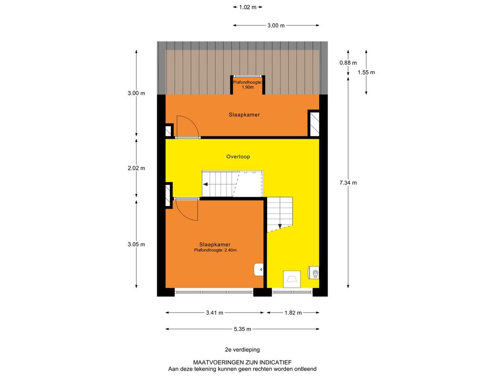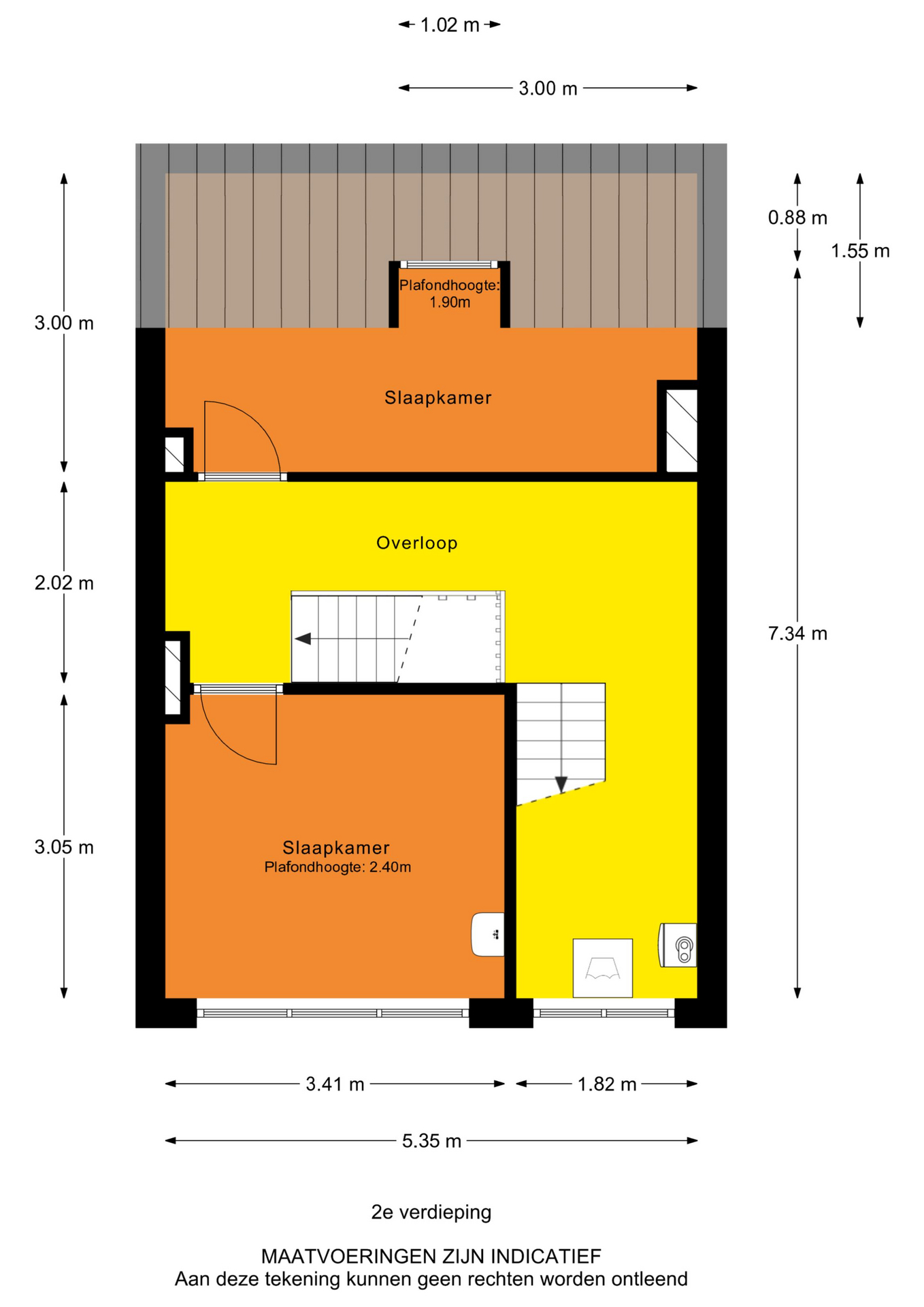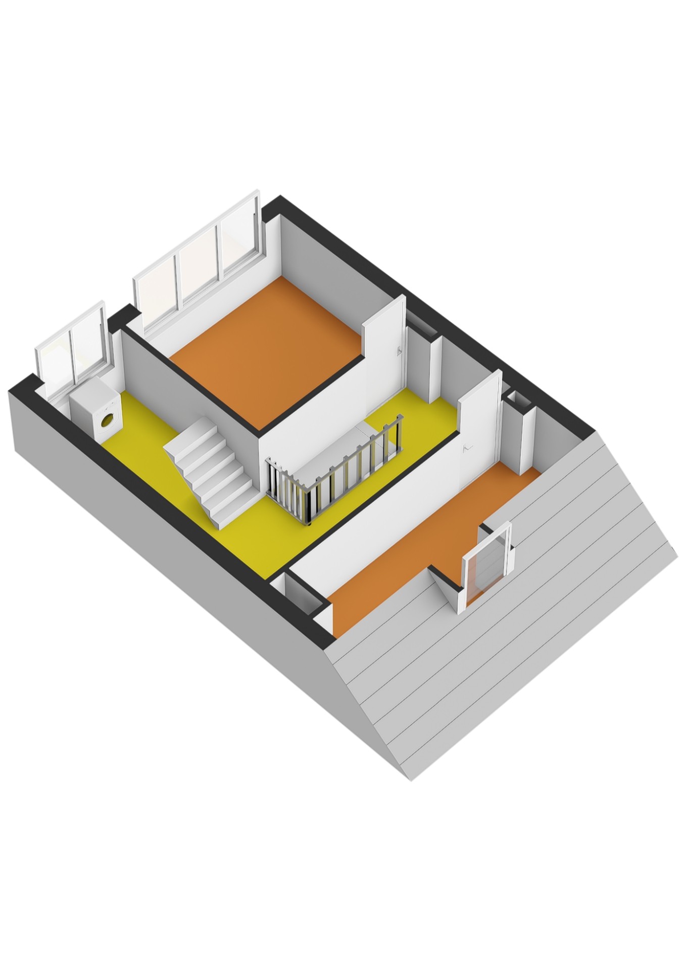 - Tweede verdieping: wandafwerking met stucwerk. Vloerafwerking met houtlook laminaatvloer;