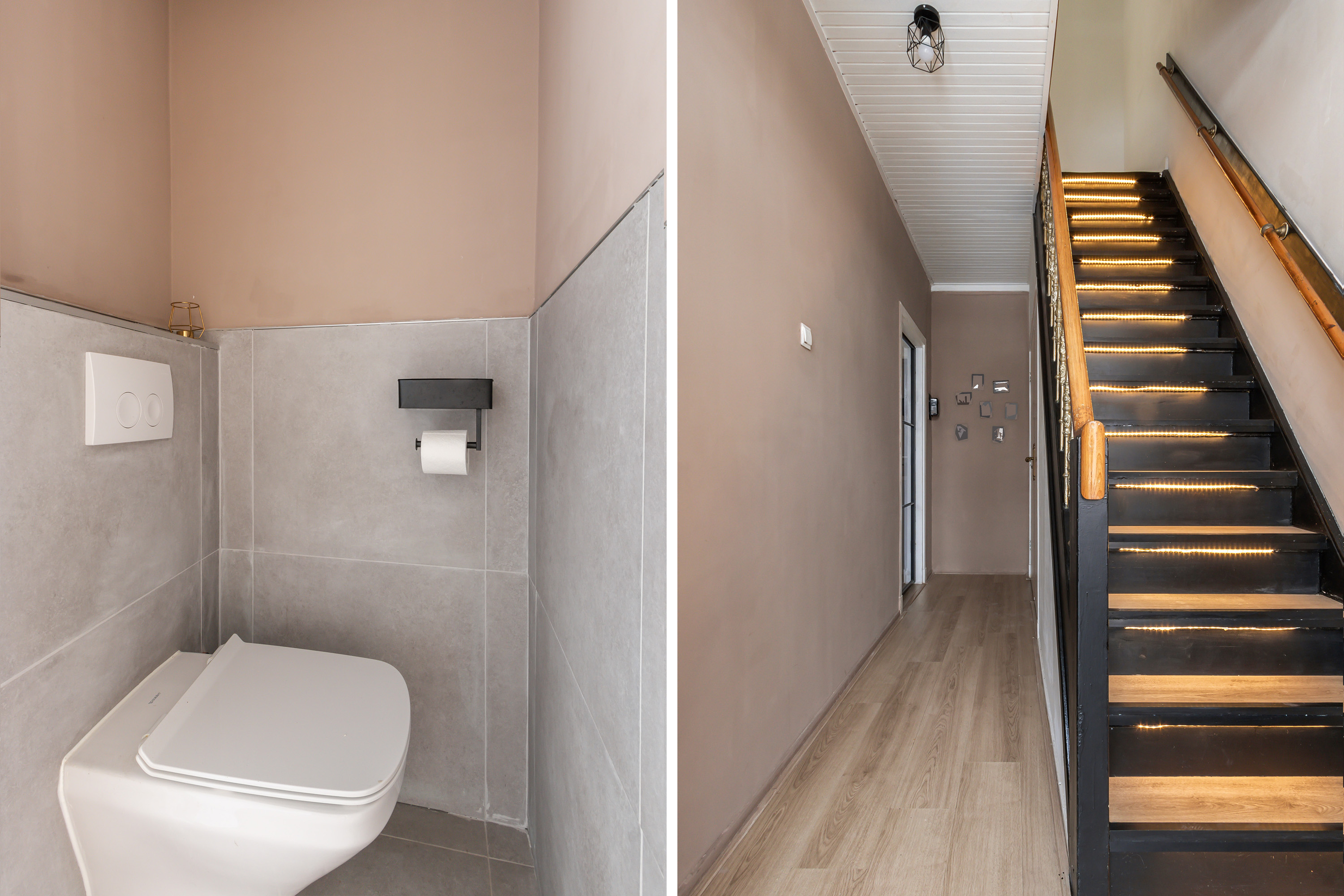 - Begane grond: wandafwerking met stucwerk. Vloerafwerking met houtlook laminaatvloer;