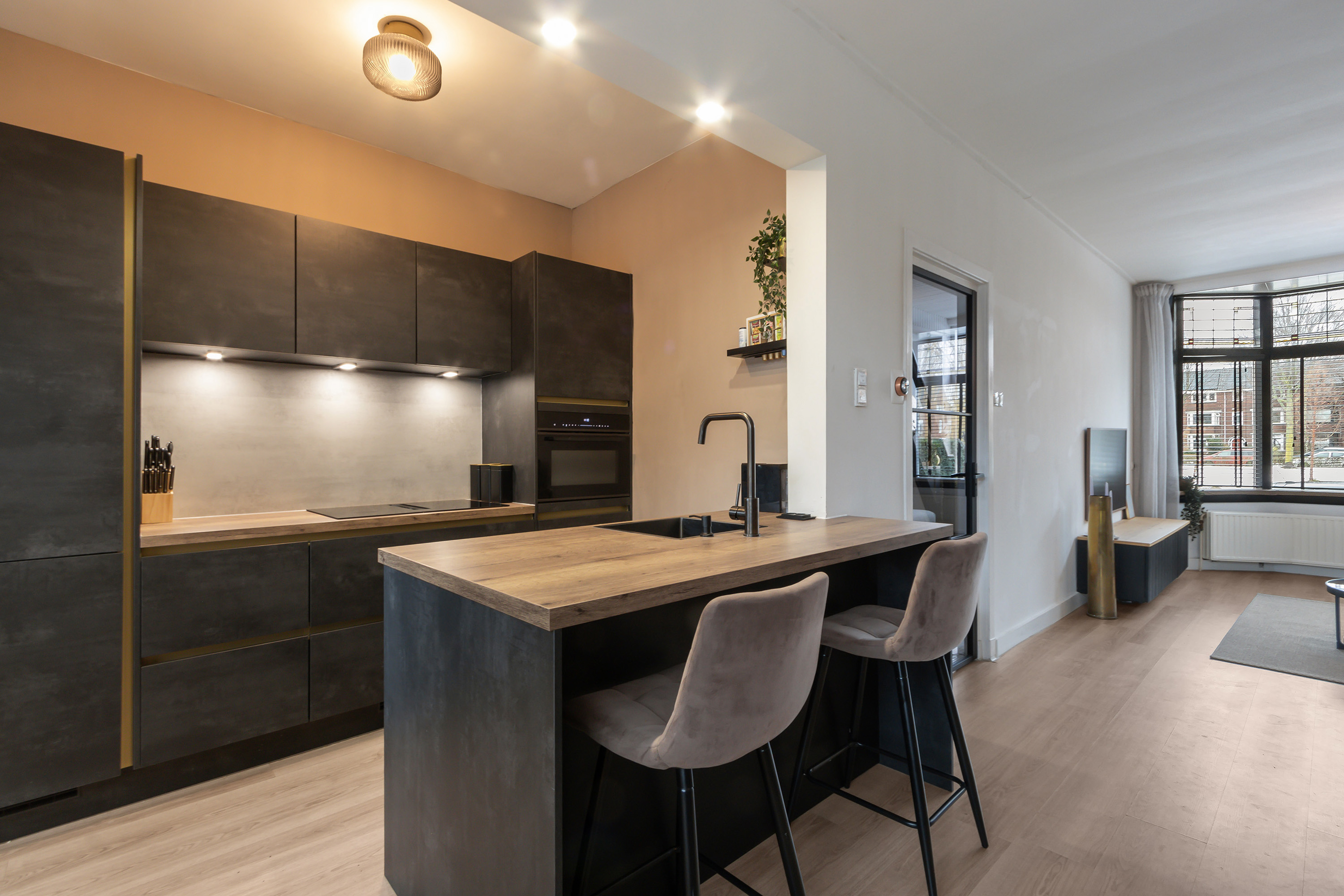 - Woonkeuken; voorzien van diverse inbouwapparatuur (o.a. koelvriescombinatie, vaatwasser, oven met magnetronfunctie en 4-pits en inductiekookplaat met geïntegreerde afzuiging). De keuken geeft toegang tot de fraai aangelegde achtertuin op het zuidoosten.