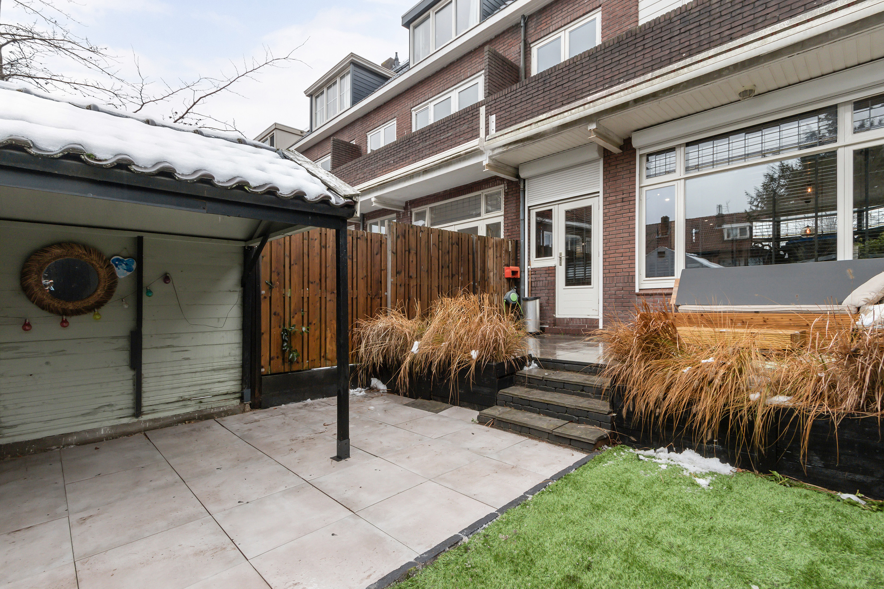 Deze charmante jaren ’30 erkerwoning combineert authentieke sfeer met modern wooncomfort op hoog niveau. Originele details als glas-in-loodramen, paneeldeuren, de teakhouten voordeur en karakteristieke trappen geven de woning een warme en tijdloze uitstraling. De royale leefruimtes hebben een en prettige lichtinval zorgen en voor een aangenaam woongevoel.