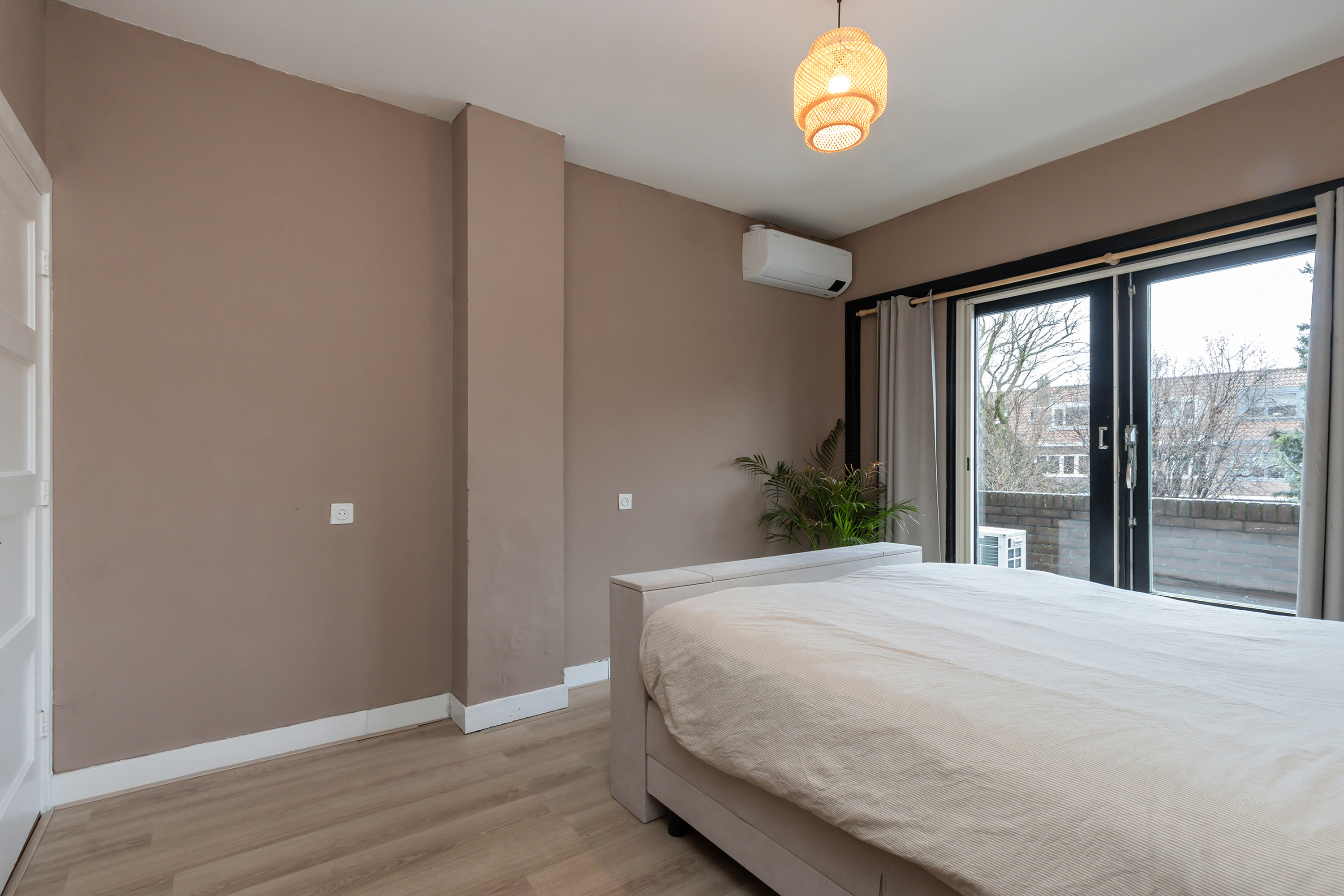 - Slaapkamer 1, royale hoofdslaapkamer (ca. 14 m²), ligt aan de achterzijde en is voorzien van inbouwkasten, airconditioning en openslaande deuren naar het balkon;