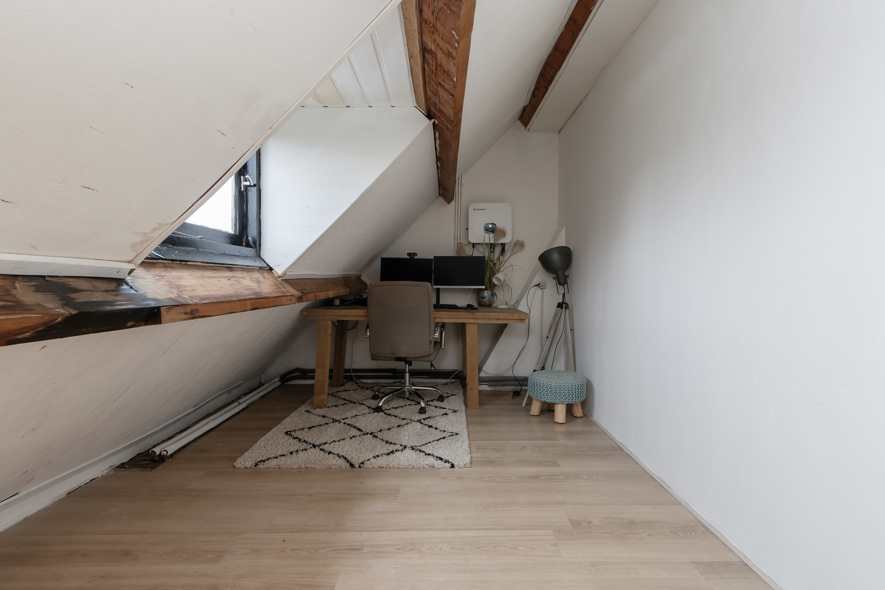 - Grote, hoge en volledig bevloerde zolderruimte met een nokhoogte van circa 2,4 meter, voorzien van een Velux dakraam met HR++ beglazing. Dankzij de hoogte en het daglicht leent deze ruimte zich bij uitstek voor gebruik als extra werkkamer of slaapkamer. Uiteraard is de zolder ook ideaal te gebruiken als royale bergzolder.