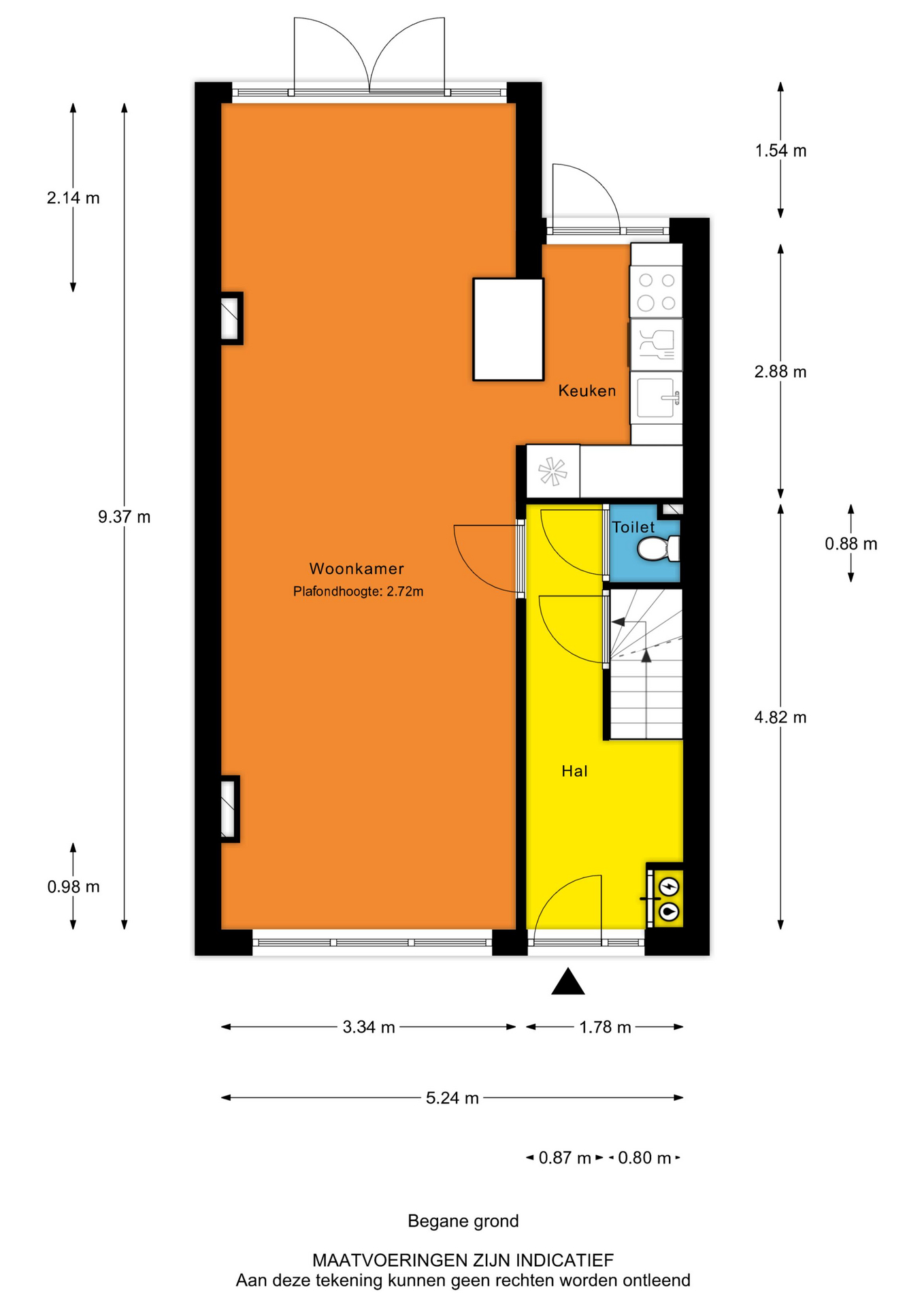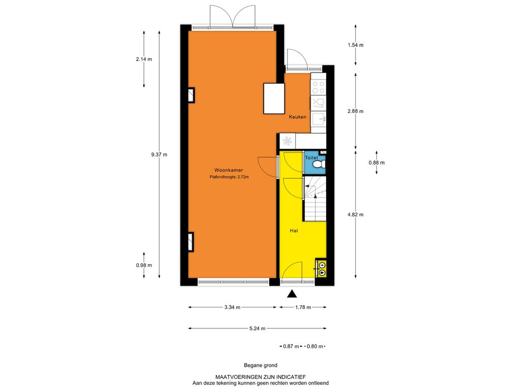 - Entree, hal, trap naar 1e verdieping, deur naar de kelder en een toilet;