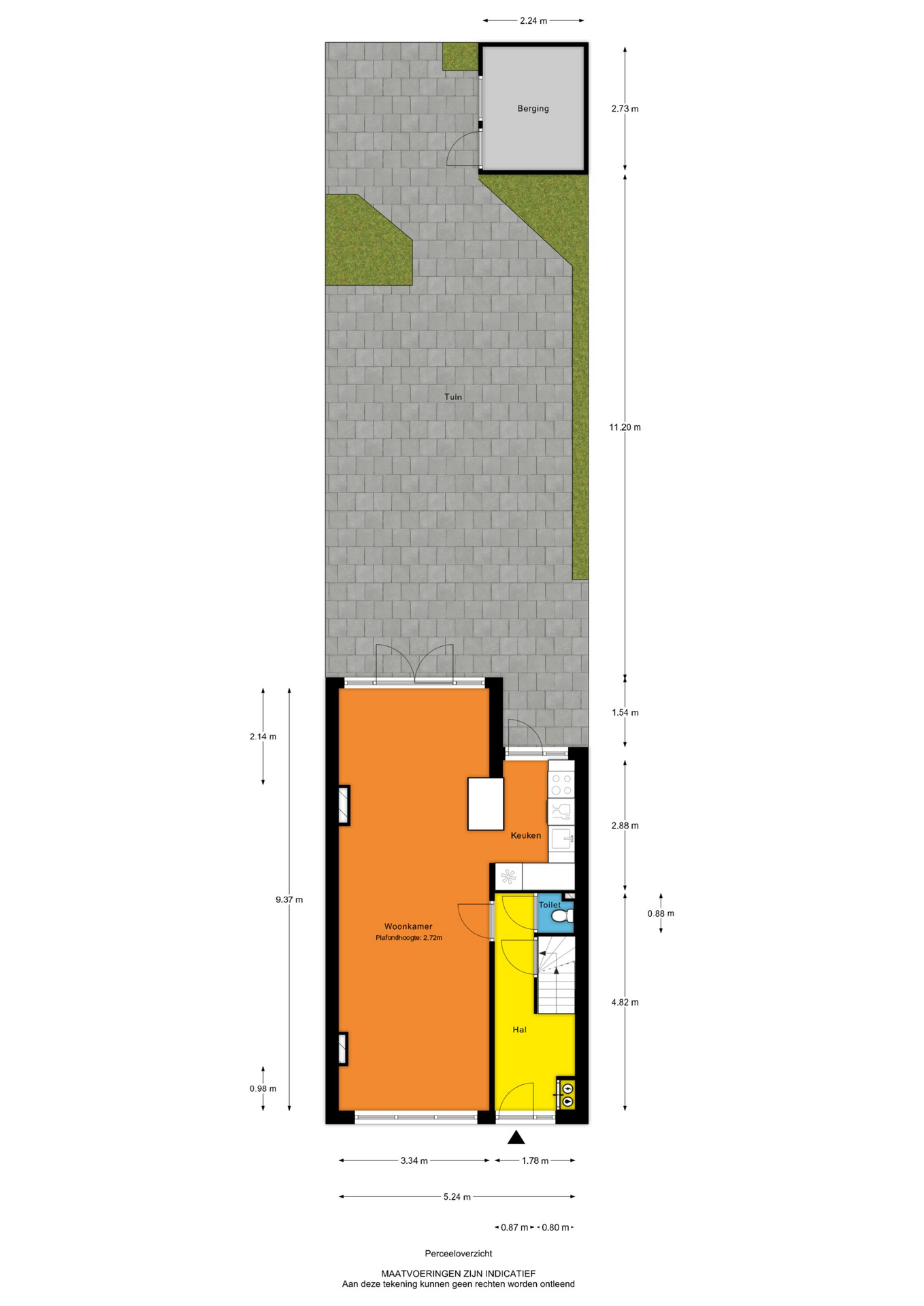 - Kelder (ca. 5 m²) met een plafondhoogte van ca. 1.73 m.