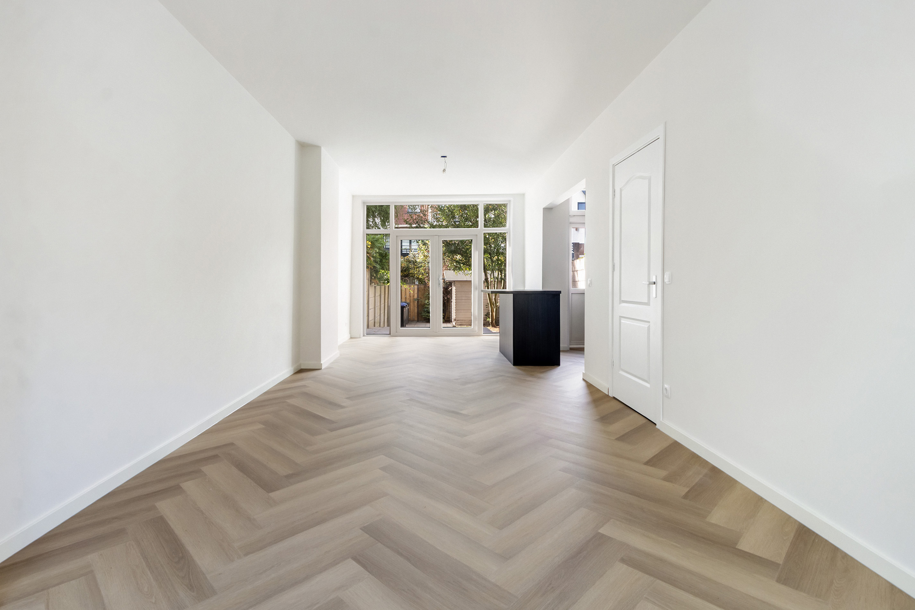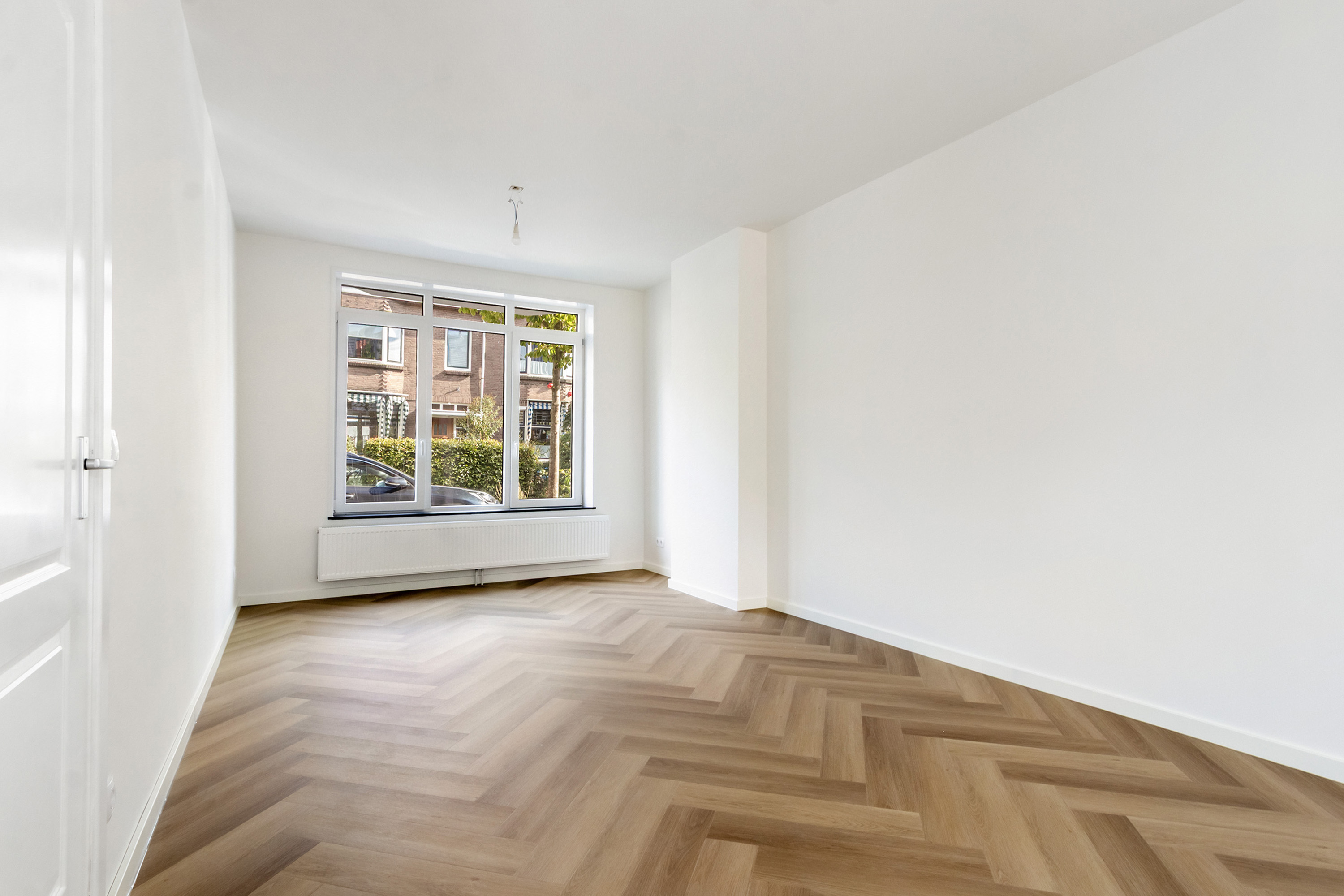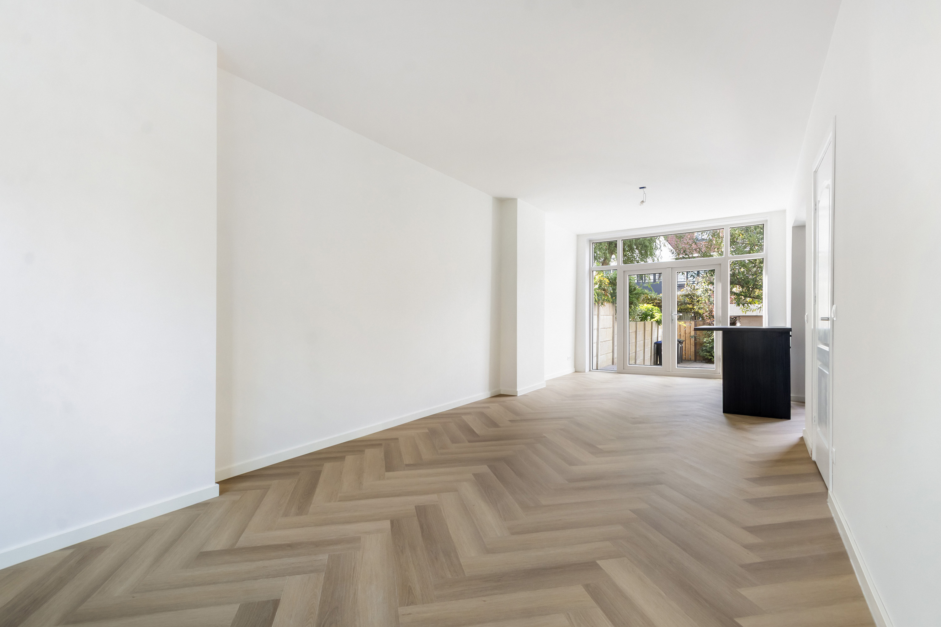 - Begane grond: glad gestucte wandafwerking, wit gesausd. Pvc visgraat vloerafwerking.