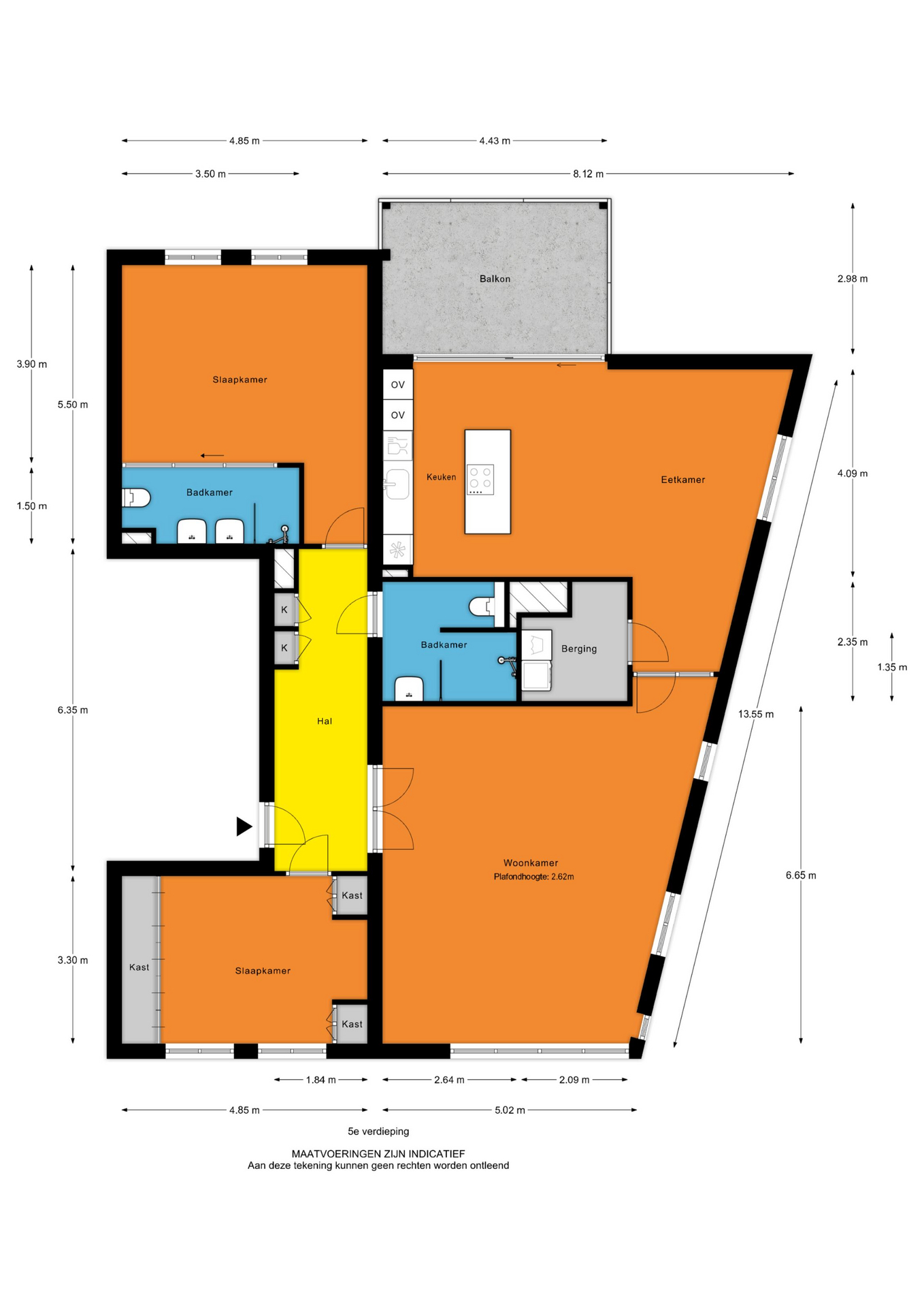 De vermelde afmetingen/ oppervlakten in deze informatie zijn gemeten op basis van de BBMI (Branche Brede Meetinstructie). De meetinstructie is bedoeld om een meer eenduidige manier van meten toe te passen voor het geven van een indicatie van de gebruiksoppervlakte. De meetinstructie sluit verschillen in meetuitkomsten niet volledig uit, door bijvoorbeeld interpretatieverschillen, afrondingen of beperkingen bij het uitvoeren van de meting.