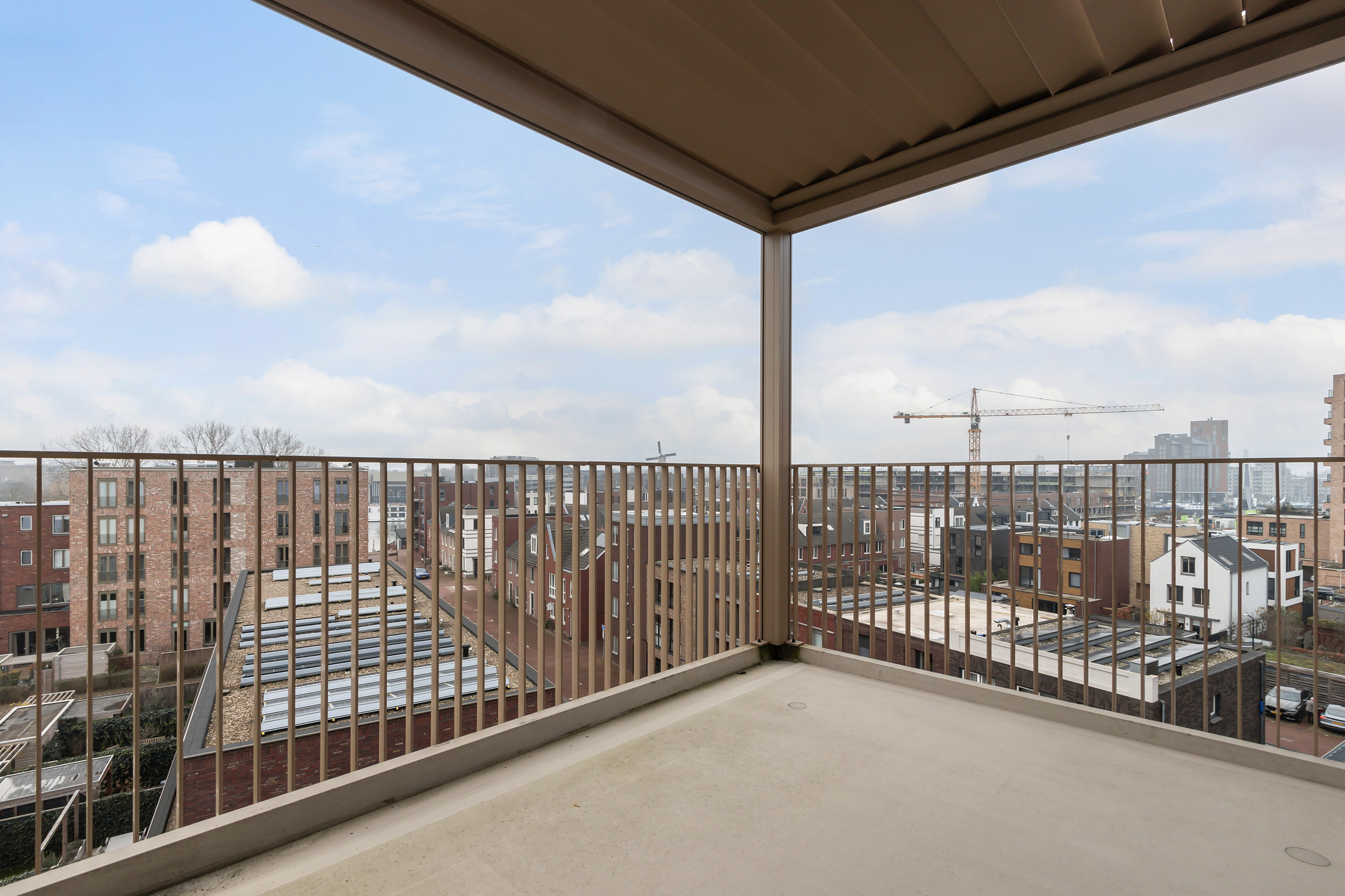 - Balkon: groot ca. 13 m², gesitueerd op het zuiden met een stalen spijlenbalustrade. Zeer luxe overkapping/ zonneluifel i.c.m. 3 elektrisch bedienbare screens, verlichting en verwarming.
