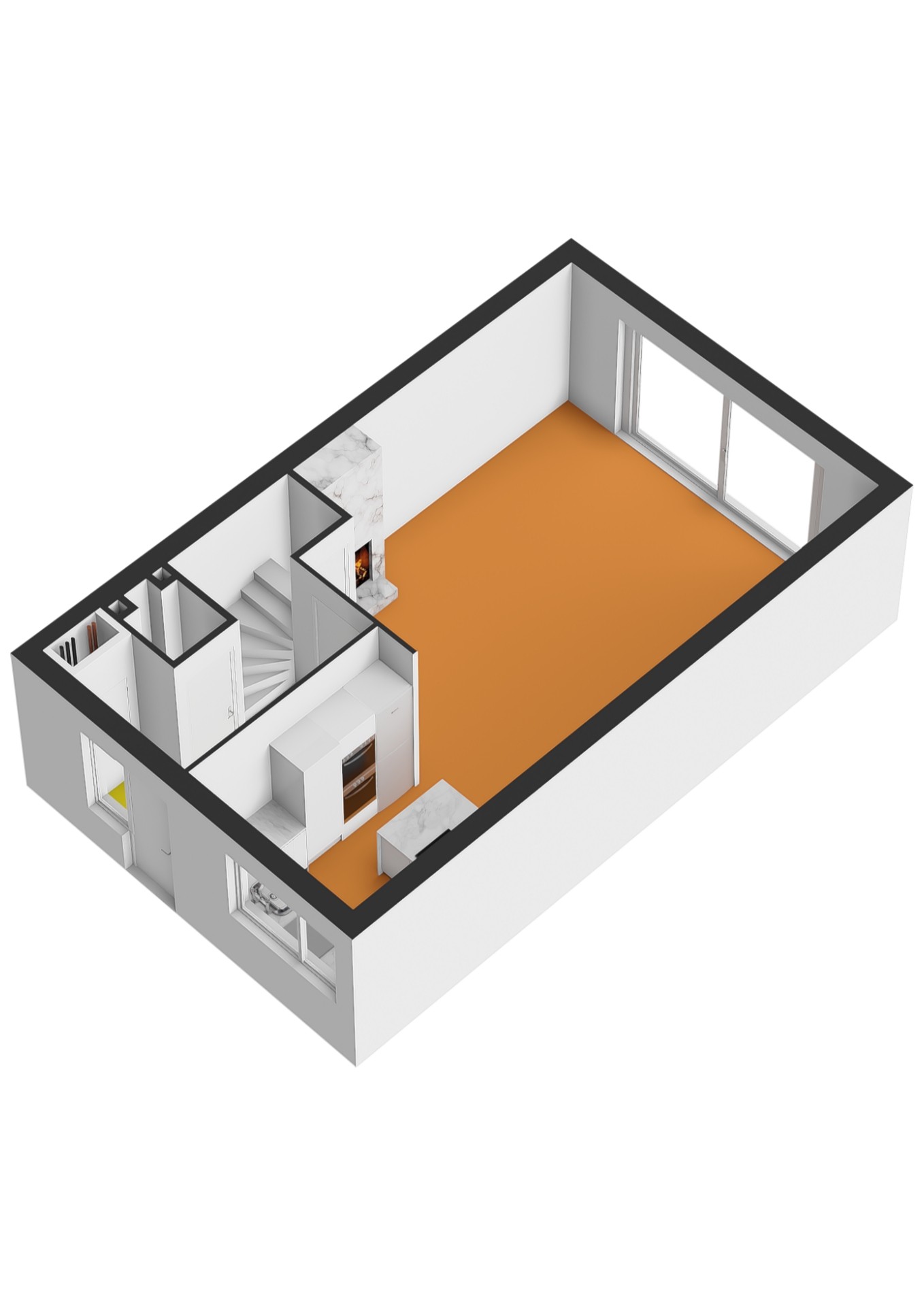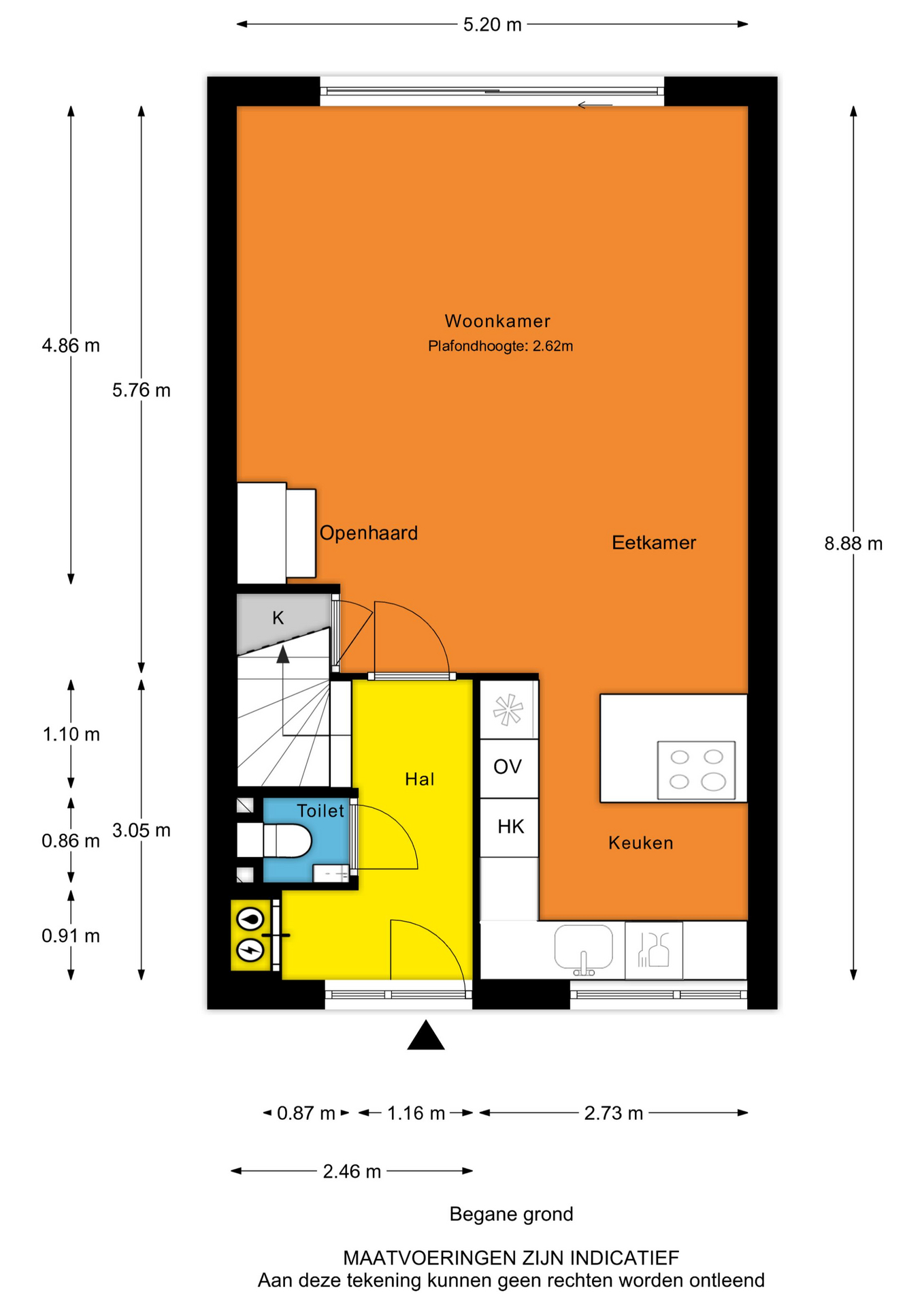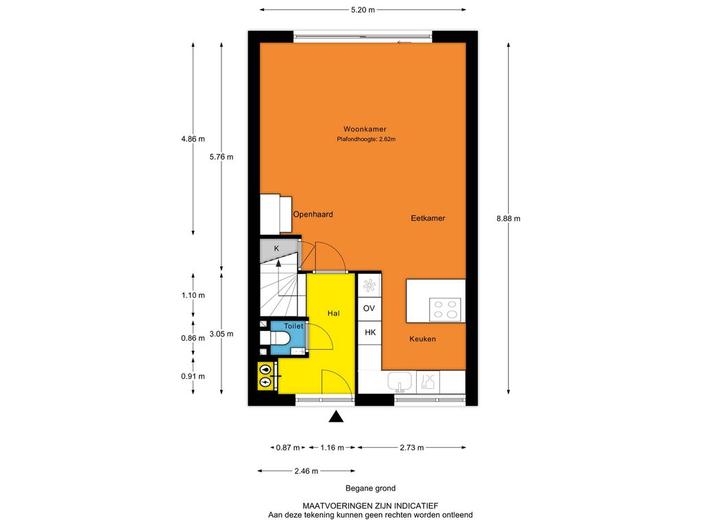 - Entree, hal, meterkast, toilet en trap naar 1e verdieping;