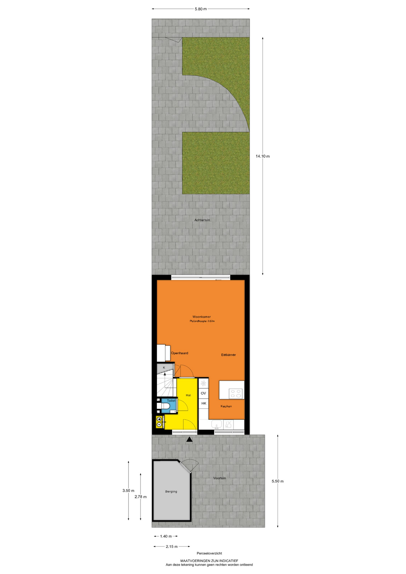 - Achtertuin: gesitueerd op het westen. Omheind met houtenschuttingen i.c.m. betonnen palen en beschikt over een achterom. De tuin is maar liefst 14 meter diep en dat betekent dat je altijd verzekerd bent van een zon en een schaduwplek.