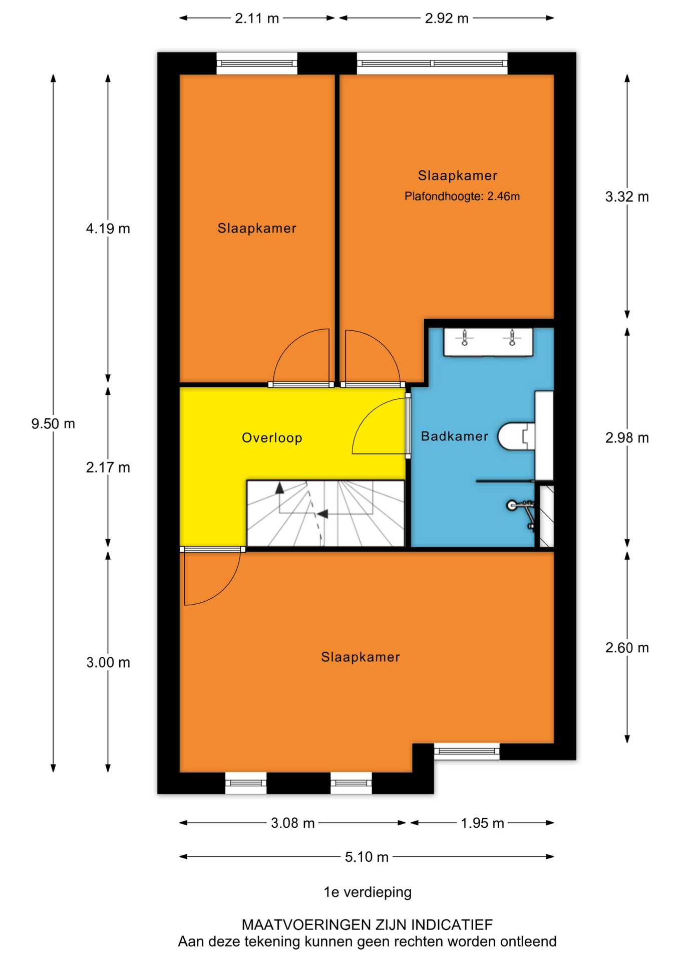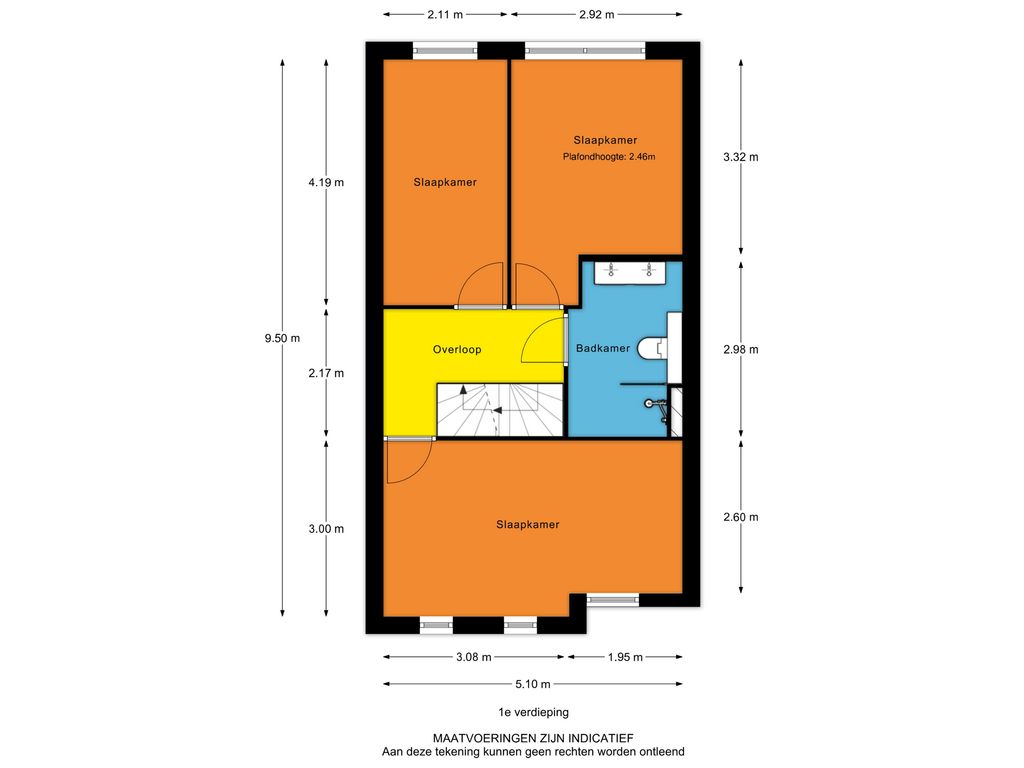 - Overloop met open trap naar de 2e verdieping en deuren naar 3 slaapkamers en de badkamer;