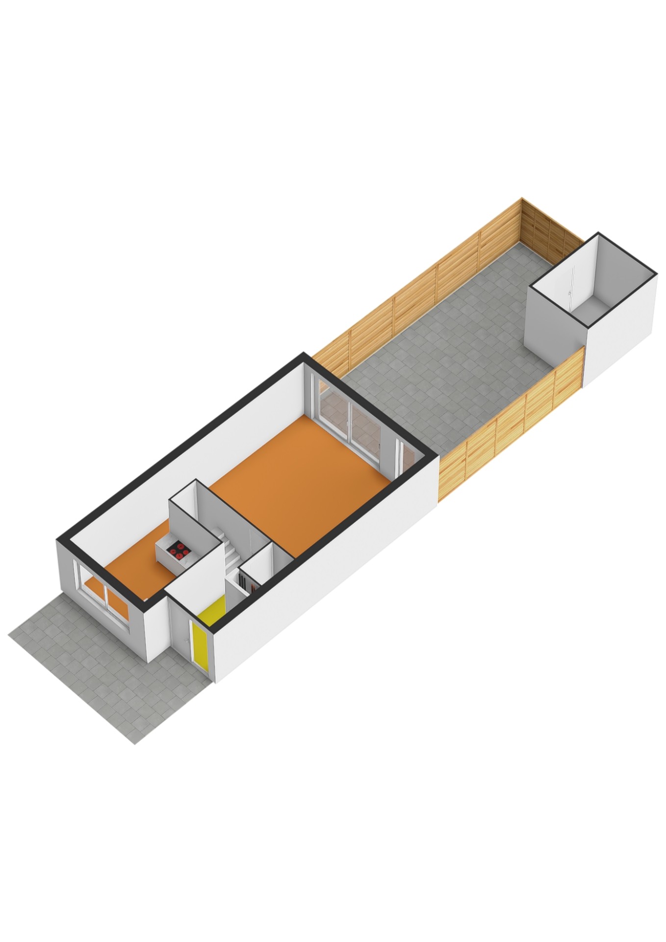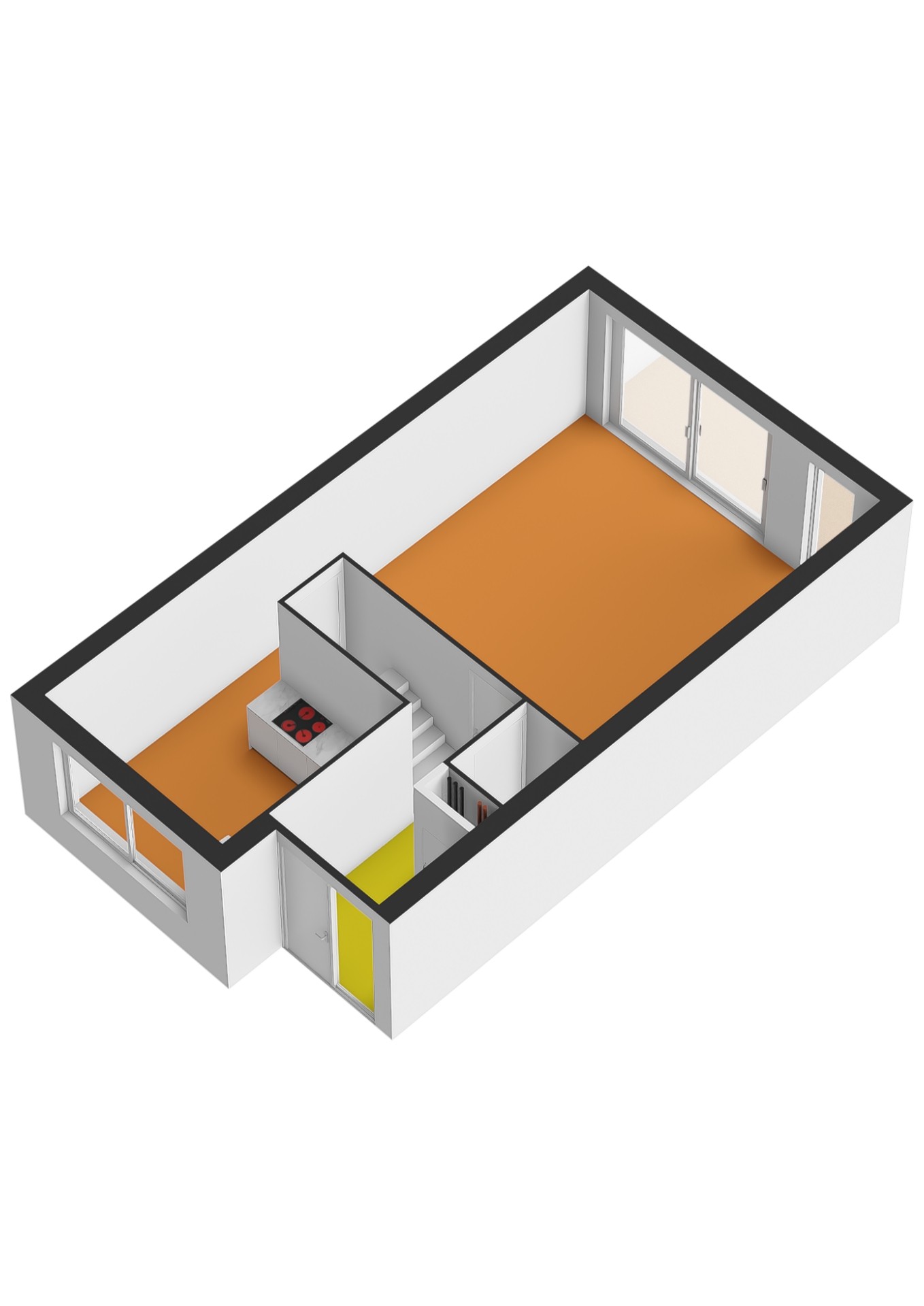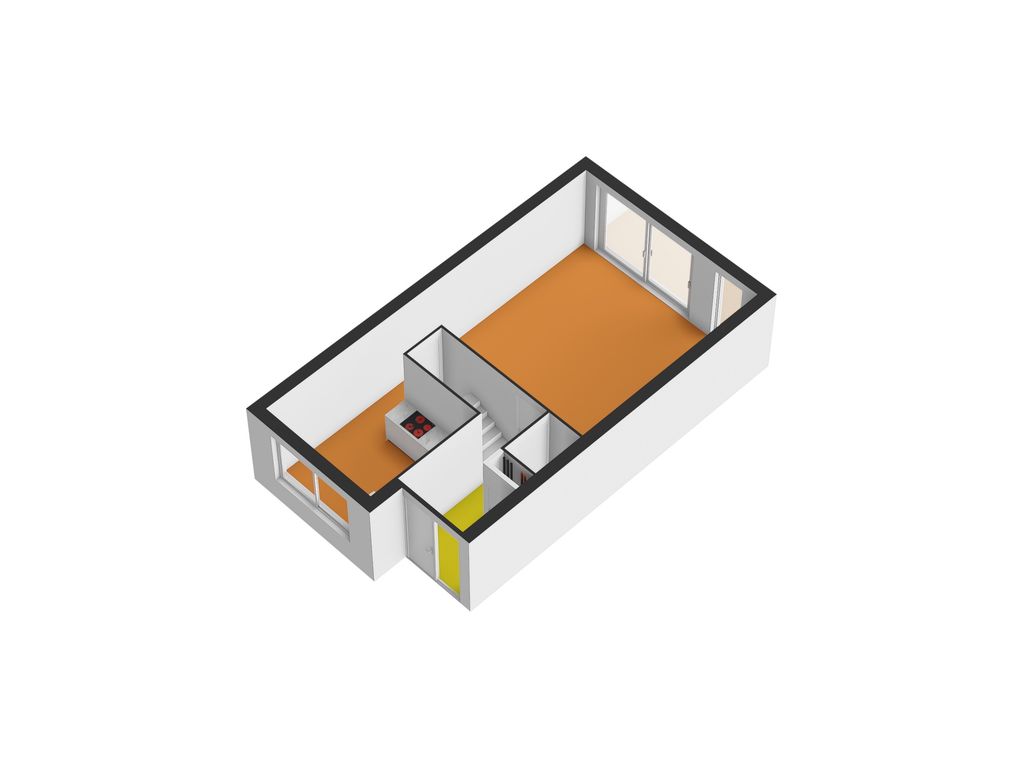 - Entree, hal, meterkast, toilet, trap naar 1e verdieping en deur naar de woonkamer;