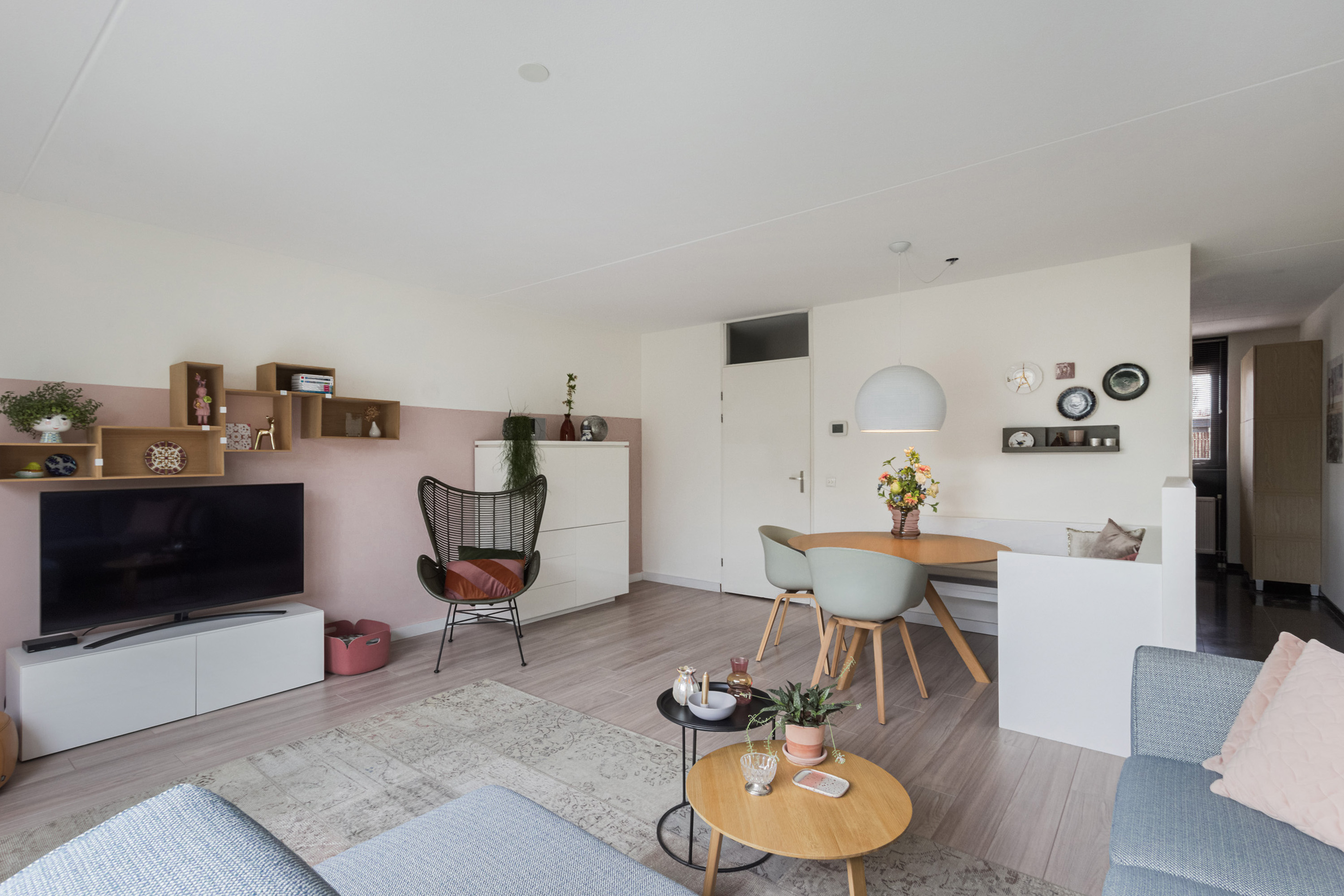 - Doorloop met grote praktische trapkast met genoeg opbergruimte;