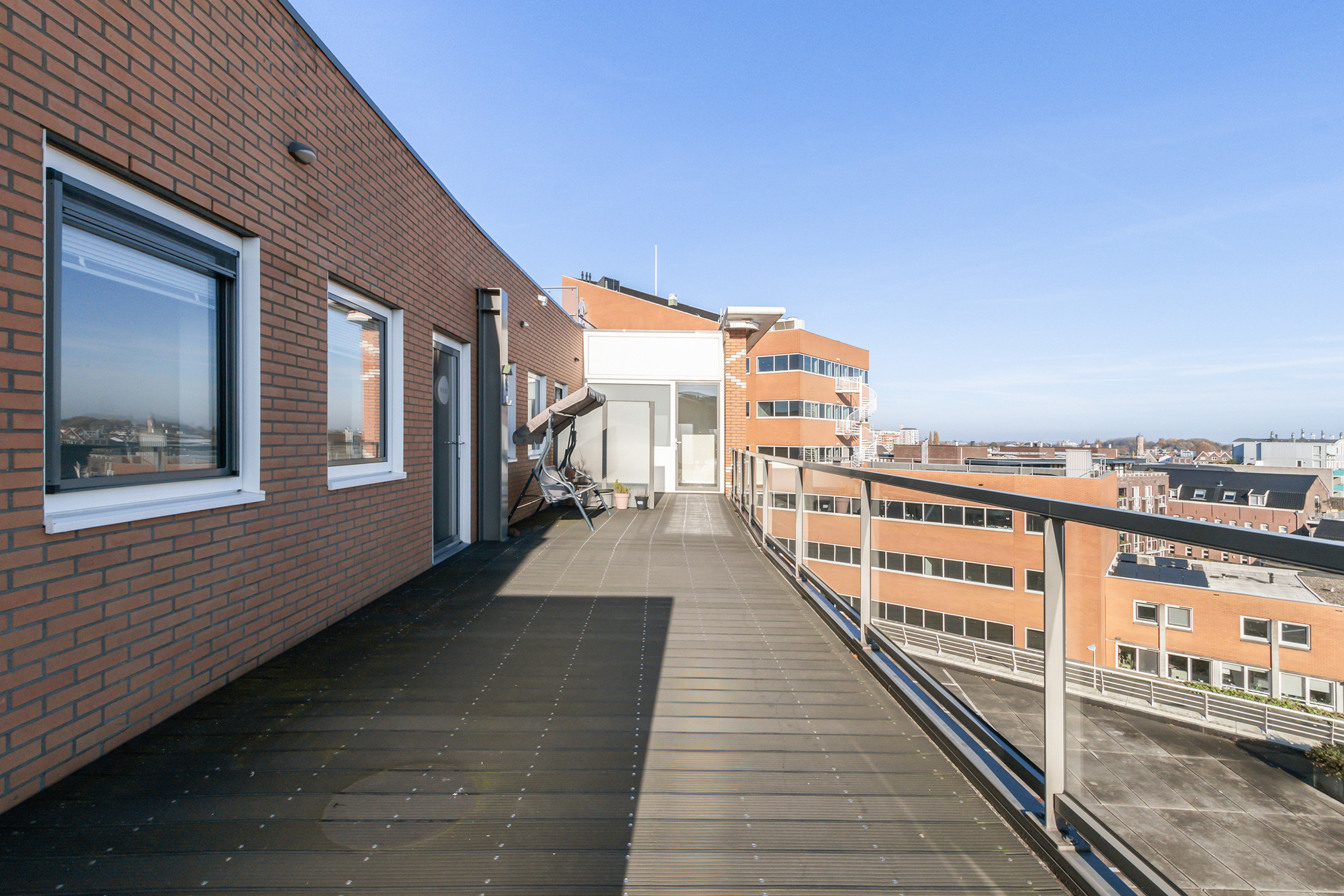 - Galerijterras, afm. ca. 5,7 x 1,9 m., gesitueerd op het noorden met boeiend uitzicht op de directe omgeving en de Grote Kerk;