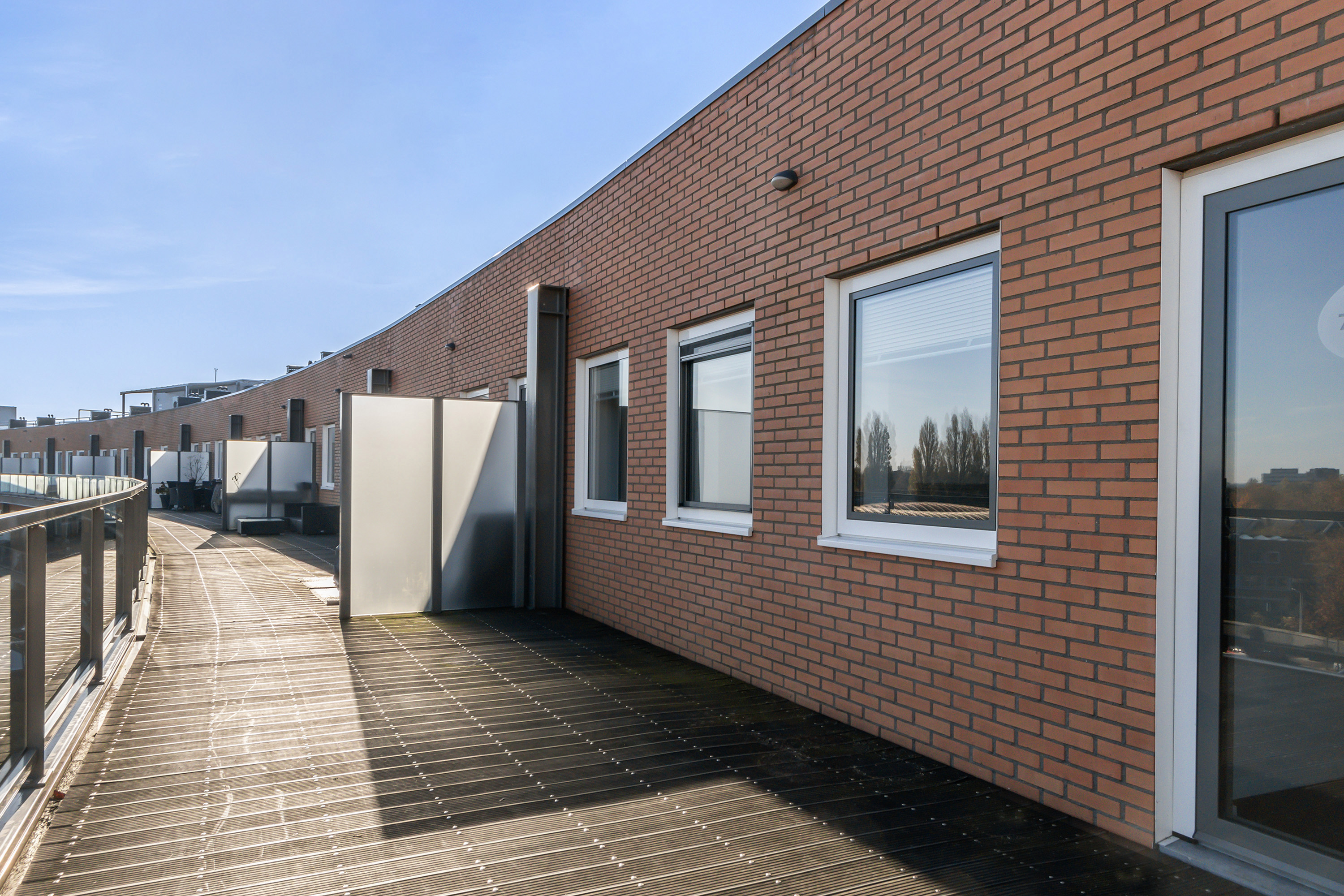 - Gezamenlijk dakterras met huiskamer en serre-aanbouw.