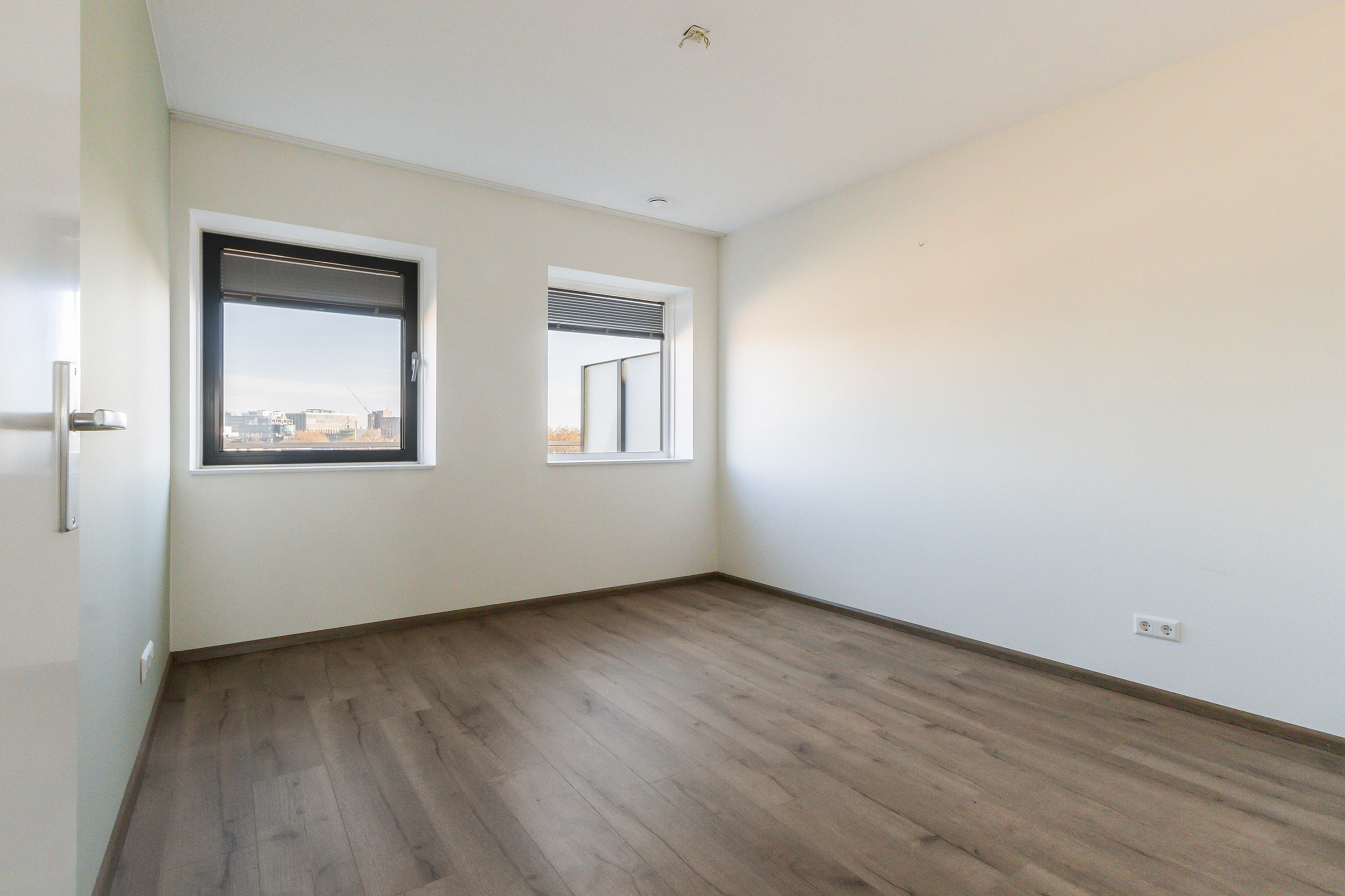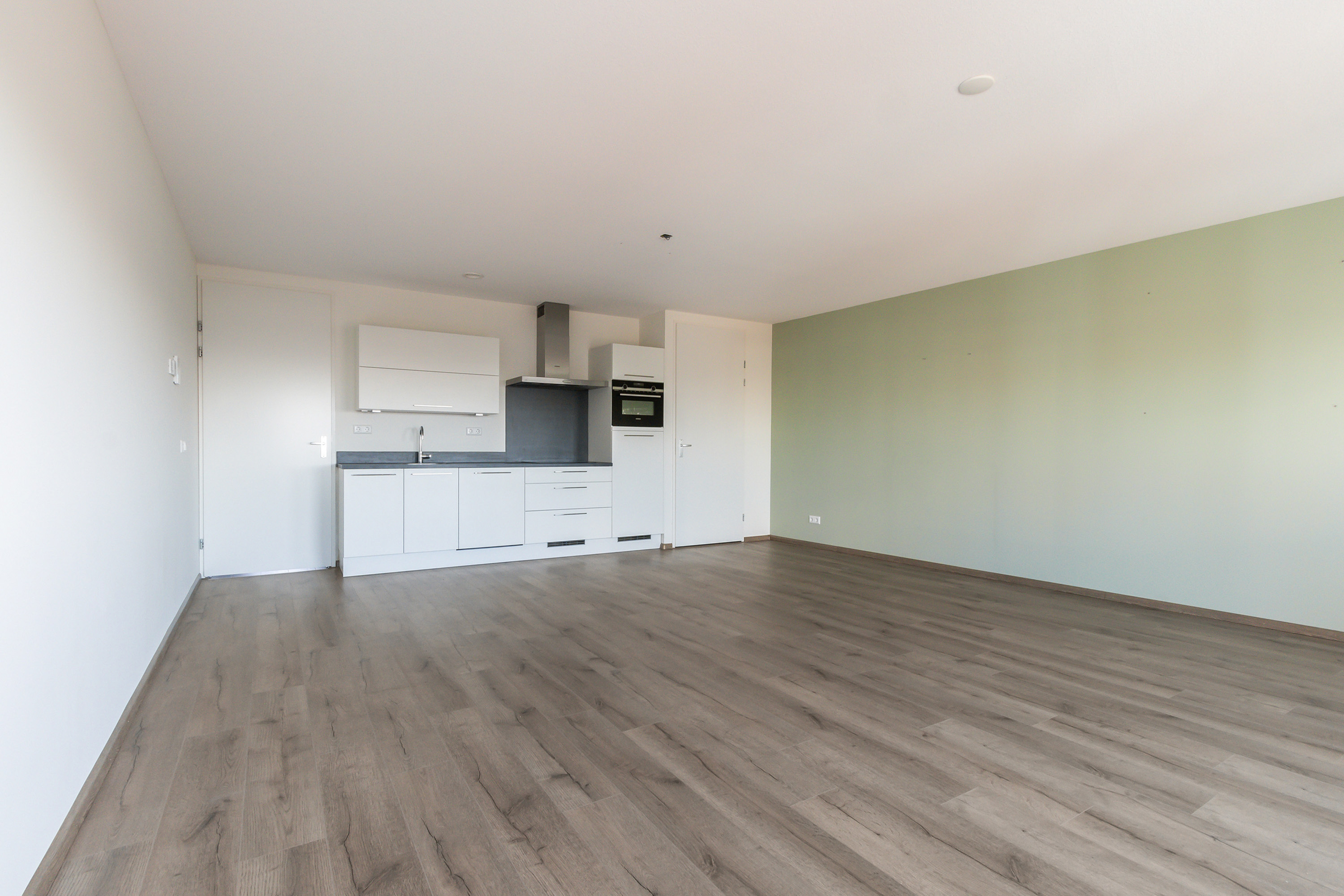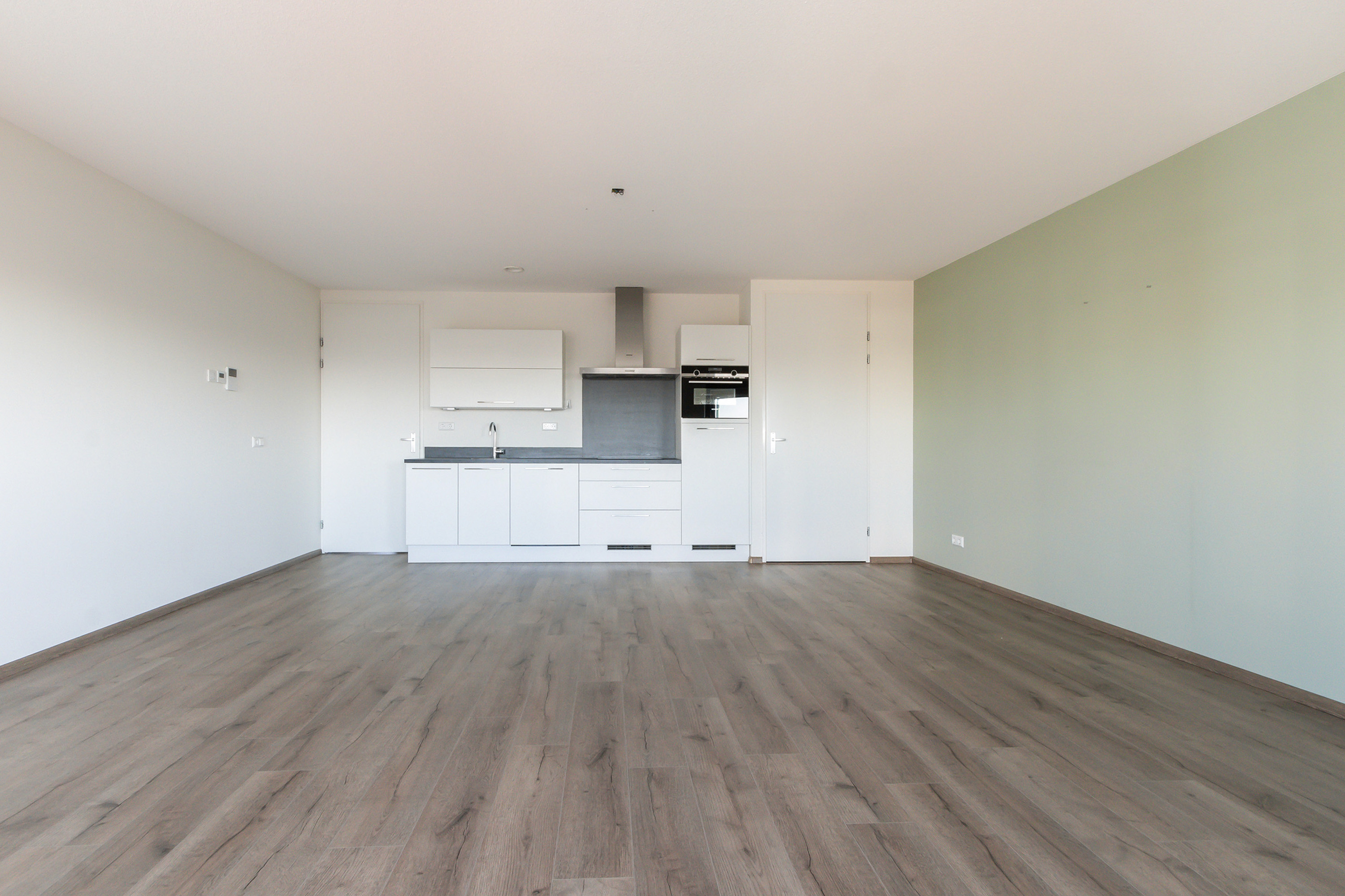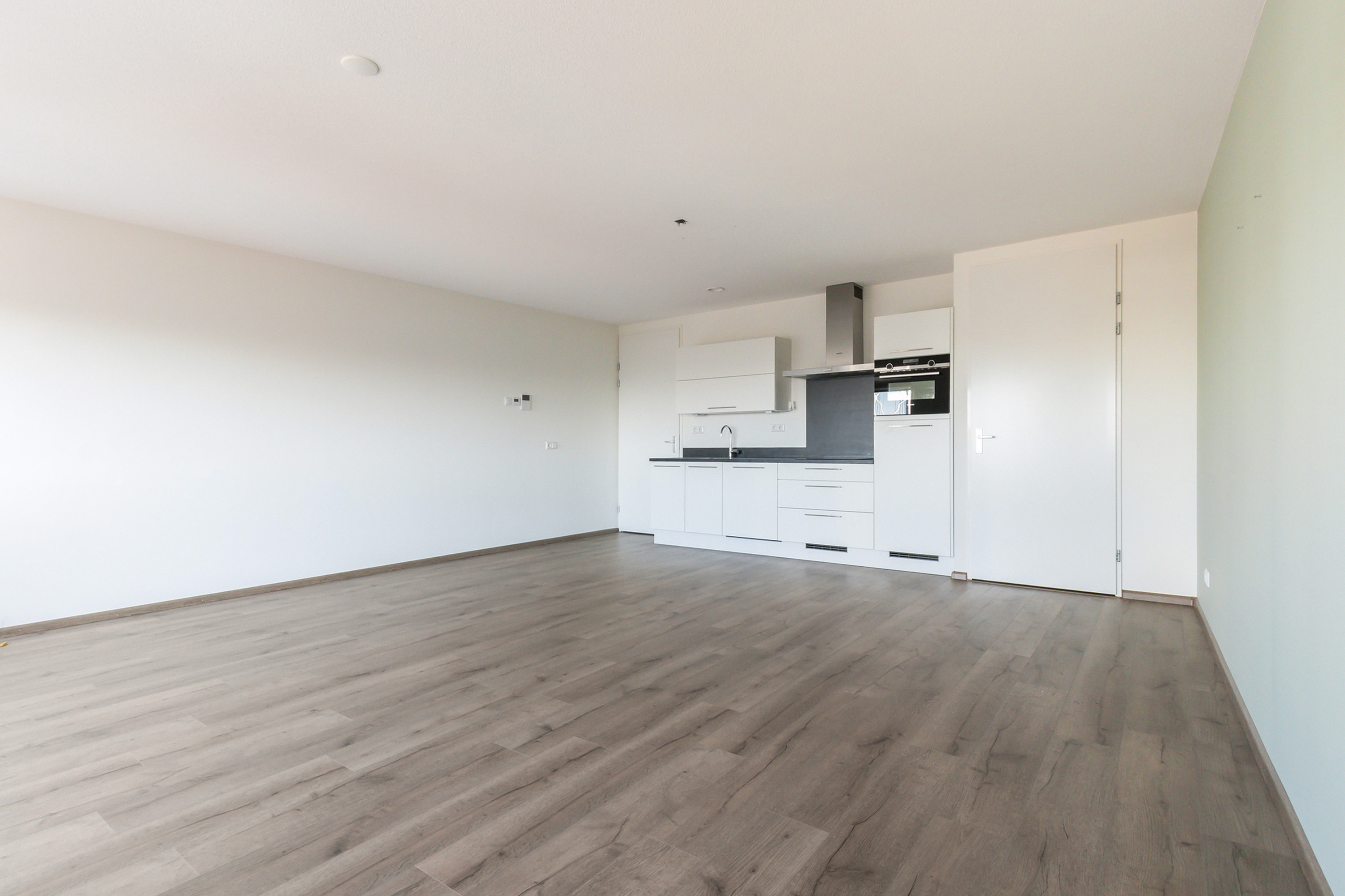 Het appartement beschikt o.a. over een woonkamer met open keuken (totaal ca. 36 m²), waarbij de woonkamer ca. 5.68 m. breed is, een separaat modern toilet, 2 slaapkamers en een moderne badkamer met wastafel en douchecabine. De luxe witte keukeninrichting is van Bruynzeel en is v.v. diverse Siemens inbouwapparatuur. De plafonds zijn v.v. spuitwerk (wit). De wanden zijn gestuct en gesausd en de vloerafwerking is laminaat (ter overname net zoals de raambekleding).