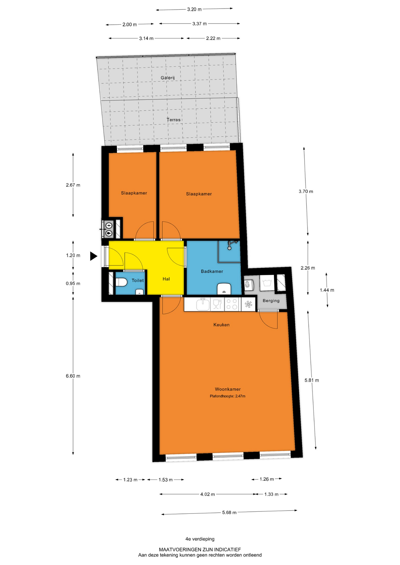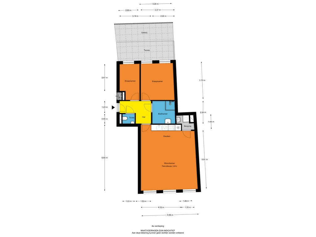 De vermelde afmetingen/ oppervlakten in deze informatie zijn gemeten op basis van de BBMI (Branche Brede Meetinstructie). De meetinstructie is bedoeld om een meer eenduidige manier van meten toe te passen voor het geven van een indicatie van de gebruiksoppervlakte. De meetinstructie sluit verschillen in meetuitkomsten niet volledig uit, door bijvoorbeeld interpretatieverschillen, afrondingen of beperkingen bij het uitvoeren van de meting.