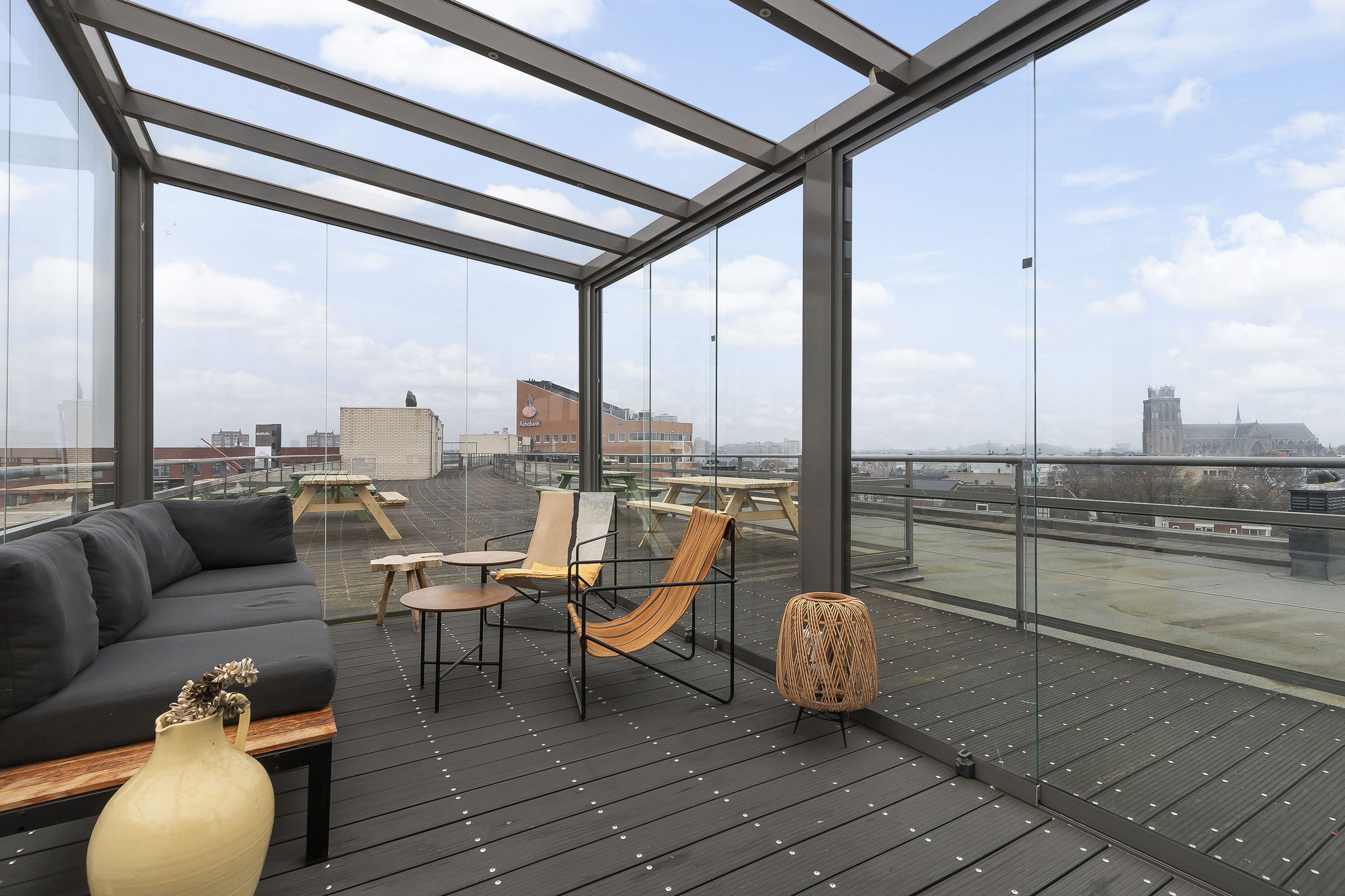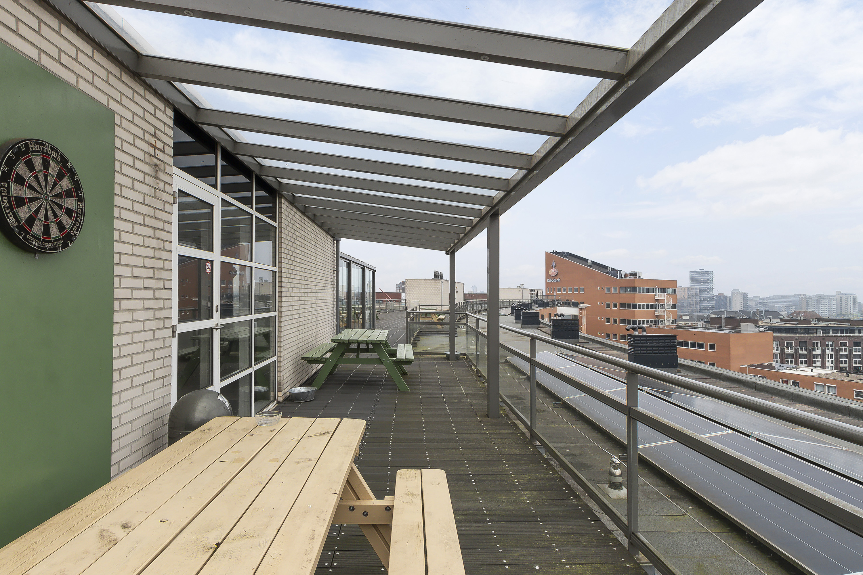 Bijzonder en erg aantrekkelijk is dat er naast het eigen galerijterras voor bewoners op het dak van het gebouw een groot dakterras is van ca. 150 m² met een gezamenlijke huiskamer met keukeninrichting en een toilet en een serre-aanbouw. Je kunt hier genieten van een gaaf uitzicht over de omgeving en het centrum met als eye-catcher het belangrijkste monument van Dordrecht, de Grote Kerk.