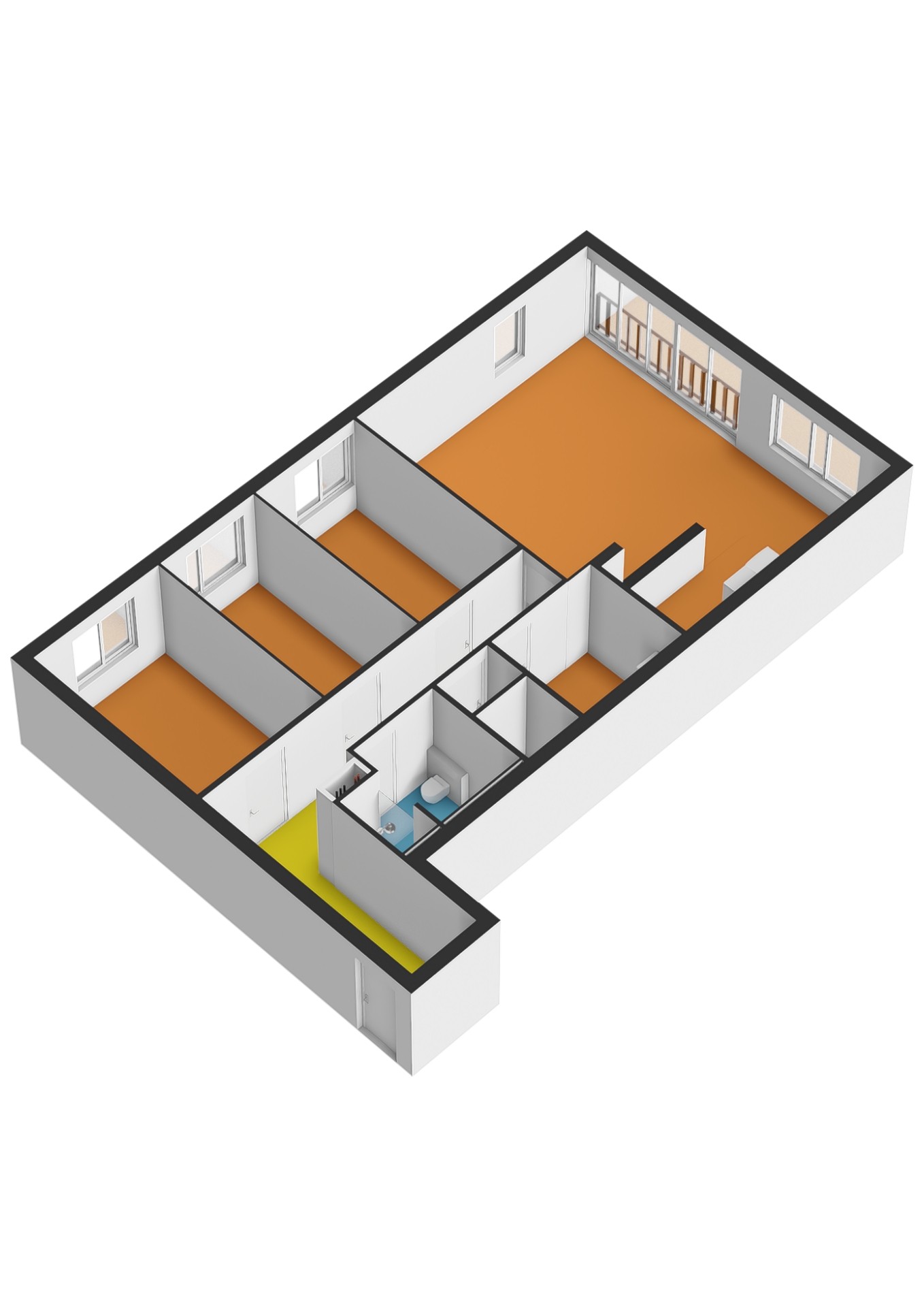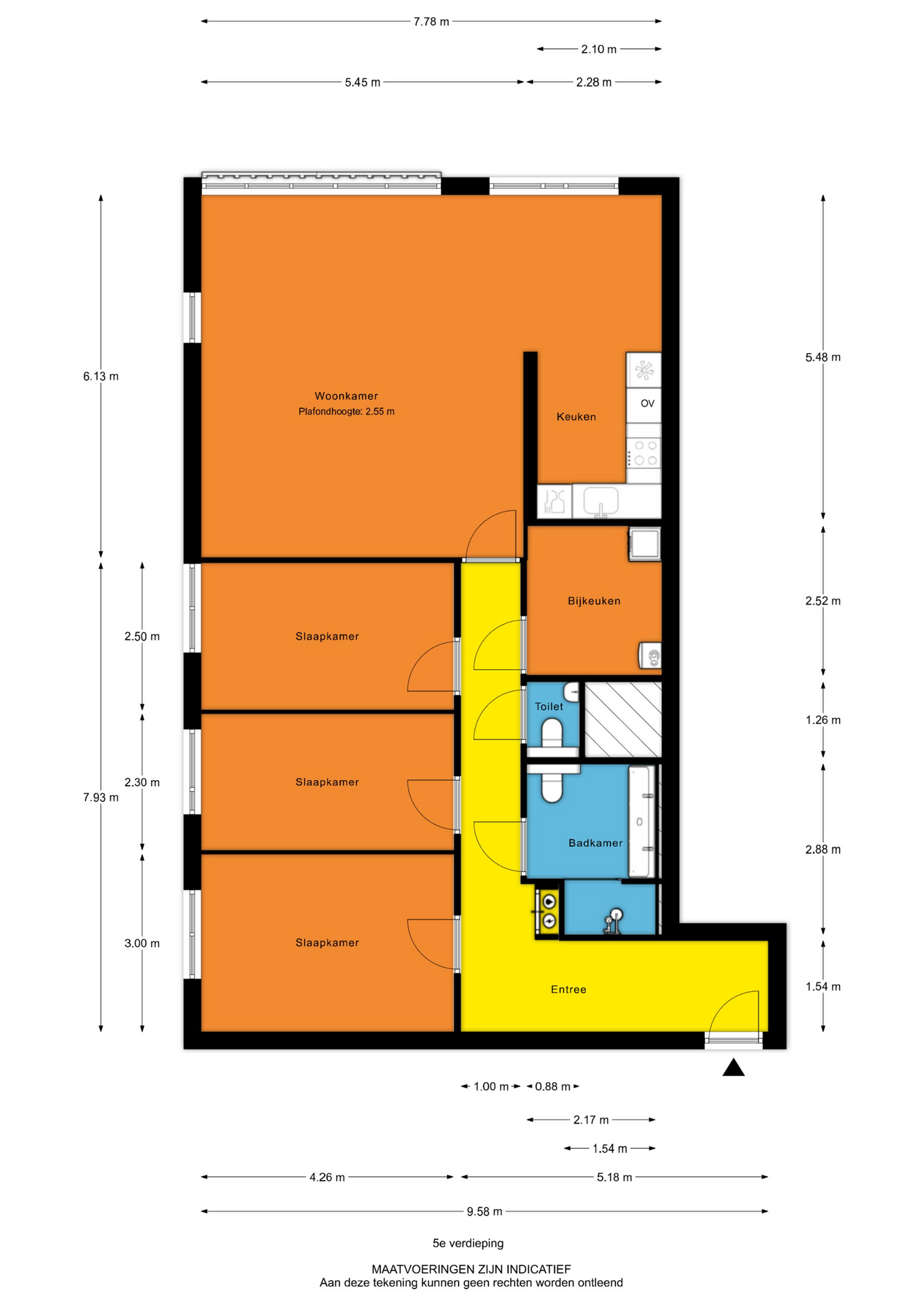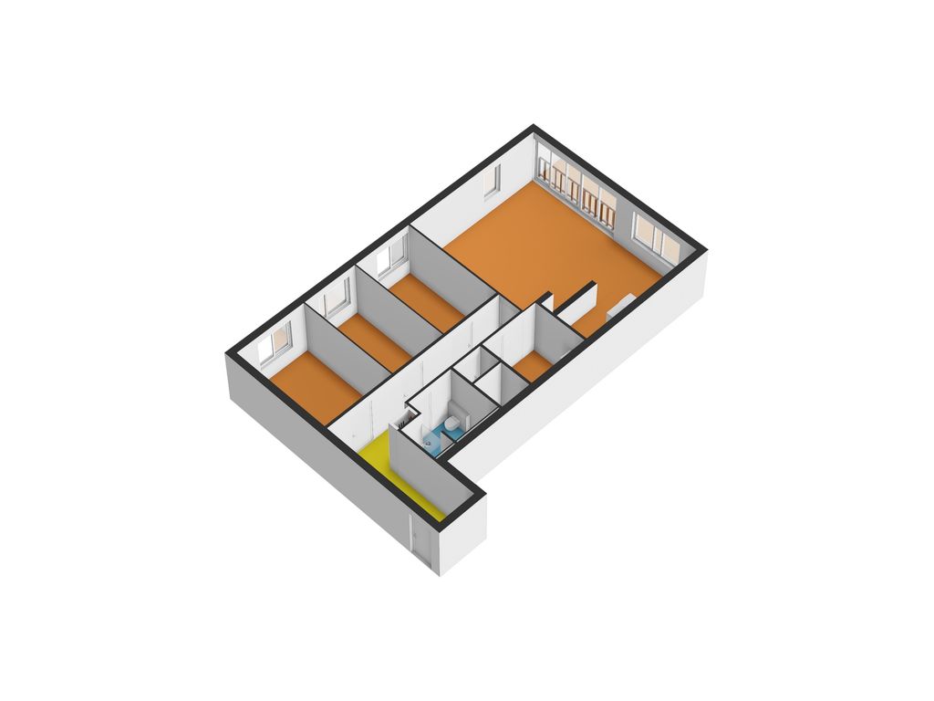 - Entree, hal, meterkast en toegang tot de vertrekken;