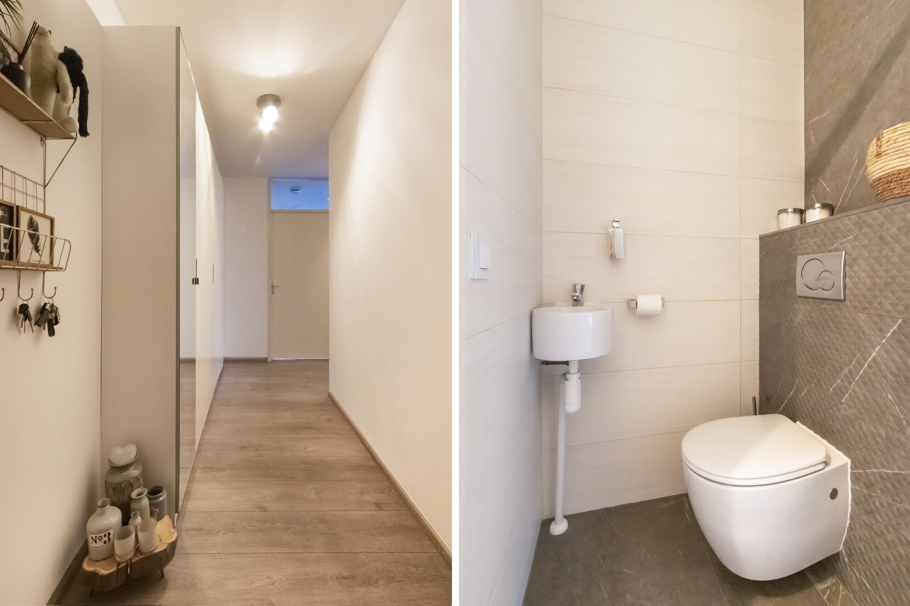 - Toilet (ook eind 2024 vernieuwd) met geheel betegelde wanden, plavuizen