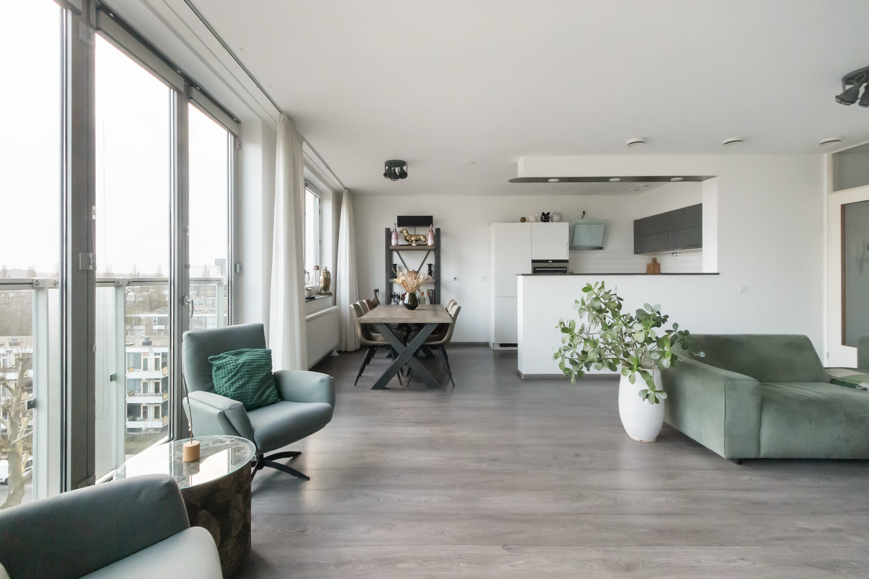 De fraaie laminaatvloer en strak gestucte wanden zorgen voor een rustige basis. De luxe badkamer (eind 2024 vernieuwd) en moderne keuken sluiten hier naadloos op aan en maken het geheel compleet.