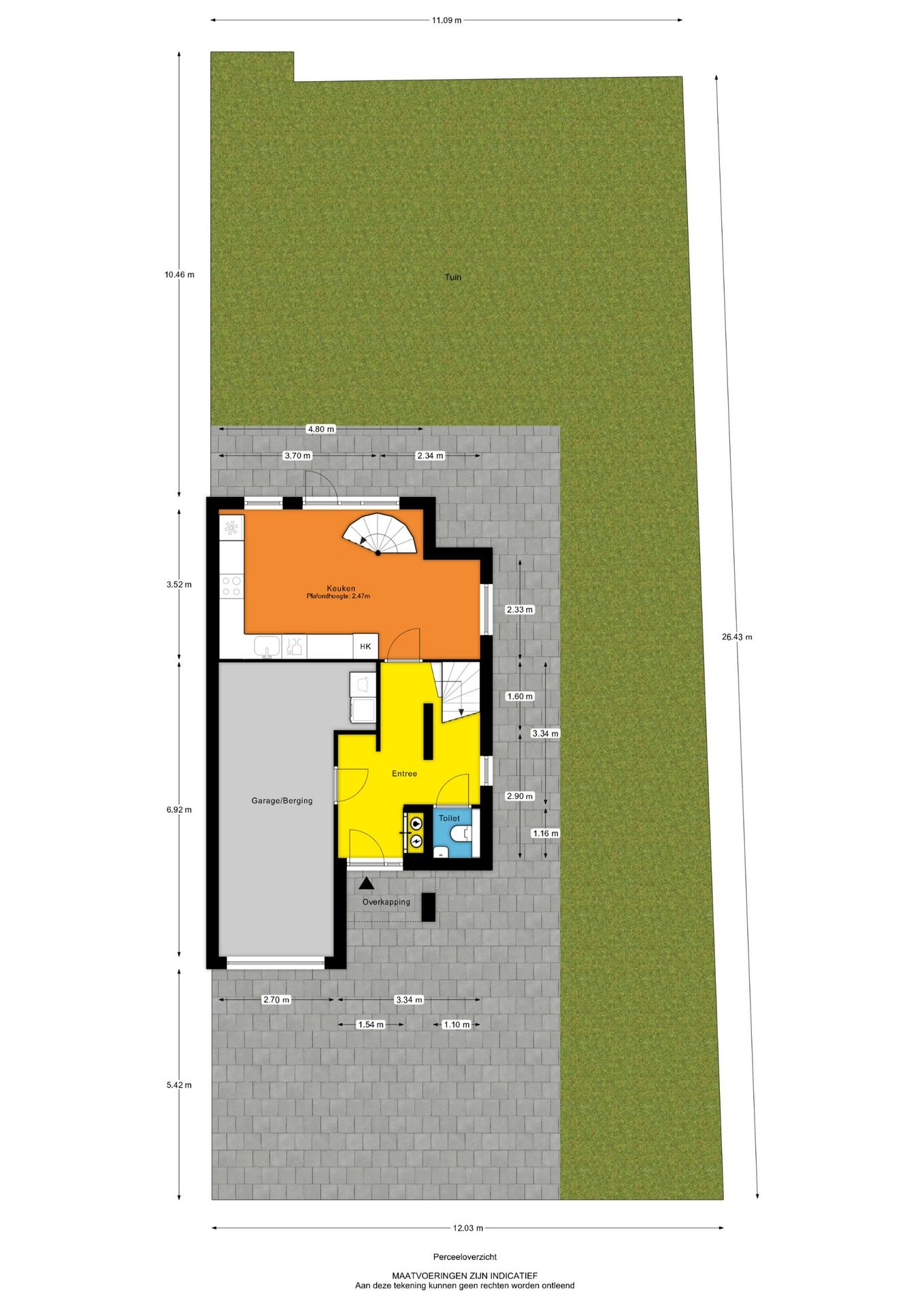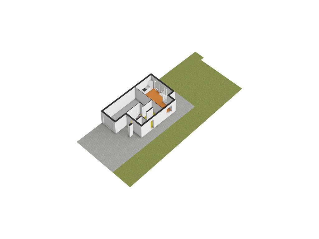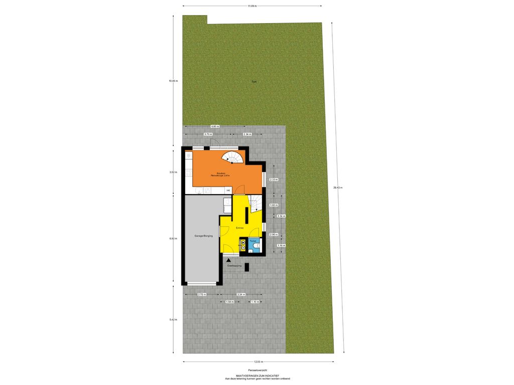 - Voortuin: ca. 12.03 x 5.42 m, gesitueerd op het zuidwesten, aangelegd met stenen klinkers